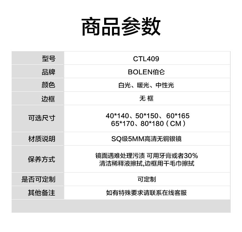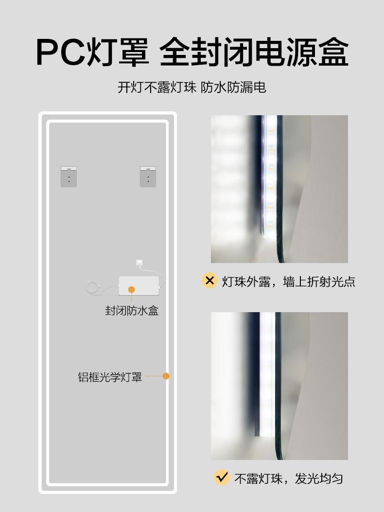 Espejo de Cuerpo Entero sin Marco Montado en la Pared con Luz LED Inteligente Bolen para Vestidor, Rectangular Grande, Decoración para el Hogar, Tienda de Ropa