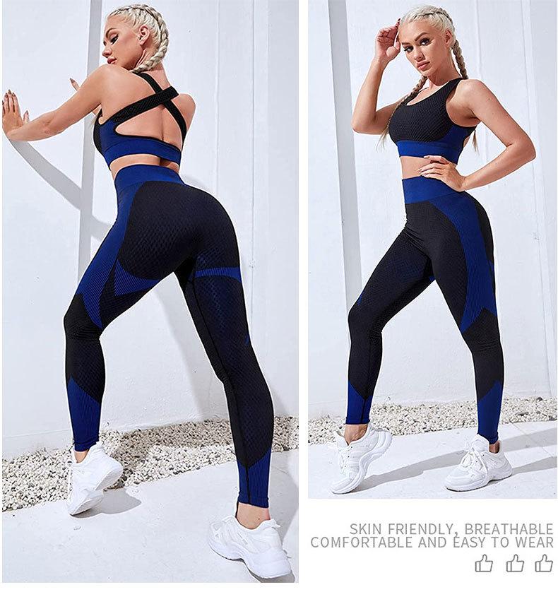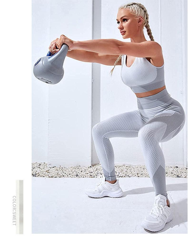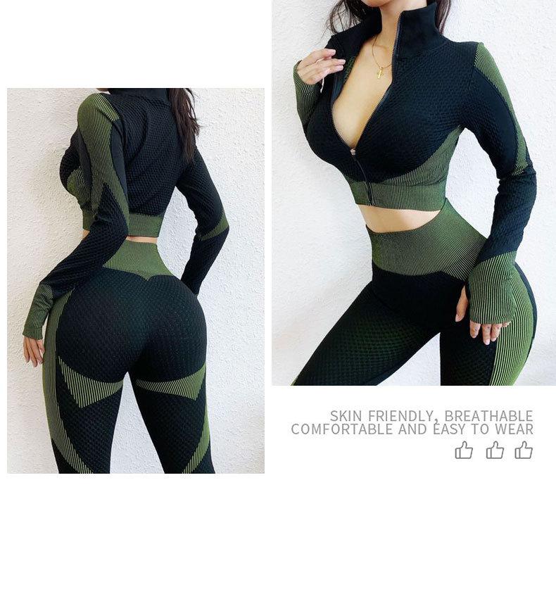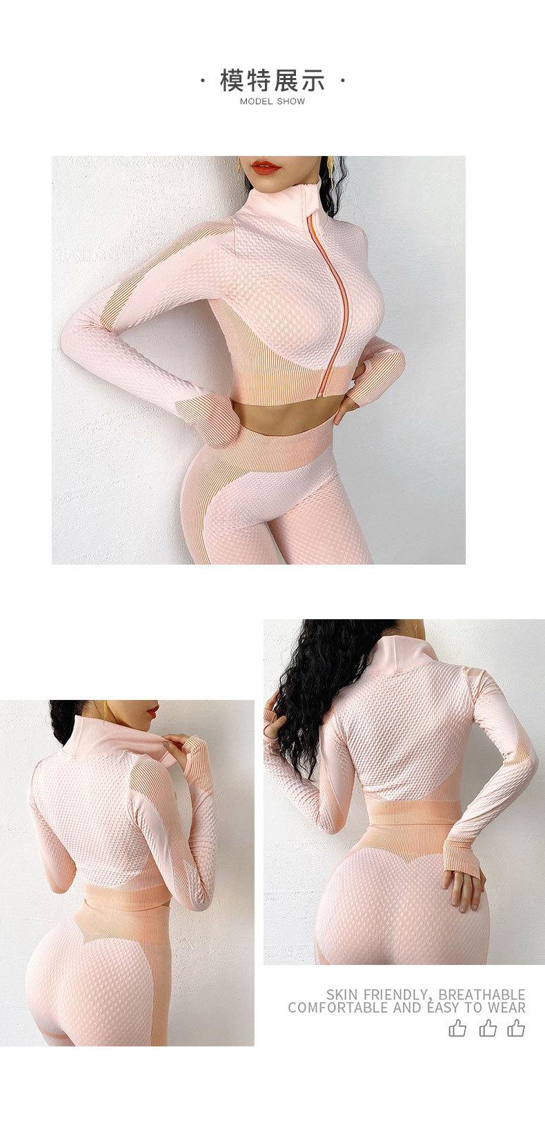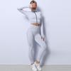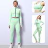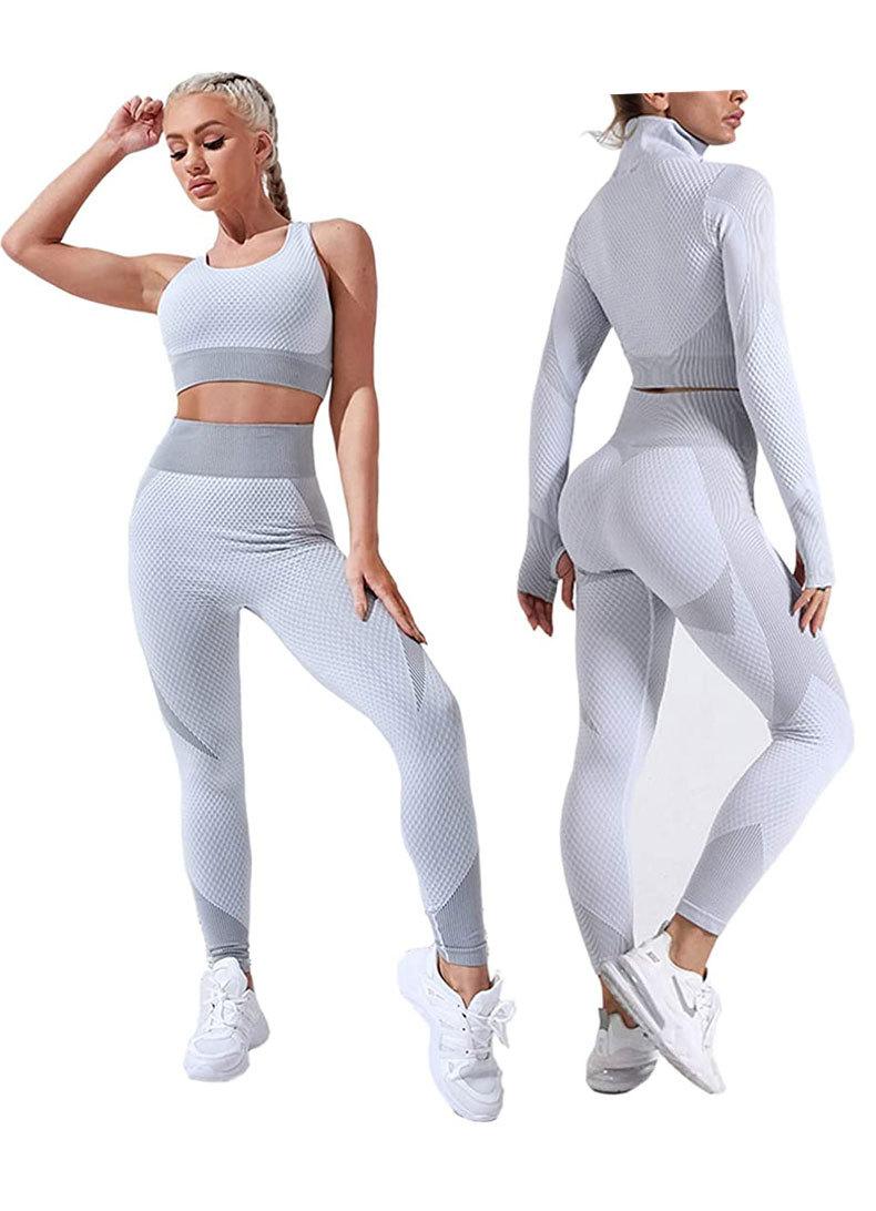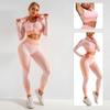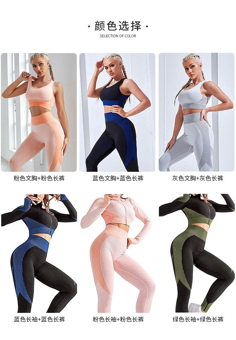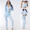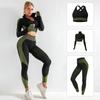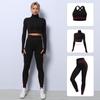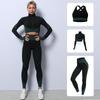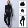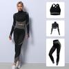 Traje de yoga de punto sin costuras transfronterizo europeo y americano para mujer, otoño e invierno, levantamiento de cadera, elástico, fitness, running, conjunto de tres piezas