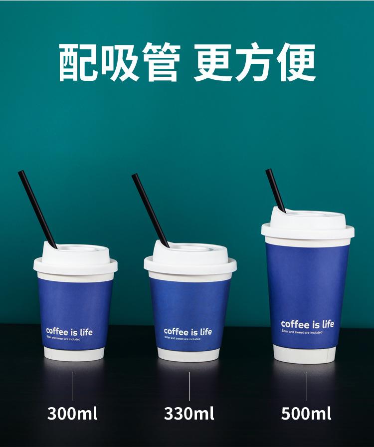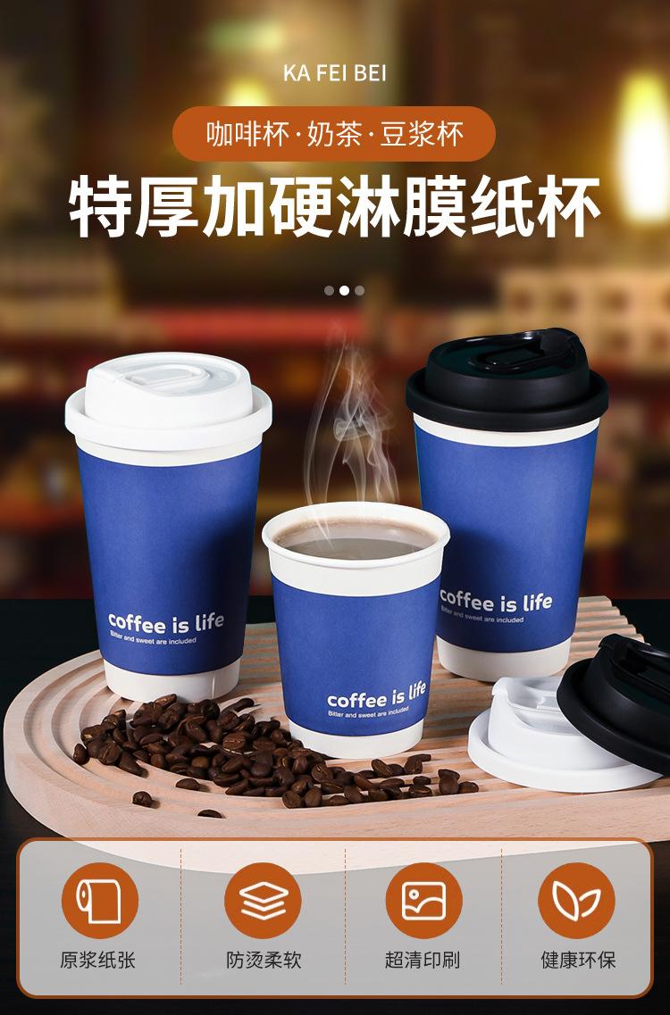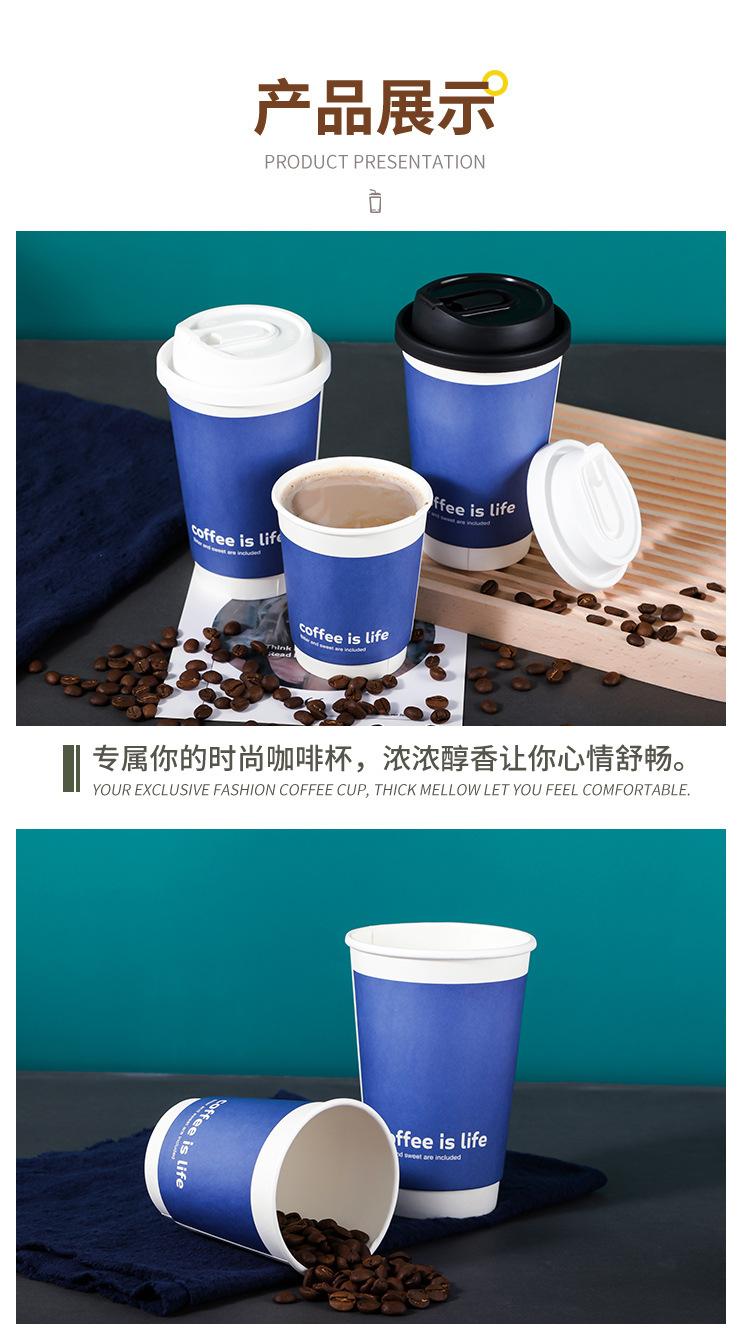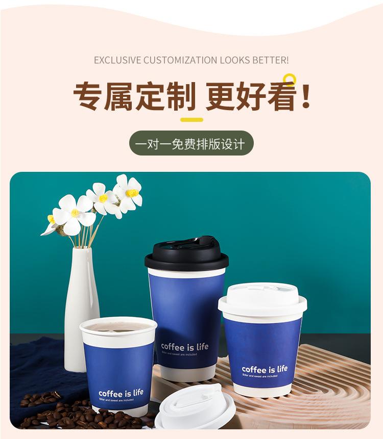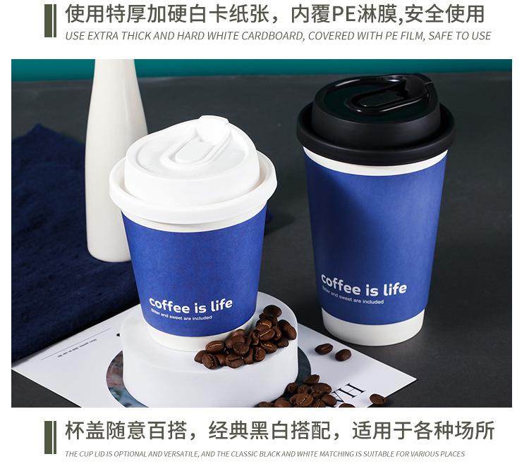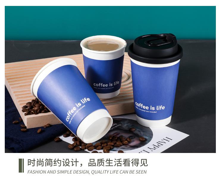 Taza de café desechable personalizada, taza de té con leche de soja azul, espesada, venta al por mayor, bebida caliente al aire libre, taza de papel de doble capa con tapa