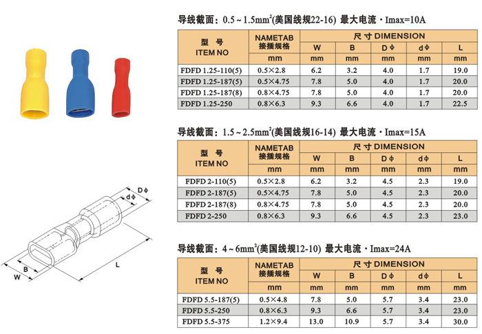 FDFD1.25-110 red (1000), FDFD1.25-187 red (1000), FDFD1.25-250 red (1000), FDFD2-110 Blue (1000), FDFD2-187 Bl...