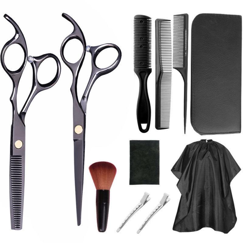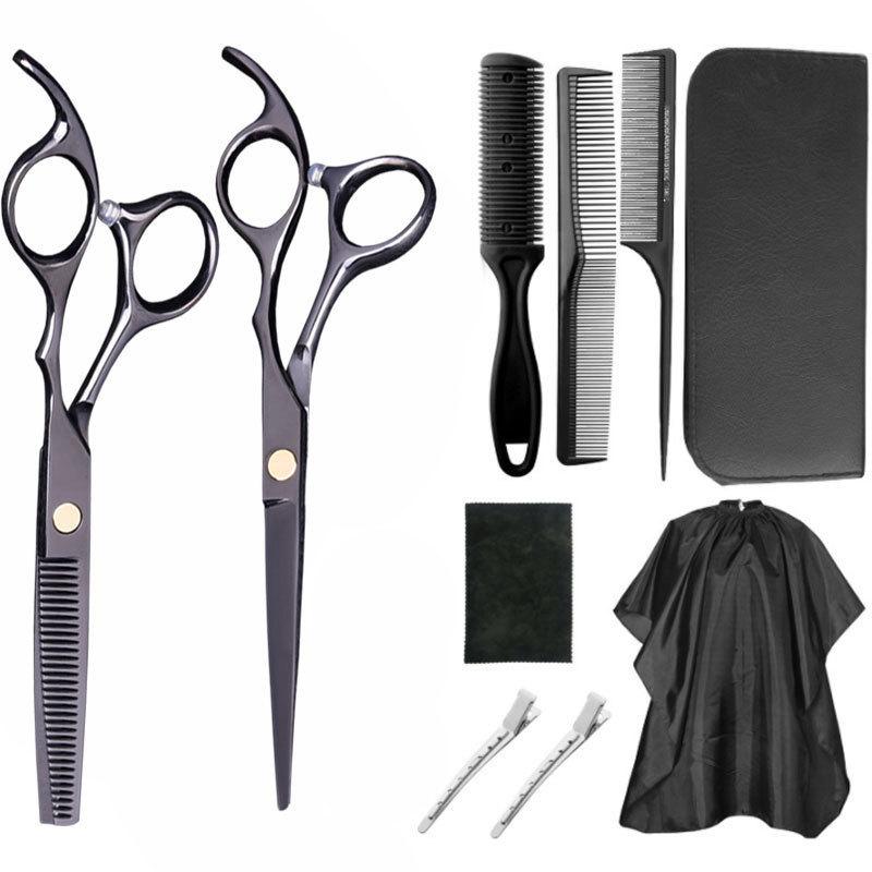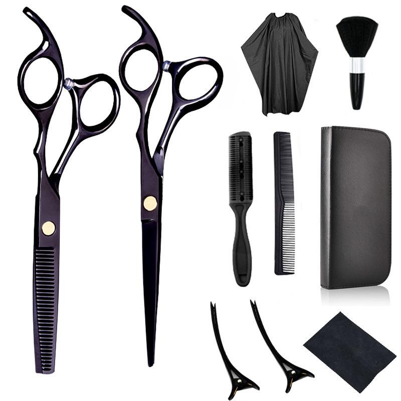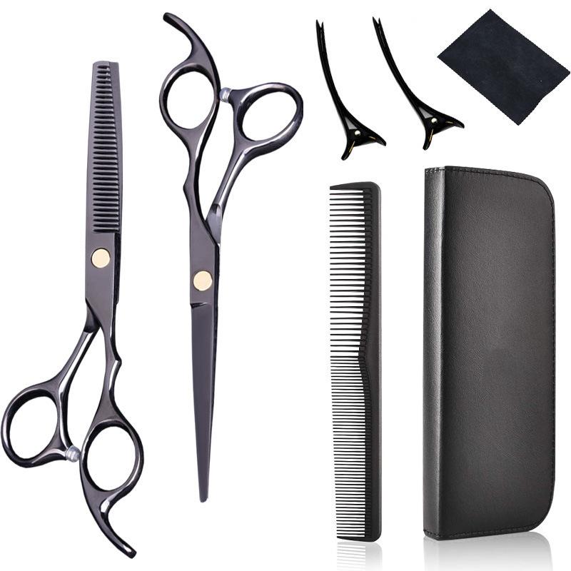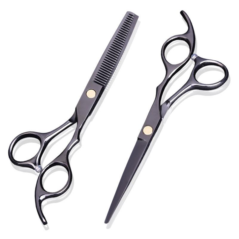 Tijeras de corte de entresacar, tijeras de peluquería negras de platino para flequillo, tijeras para cortar cabello roto, de 6 pulgadas, de acero inoxidable