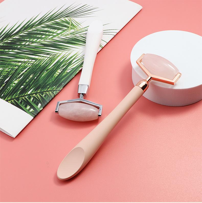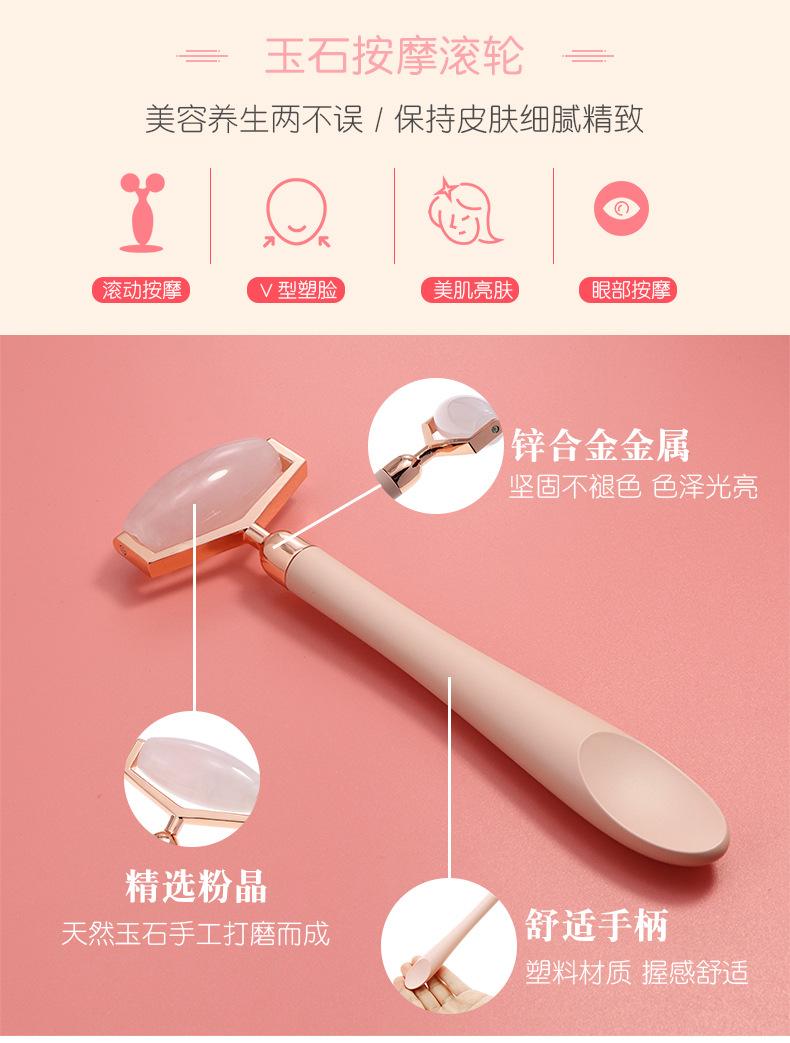 Rodillo de Jade de Venta Caliente Transfronterizo Rodillo Facial de Jade Natural Masajeador Cuidado Facial Cristal Rosa Jade Barra de Belleza