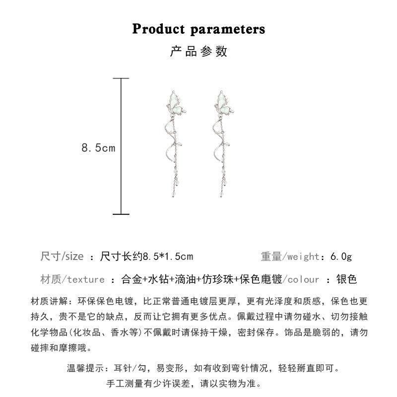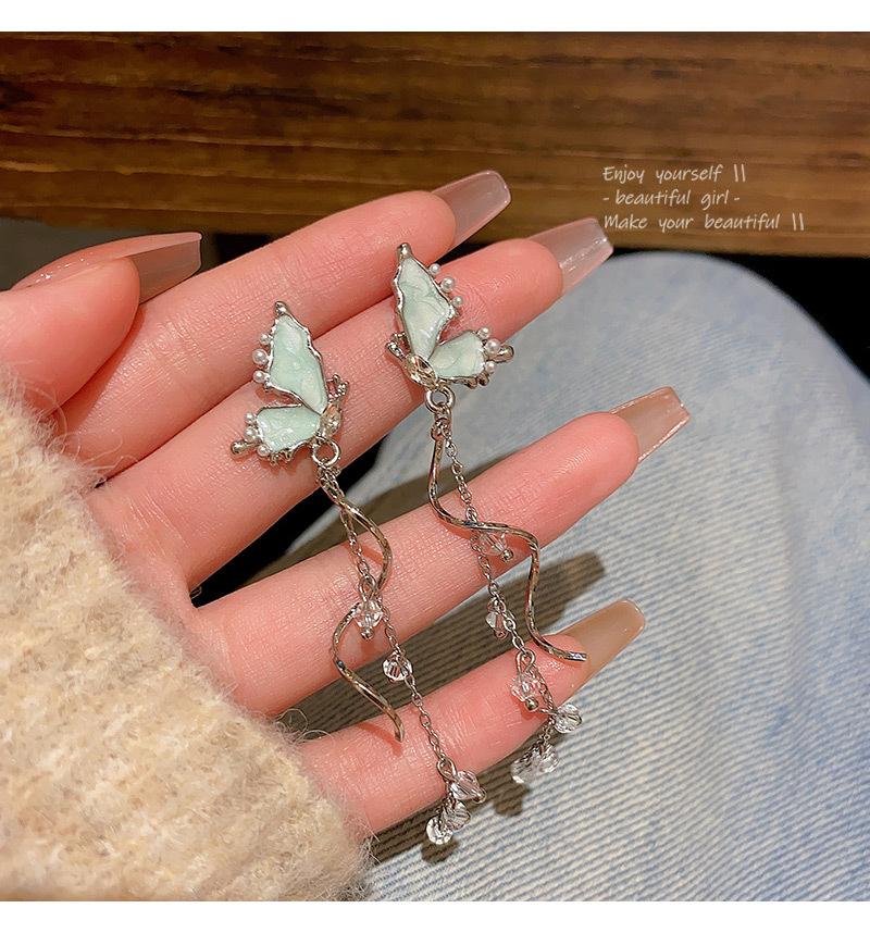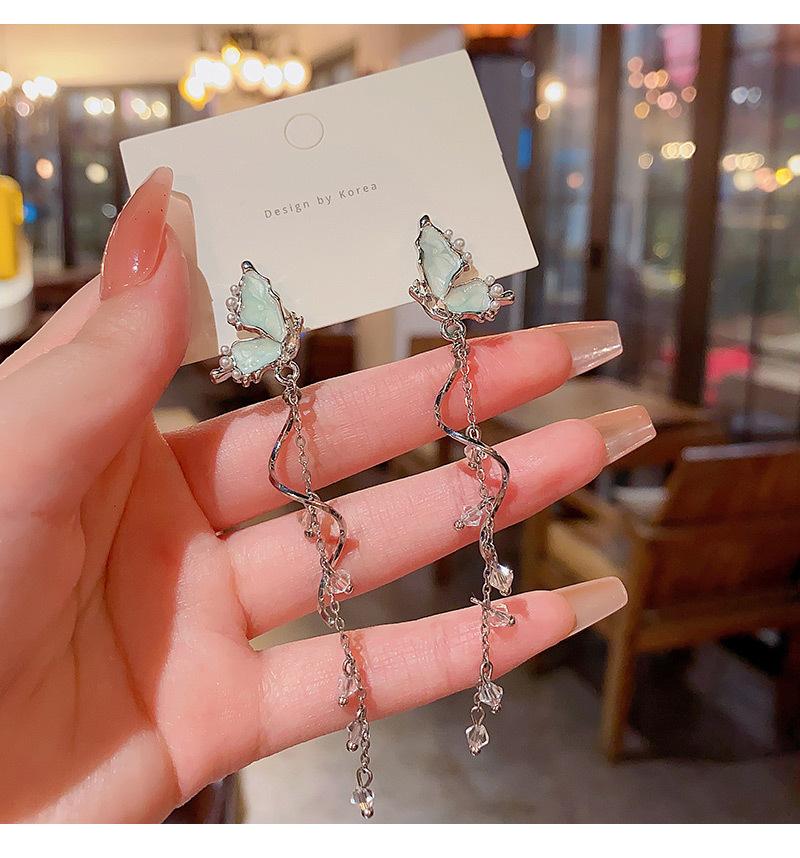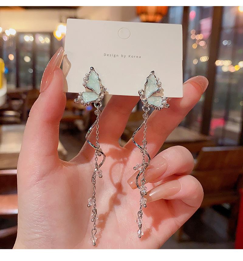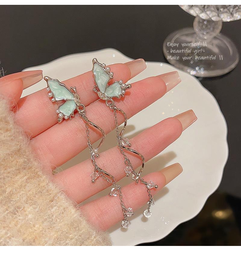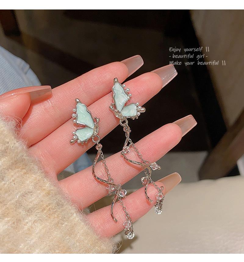 [Amor de ensueño Mariposa] Temperamento Super Hada Azul Esmalte Gota Aretes de Mariposa Aguja de Plata S925 Borla Larga Aretes Celebridad de Internet