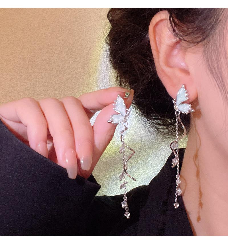 Pendientes largos de mariposa con borlas y aguja de plata S925 para mujer, ligeros, de lujo, de nicho, con temperamento de súper hada, de celebridades de Internet, pendientes del mismo estilo.