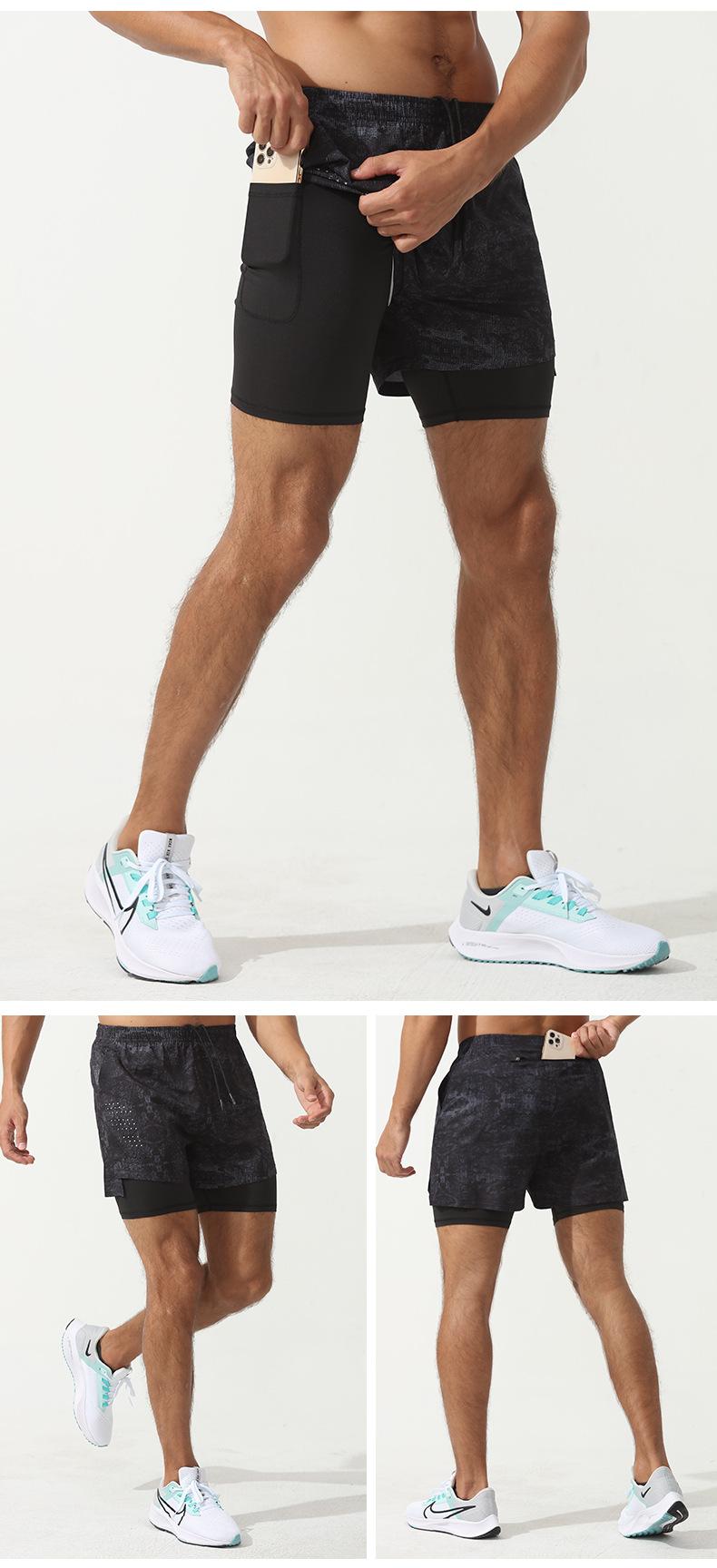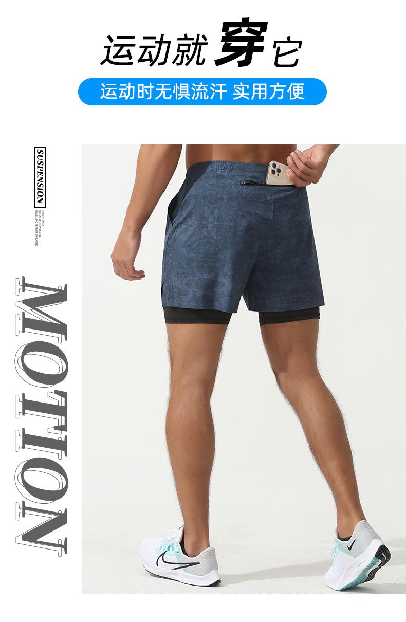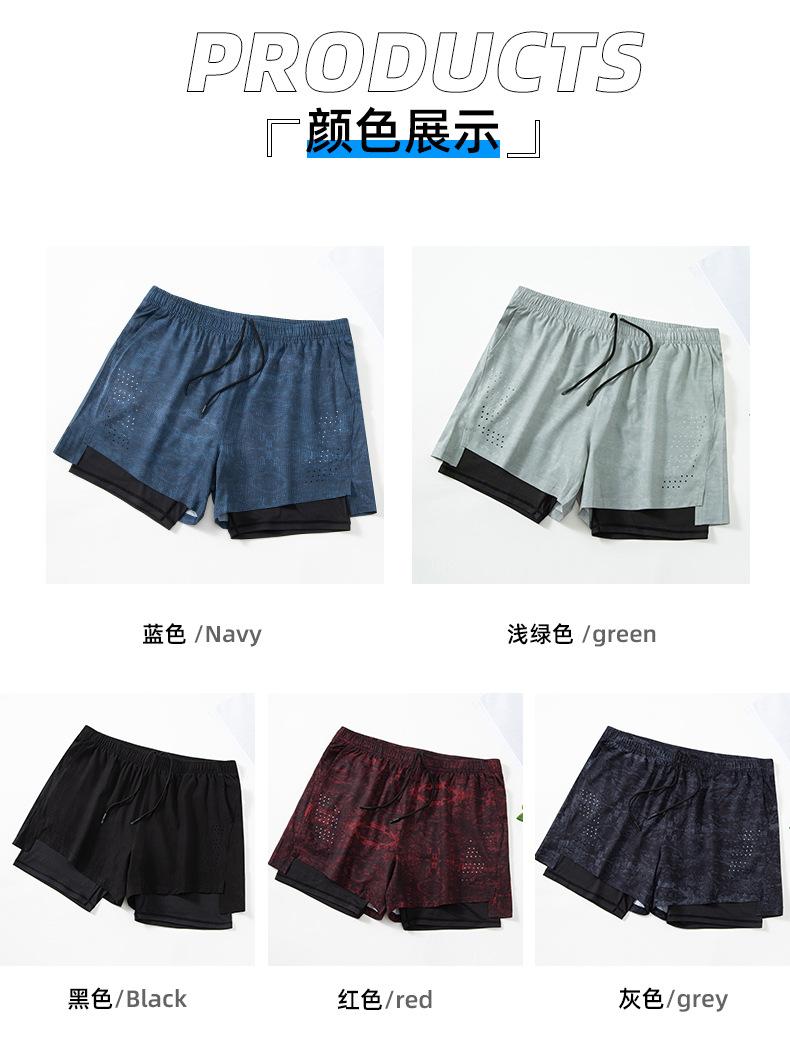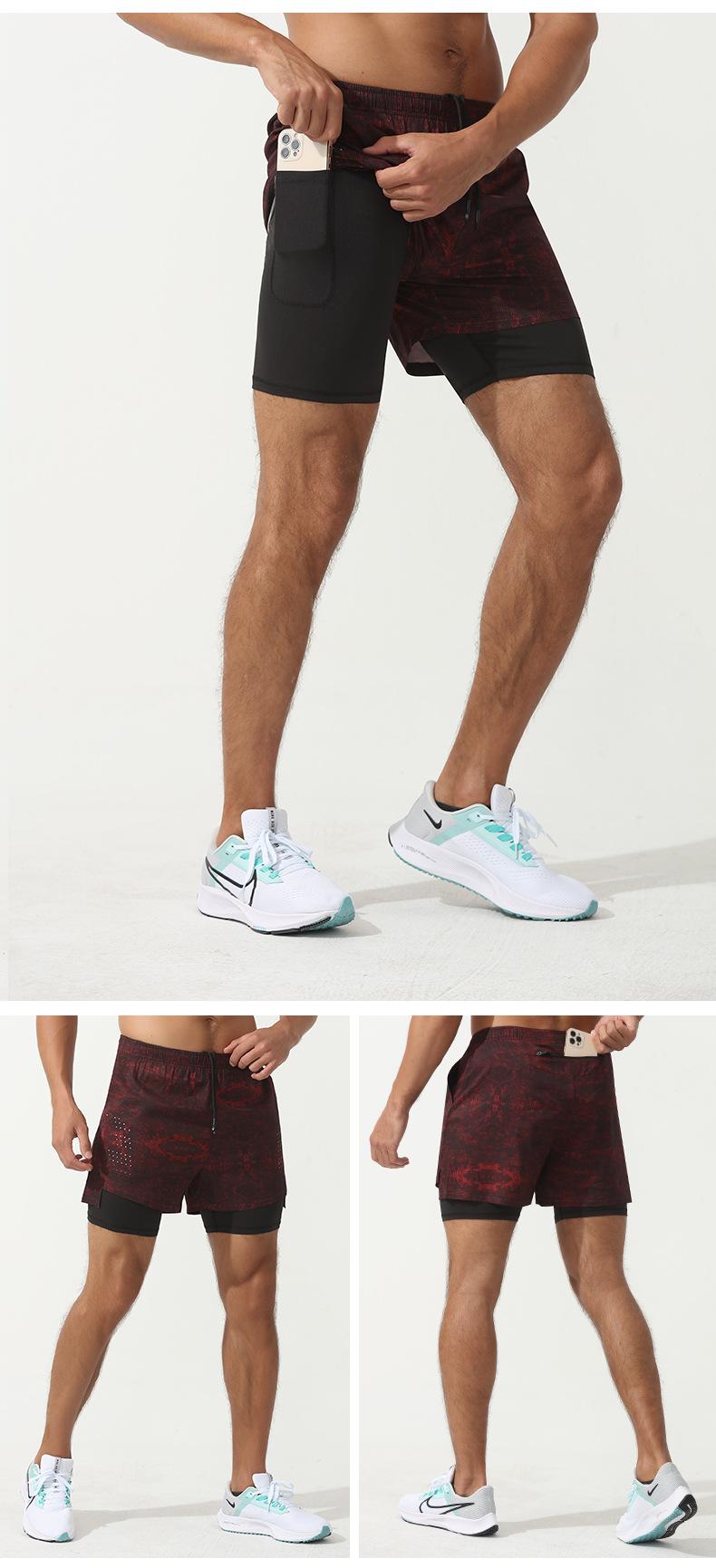 Shorts de Fitness de Verano de Doble Capa Nuevos Deportivos de Secado Rápido Falsos de Dos Piezas con Forro Estampados Traje de Baño para Deportes y Ocio para Hombre
