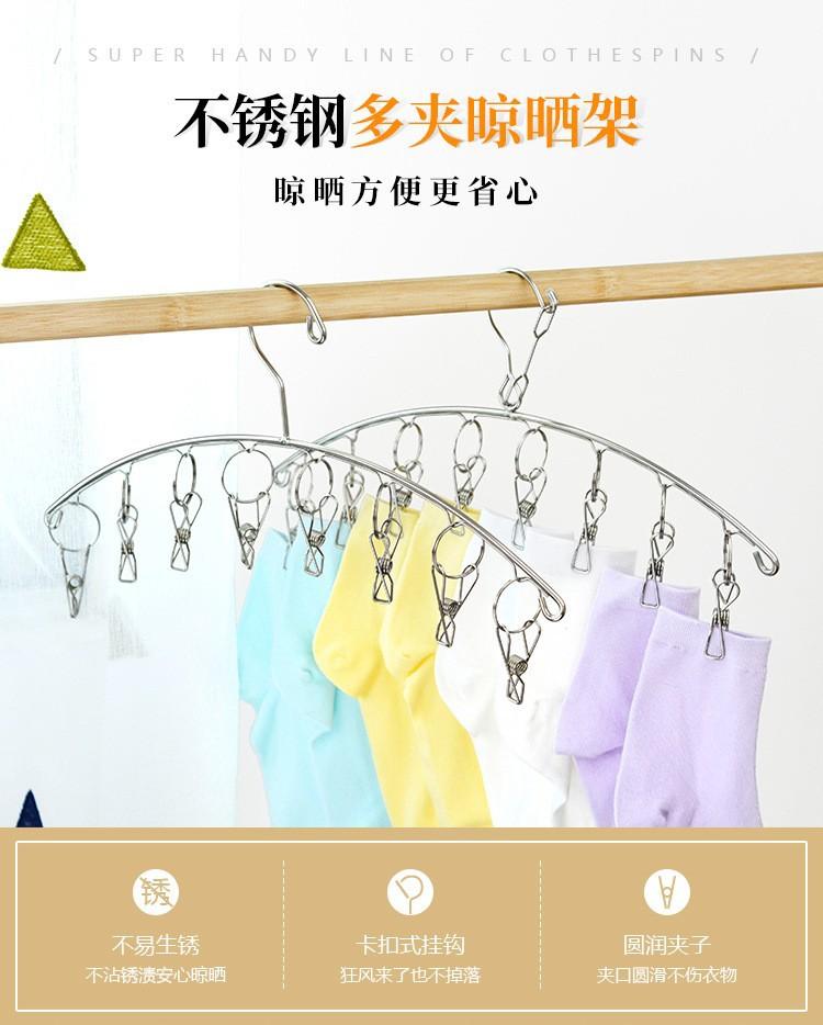 Rejilla Multifuncional para Calcetines de Hogar Acero Inoxidable Percha Curvada para Ropa Clip Íntimo de Hierro para Calcetines a Prueba de Viento Sin Costuras Artefacto para Calcetines de Balcón