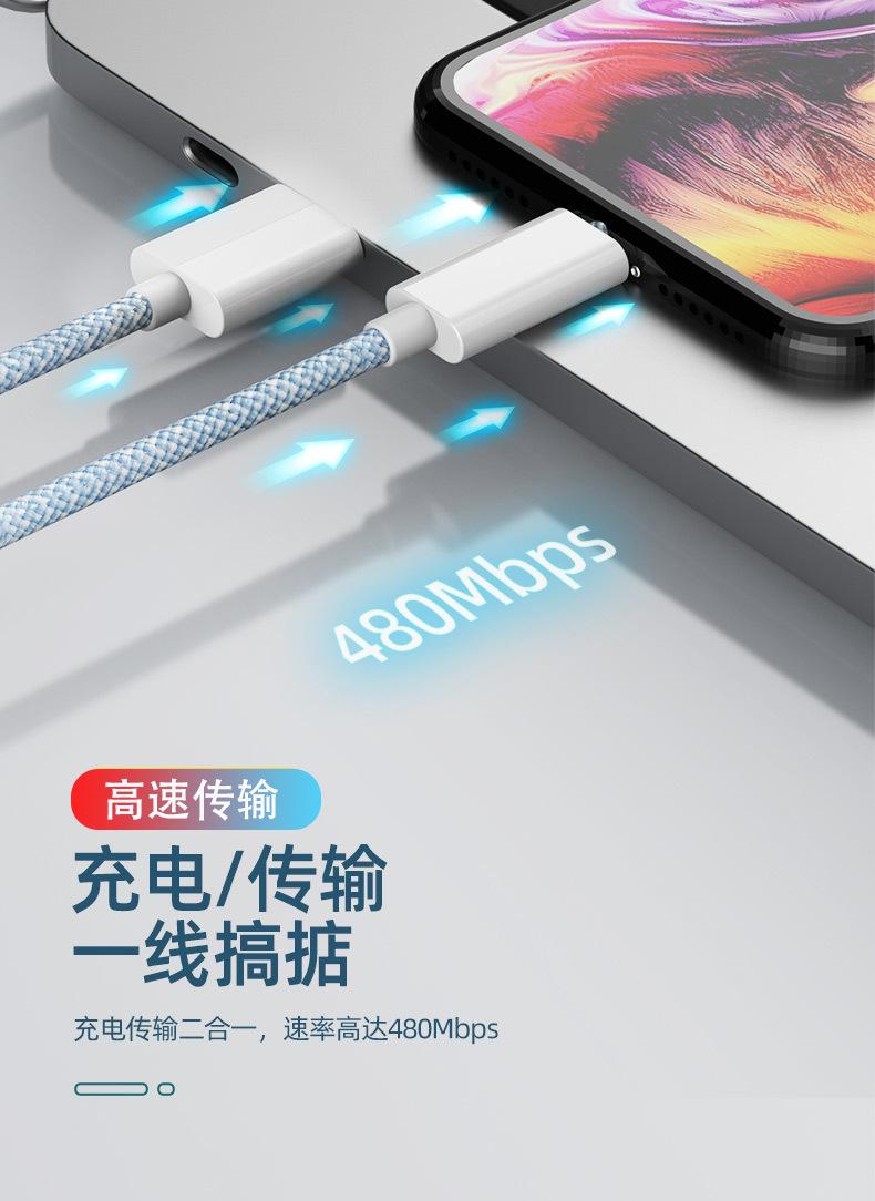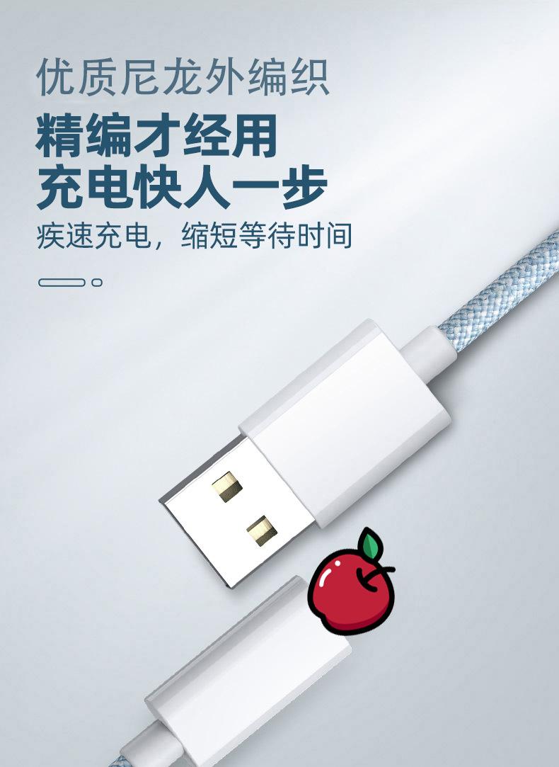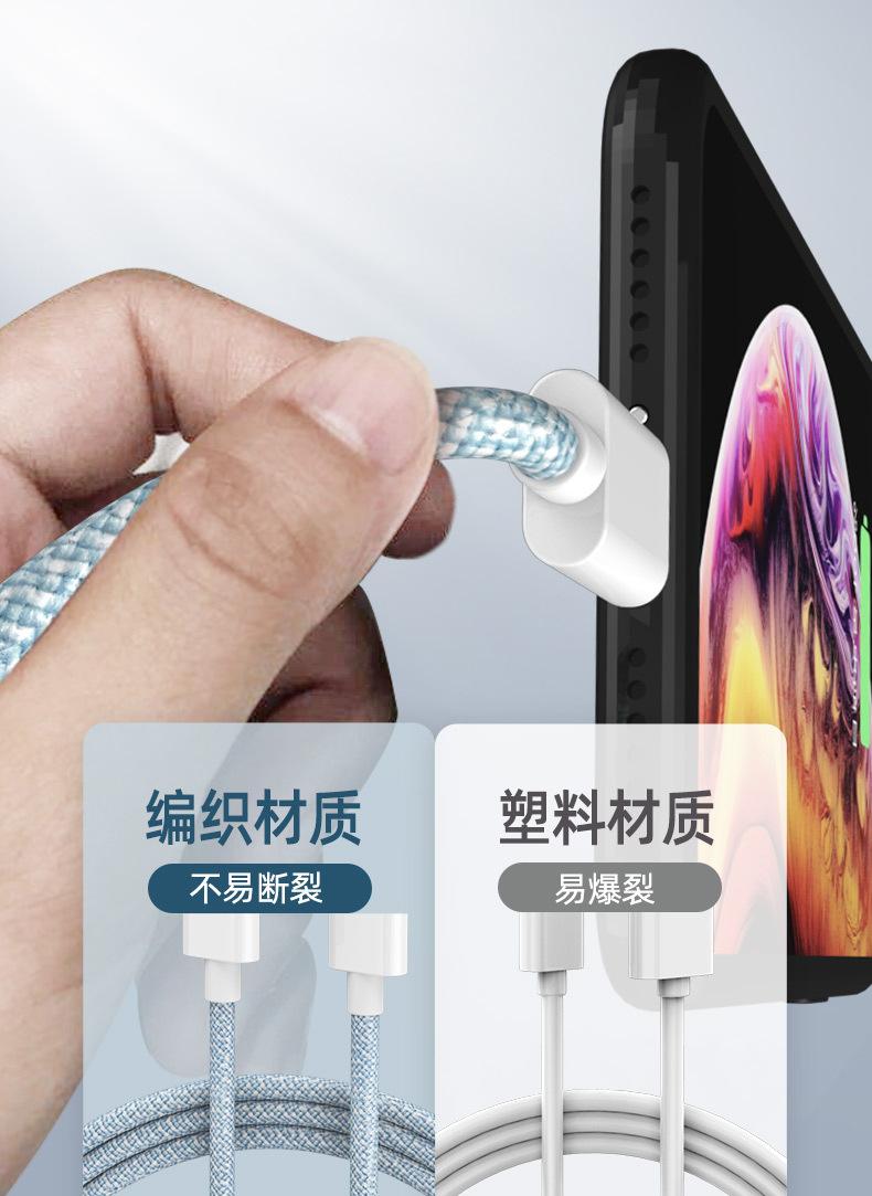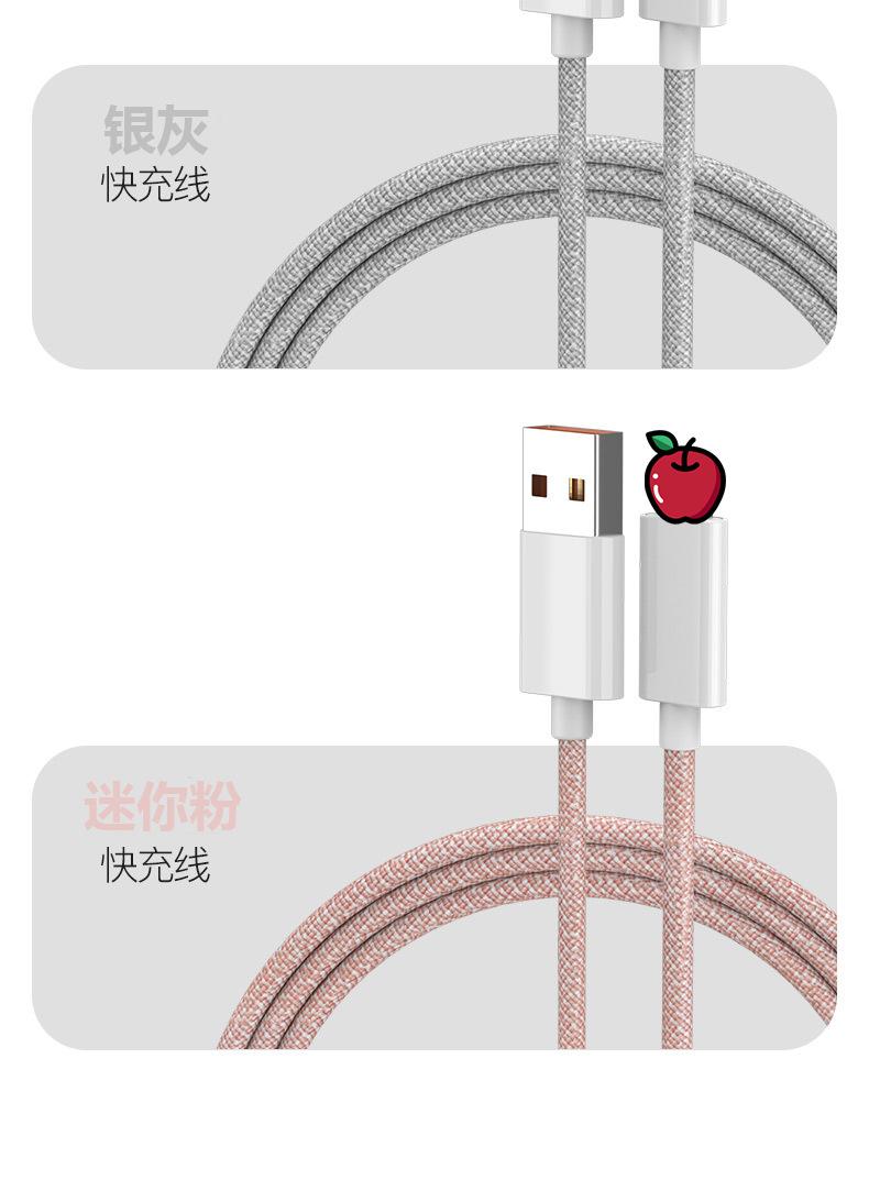 Venta al por mayor de fábrica de cables de datos de Apple con puerto USB, cable de carga trenzado para iPhone 6-13, cable de carga rápida