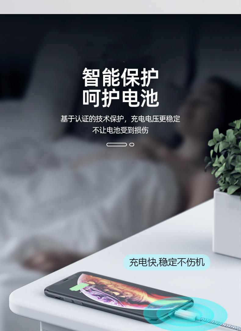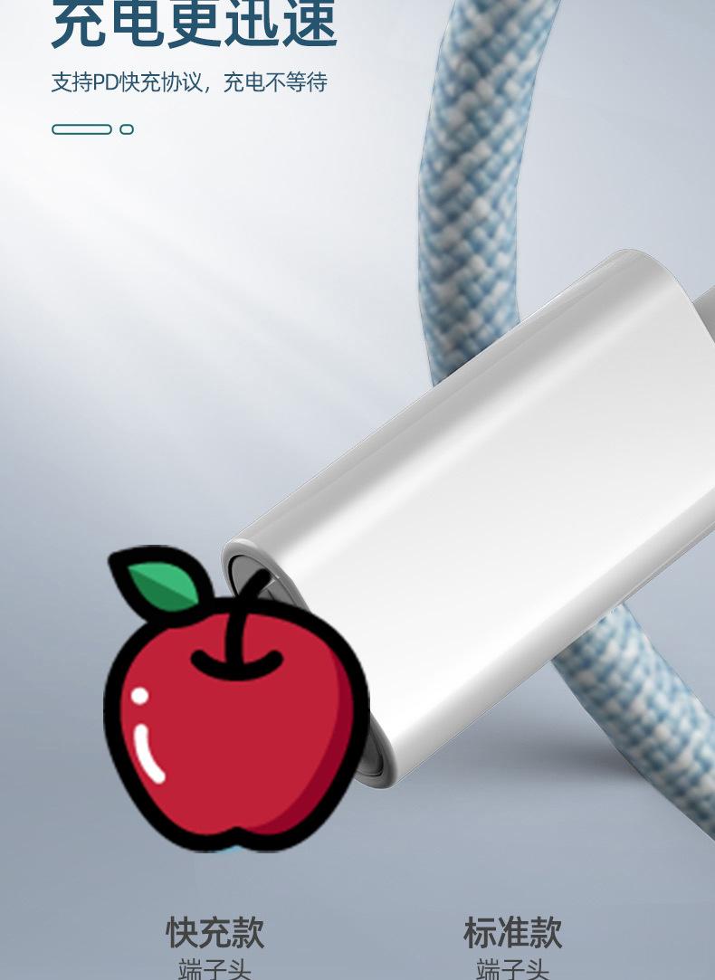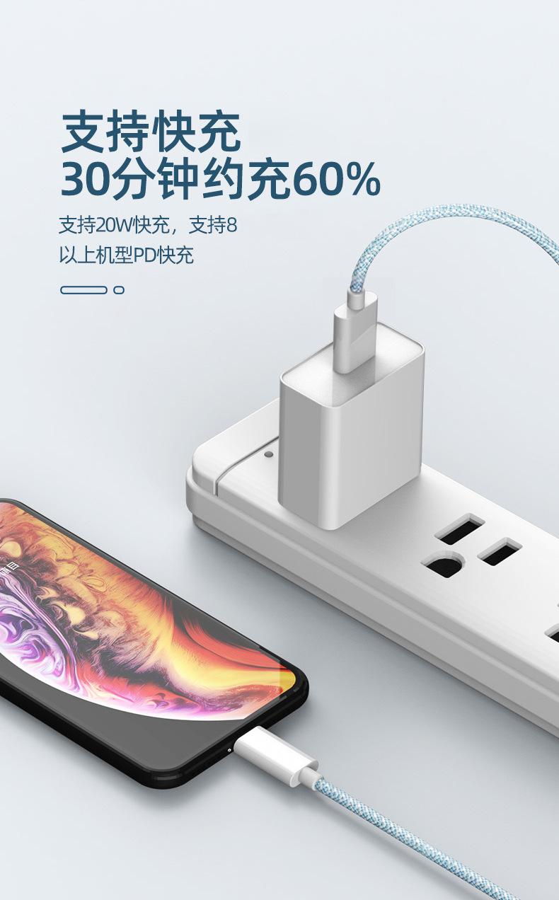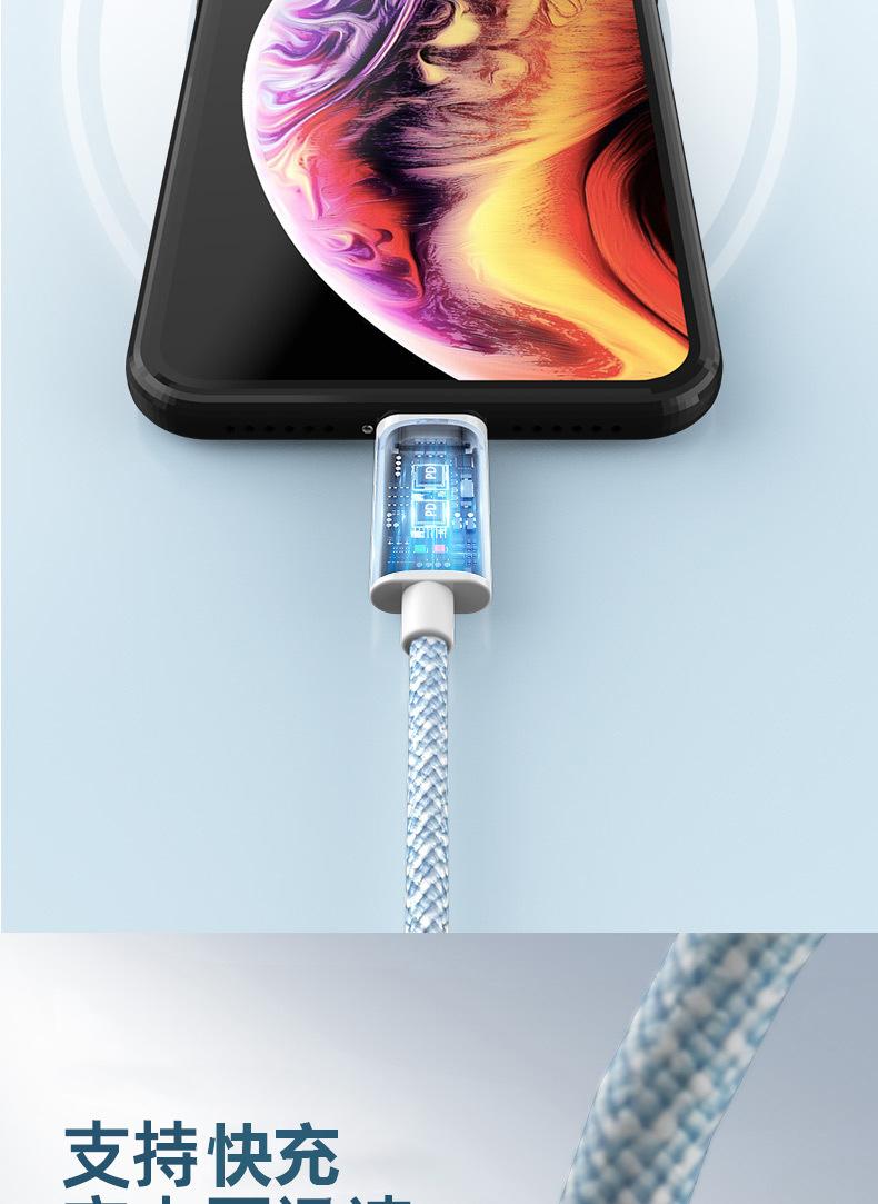 Venta al por mayor de fábrica de cables de datos de Apple con puerto USB, cable de carga trenzado para iPhone 6-13, cable de carga rápida