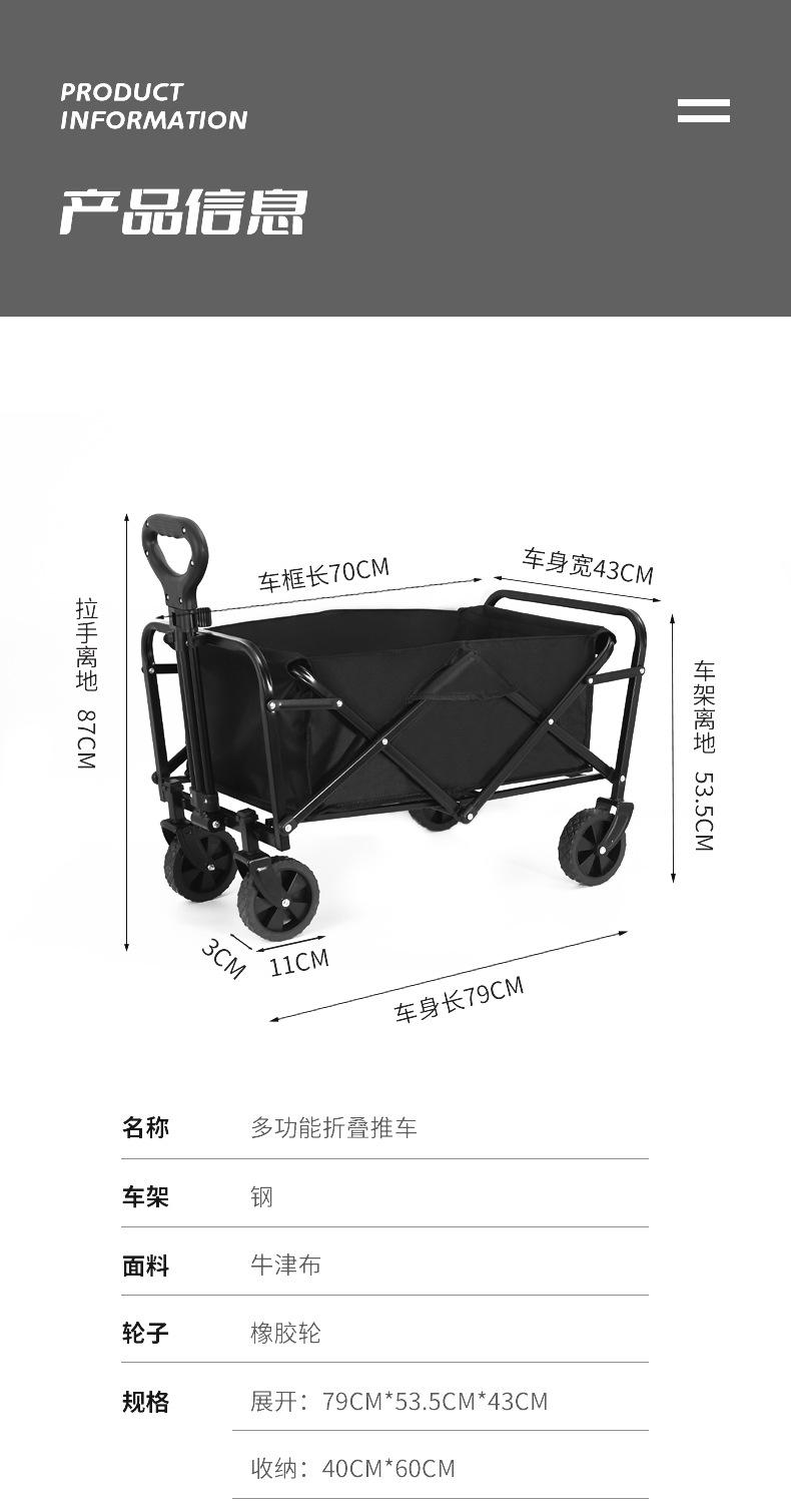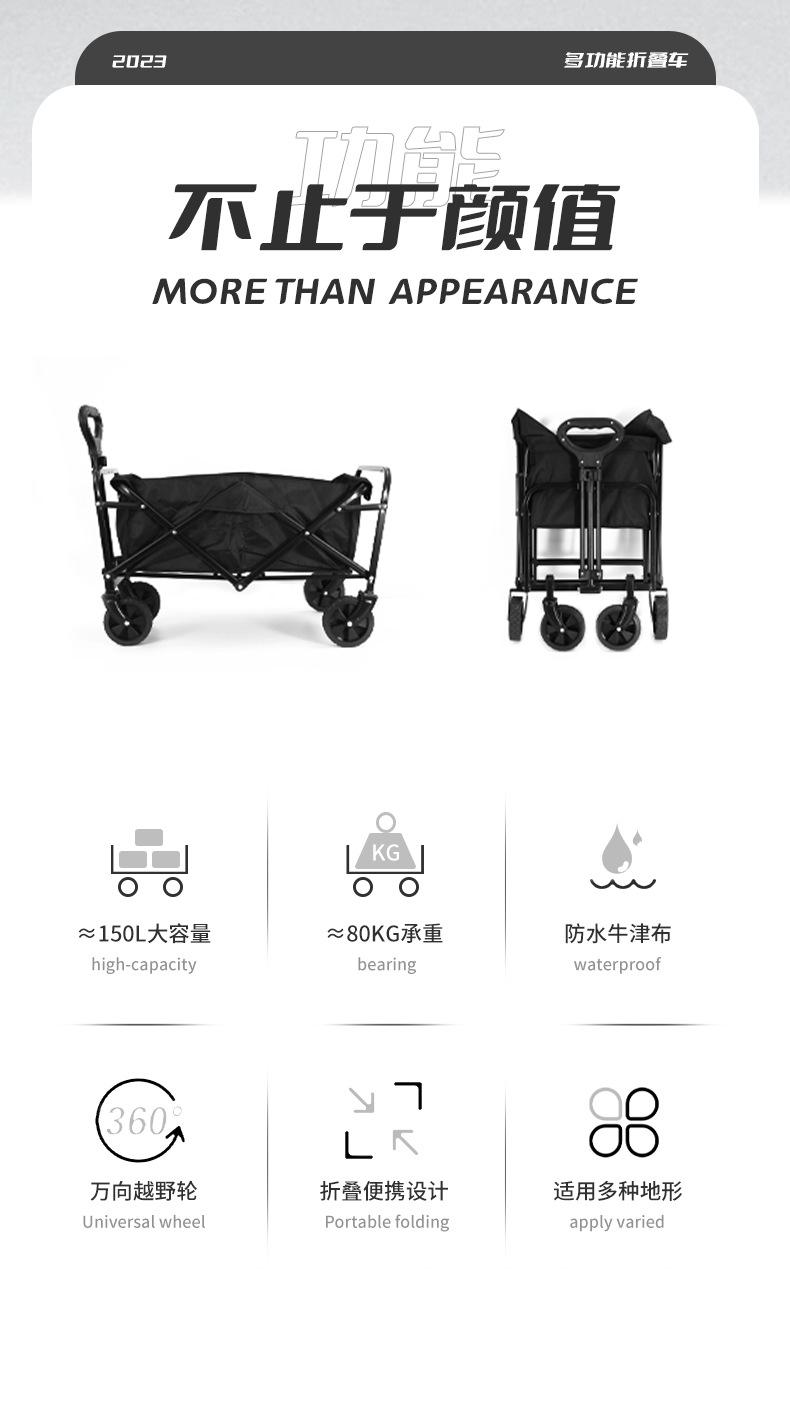 Carro de Camping para Exteriores, Remolque de Picnic Plegable para Camping, Carretilla de Mano Plegable con Mesa y Manillar, Bicicleta de Montaña para Camping