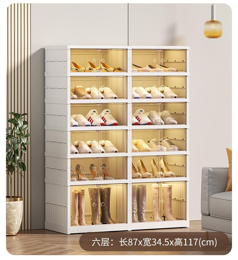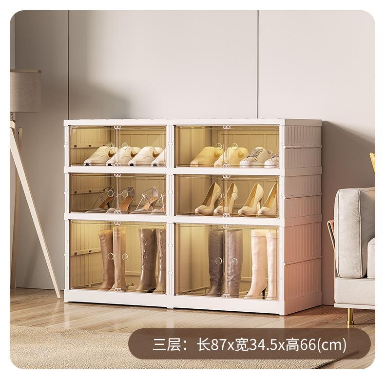 Caja de almacenamiento de zapatos tipo cajón, caja de zapatos transparente, zapatero de almacenamiento para sala de estar sin instalación, zapatero multifuncional plegable de múltiples capas
