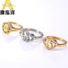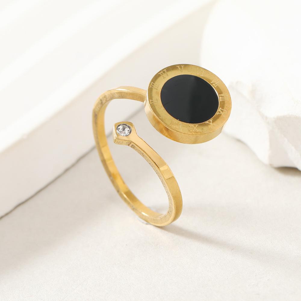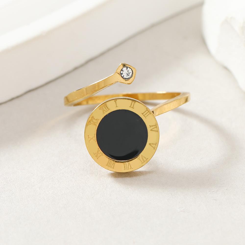Anillo de acero de titanio transfronterizo europeo y americano, personalidad simple, anillo abierto con incrustaciones de diamantes redondos digitales romanos, joyería de acero inoxidable