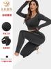 Ropa de yoga sin costuras, top deportivo de manga larga con estampado de lunares y jacquard para mujer, pantalones de yoga ajustados de cintura alta y cadera.