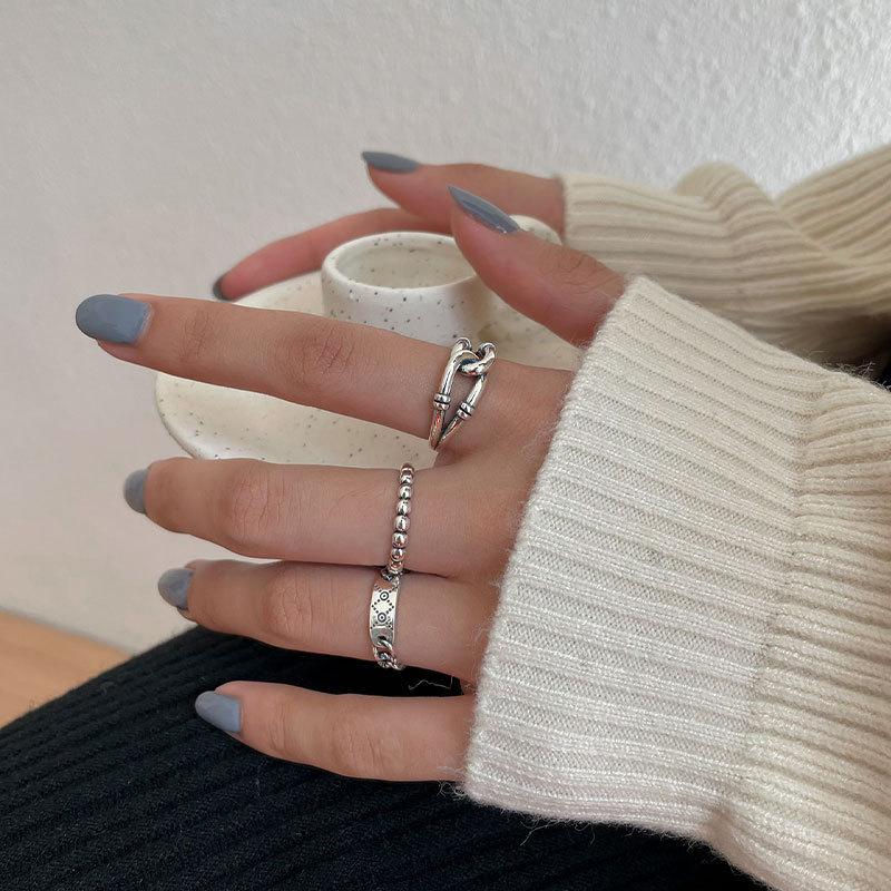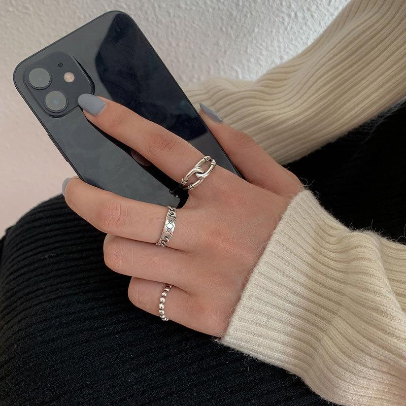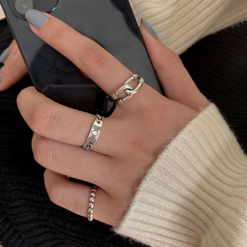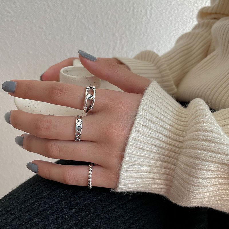 Anillo con diseño de nicho de estilo coreano para mujer, estilo celebridad en línea, cadena simple de estilo frío, joyería de plata esterlina S925