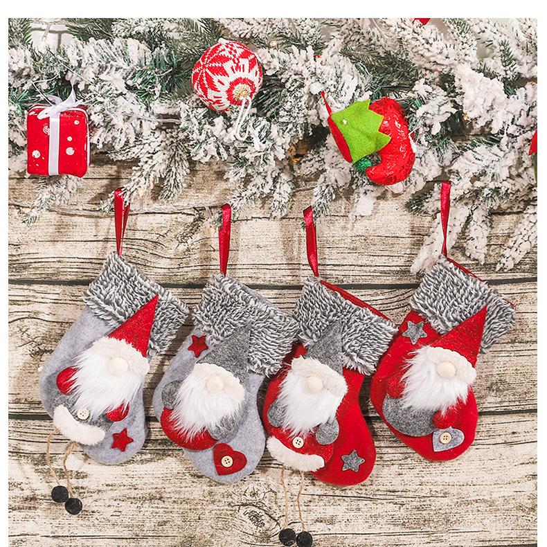 Suministros navideños, calcetines de decoración navideña, muñeco de pie colgante de guardabosques sin rostro, medias navideñas, adornos colgantes para árbol de Navidad