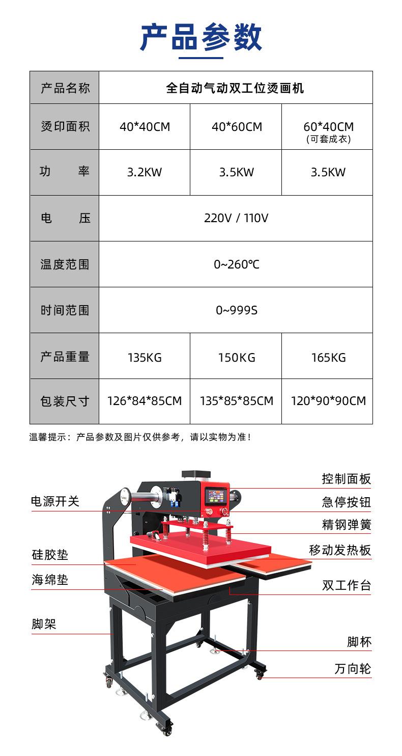 Máquina automática de estampado en caliente neumática, doble 60*40, para camisetas, impresión de prendas, prensa de estampado en caliente, máquina de transferencia de calor