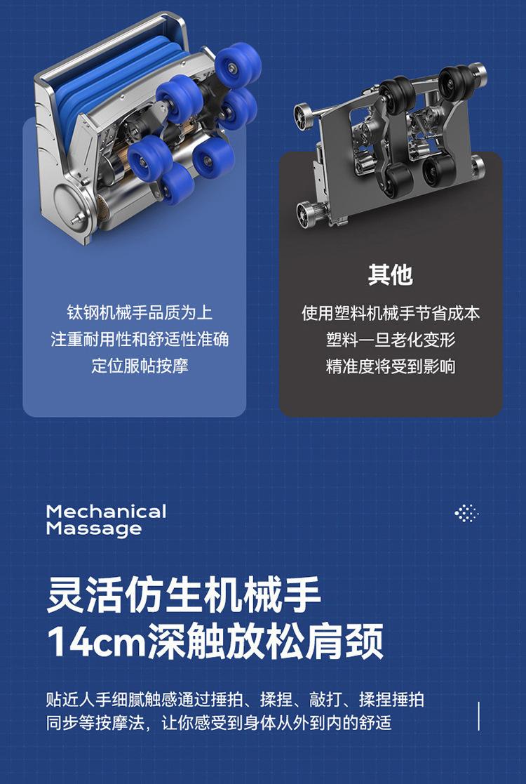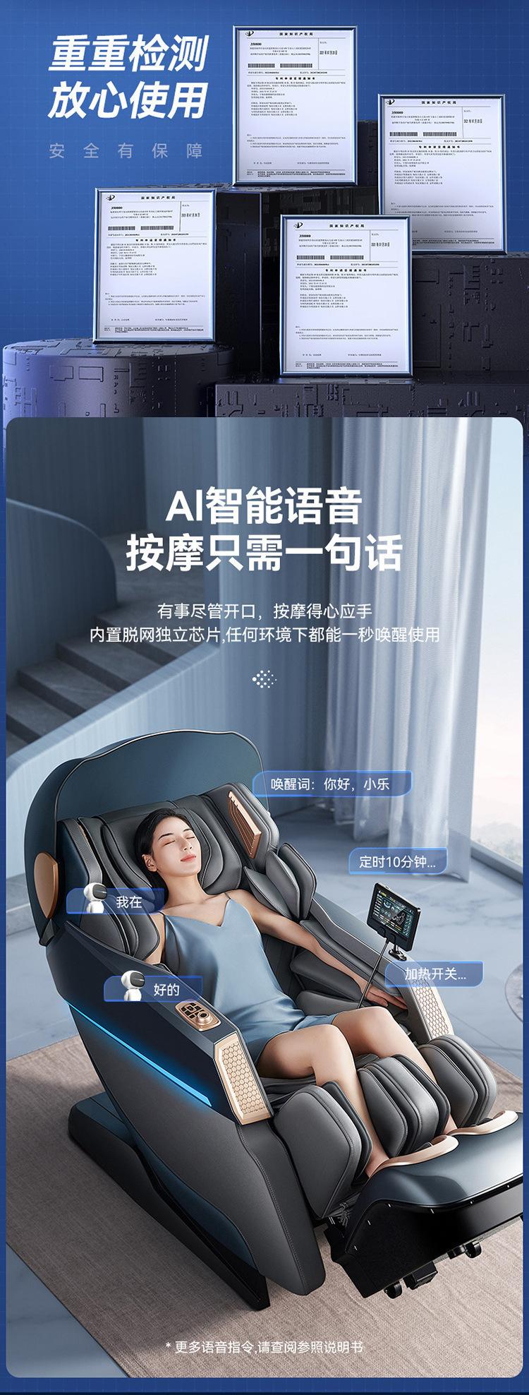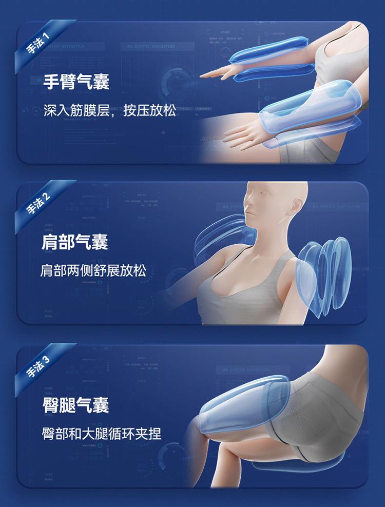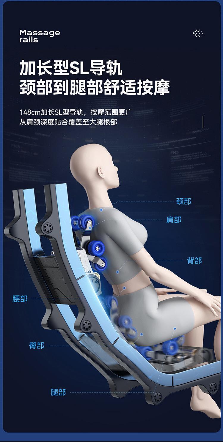 S400 technology blue + 3d movement + negative ions + top waist stretch + sleep head compartment + supercar central control + electric legs + ai physical examination + lcd screen