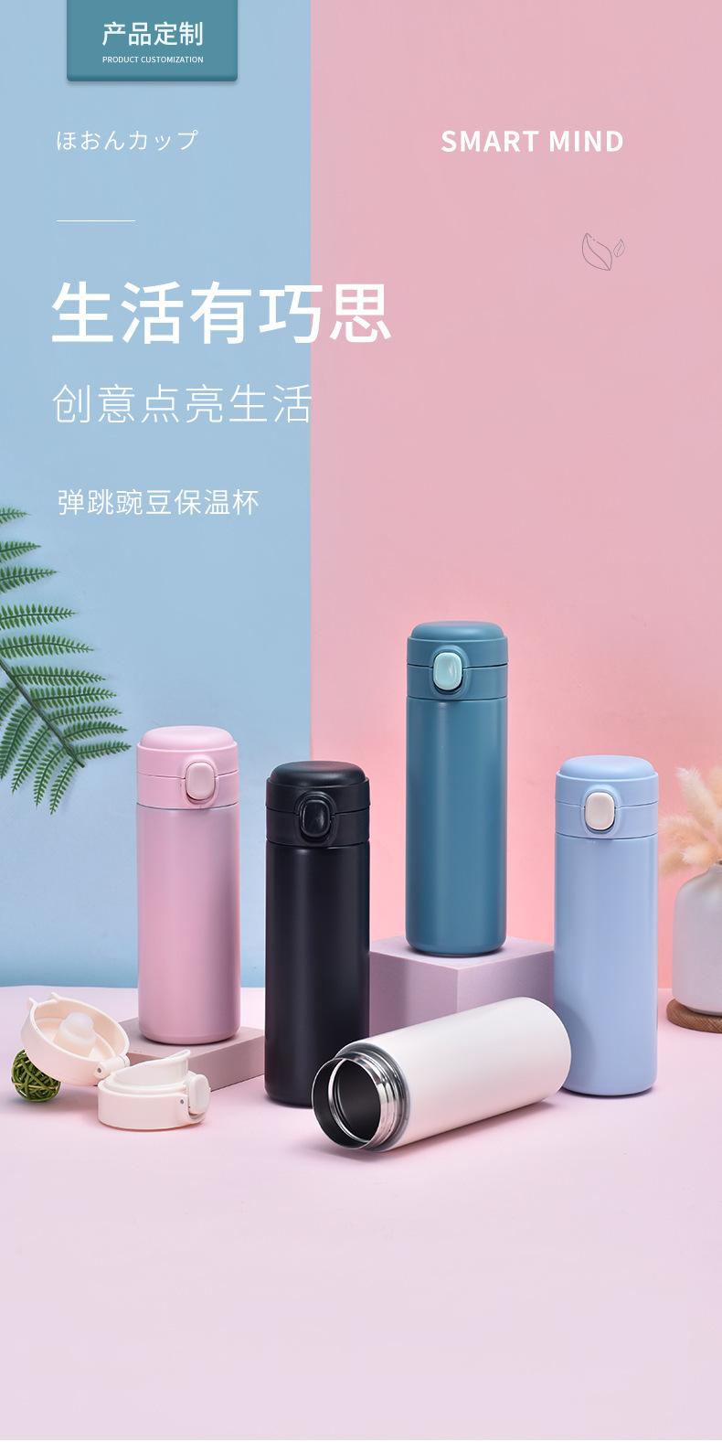 Taza pequeña de acero inoxidable fresca que rebota para hombres y mujeres estudiantes, taza portátil informal para exteriores, taza de guisante para pareja, regalo