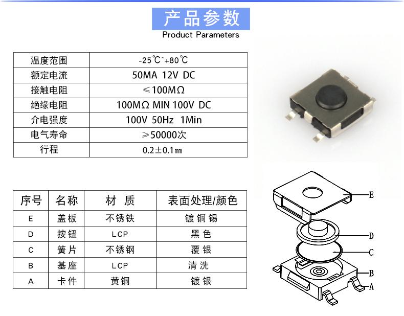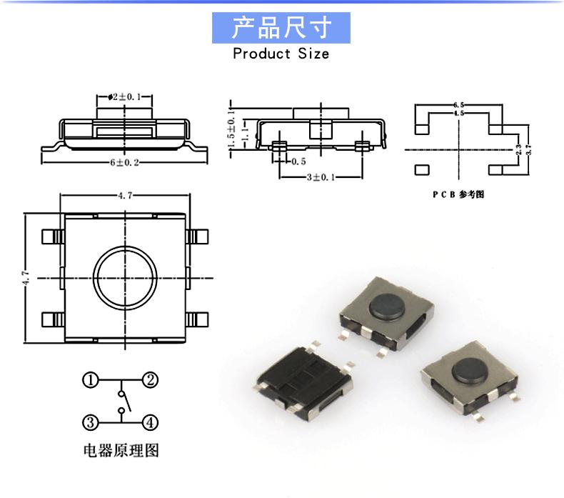 Interruptor pequeño tipo parche Hanjing 4.5X4.5X1.5 a prueba de polvo cuatro pines suministros del fabricante botón pulsador micro-táctil