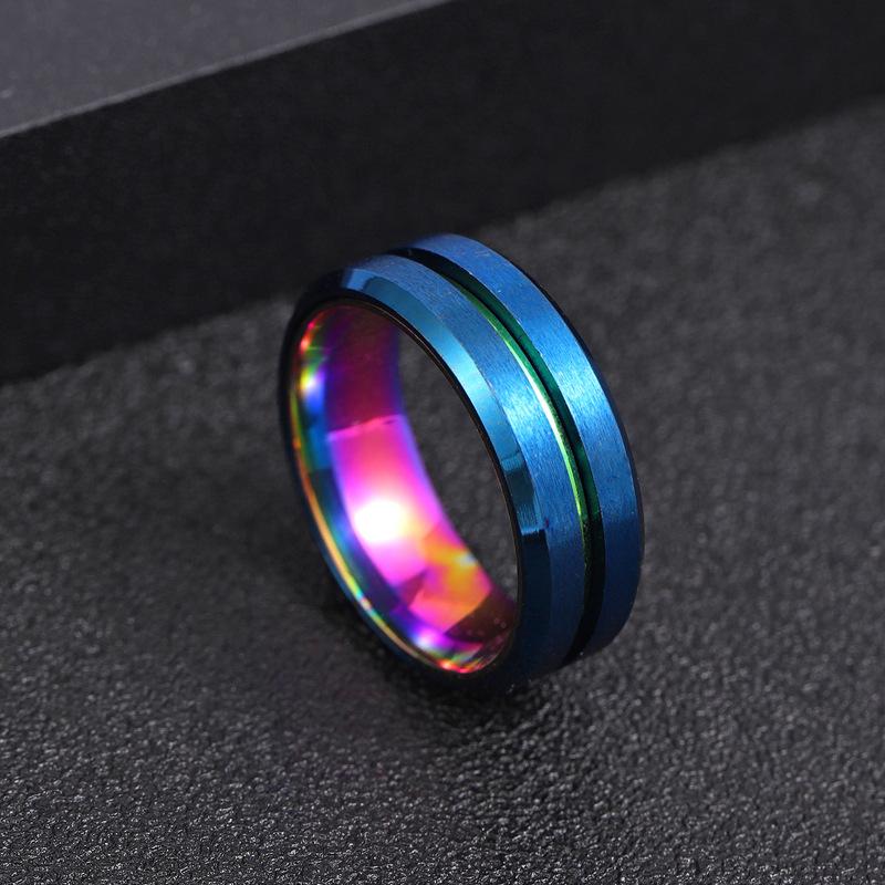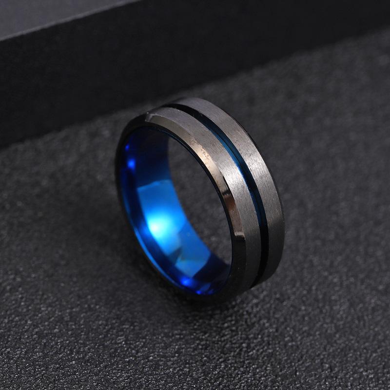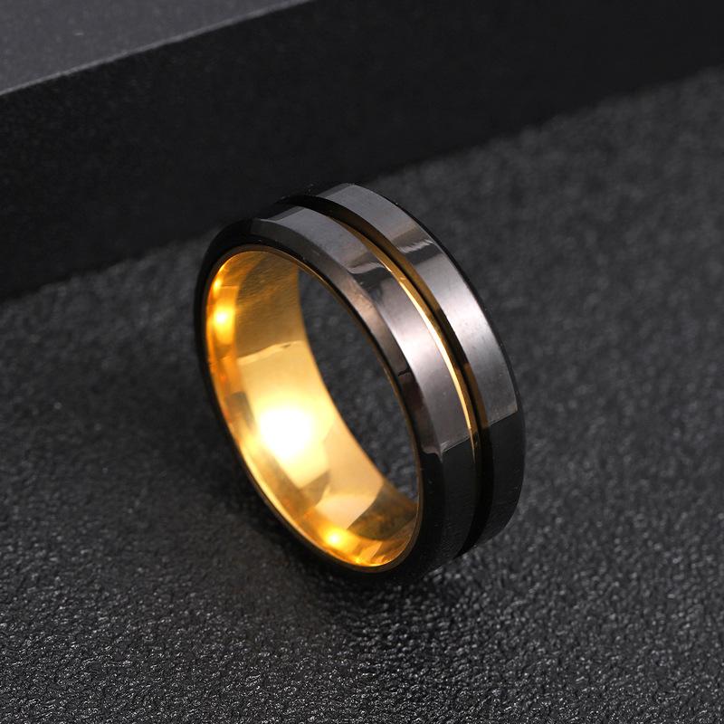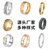 Suministro transfronterizo joyería de acero inoxidable costura bicolor superficie cepillada mate anillo giratorio de acero de titanio hombres y mujeres fabricantes