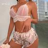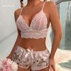Comercio Exterior Transfronterizo se Especializa en Nuevo Conjunto de Pijama de Encaje de Verano Sexy Tirantes Dos Piezas Tops y Shorts para Mujer al Por Mayor