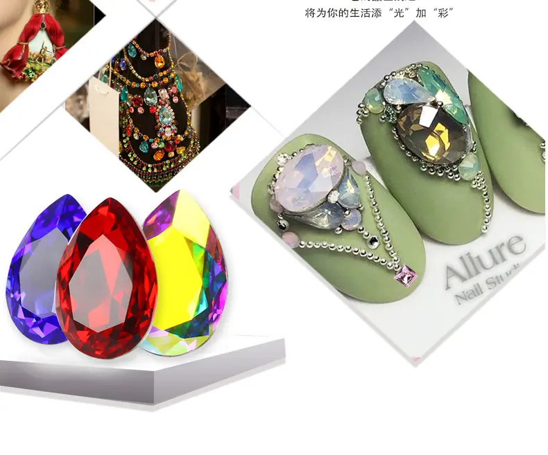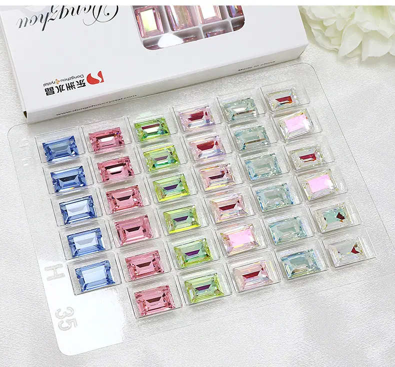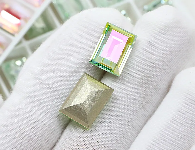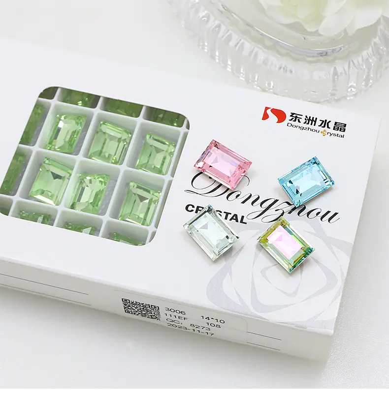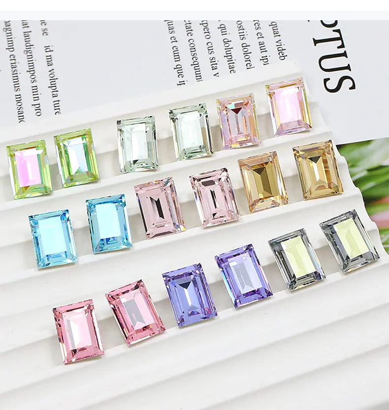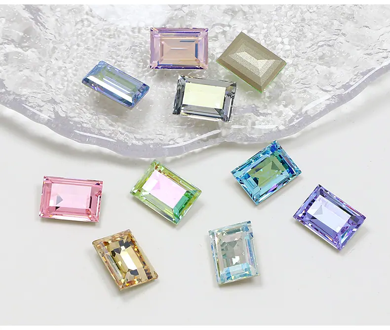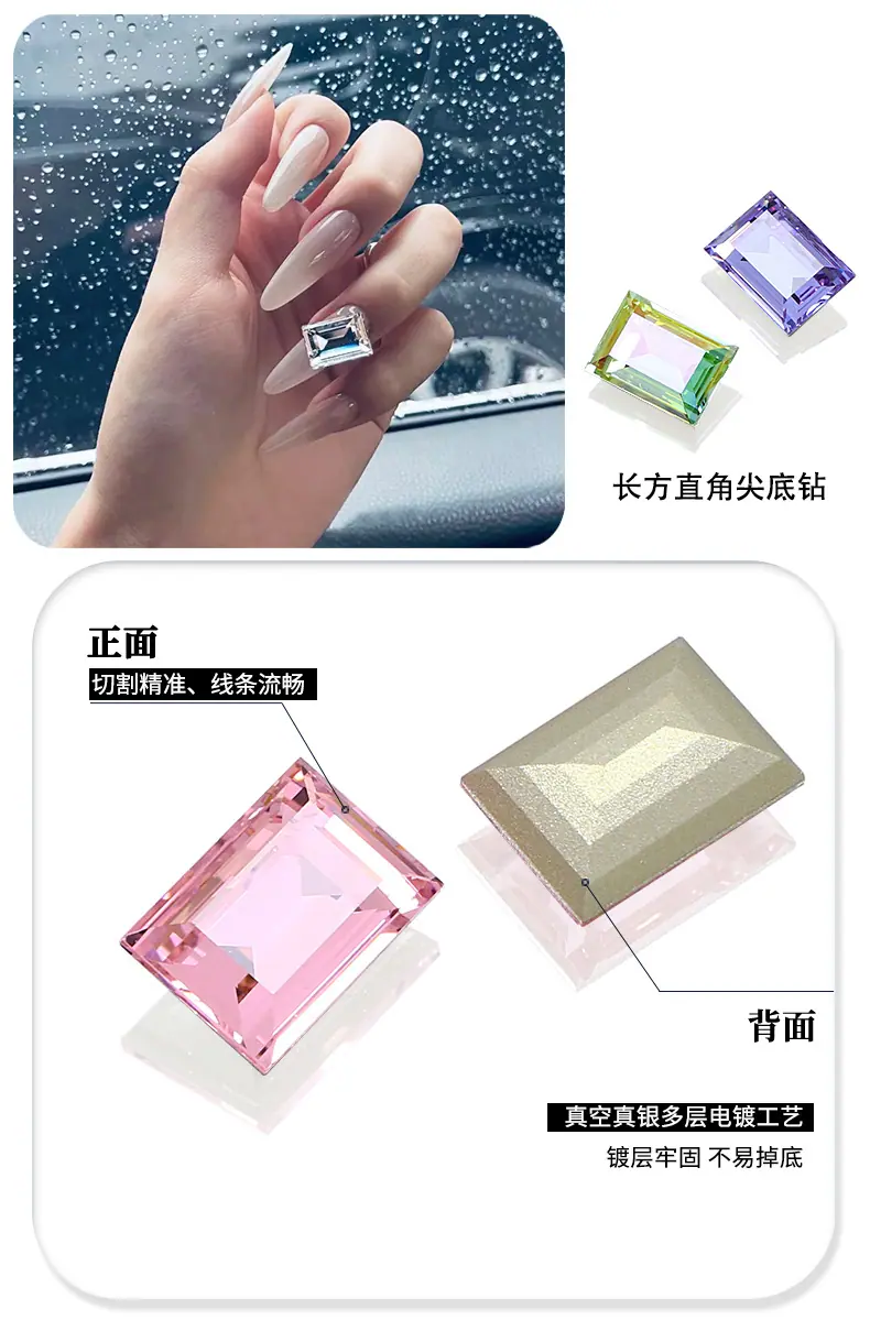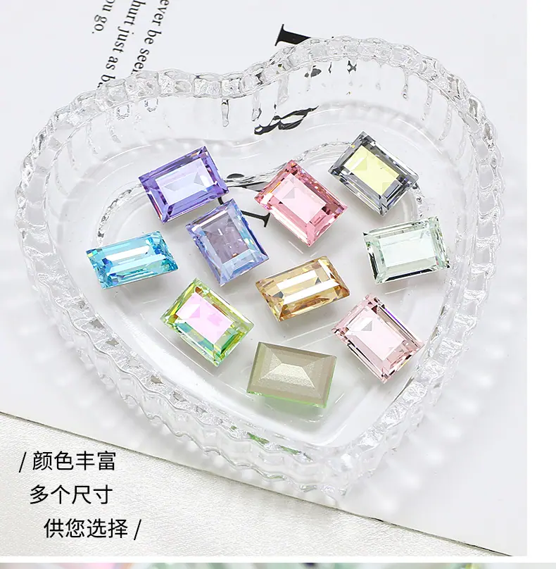 Dongzhou Cristal rectangular ángulo recto fondo puntiagudo taladro de vidrio accesorios de joyería DIY cristal grande color azúcar taladro para uñas 14*10mm