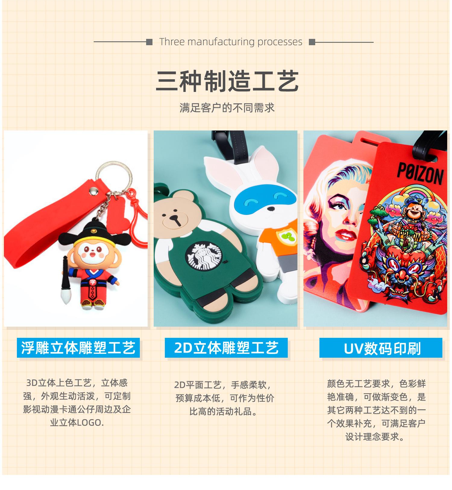 Fabricante Personalizado Pvc Suave Etiqueta de Equipaje Goma Etiqueta Tarjeta de Embarque Etiqueta de Dibujos Animados Soporte para Tarjeta de Silicona Logotipo