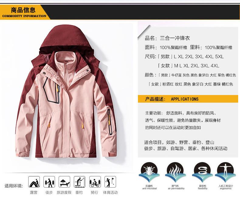 Chaqueta para mujer tres en uno con forro polar desmontable, traje de dos piezas, chaqueta de primavera/otoño e invierno, ropa de montañismo y esquí para hombre