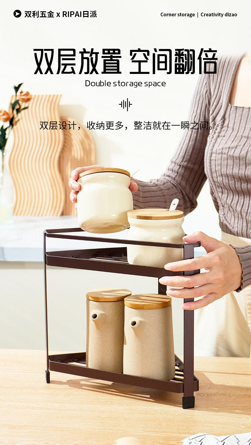 Estante de Almacenamiento de Cocina Japonés Trípode para Condimentos Esquinero Estante para Ollas Estante de Almacenamiento Organizador de Encimera para Hogar Baño