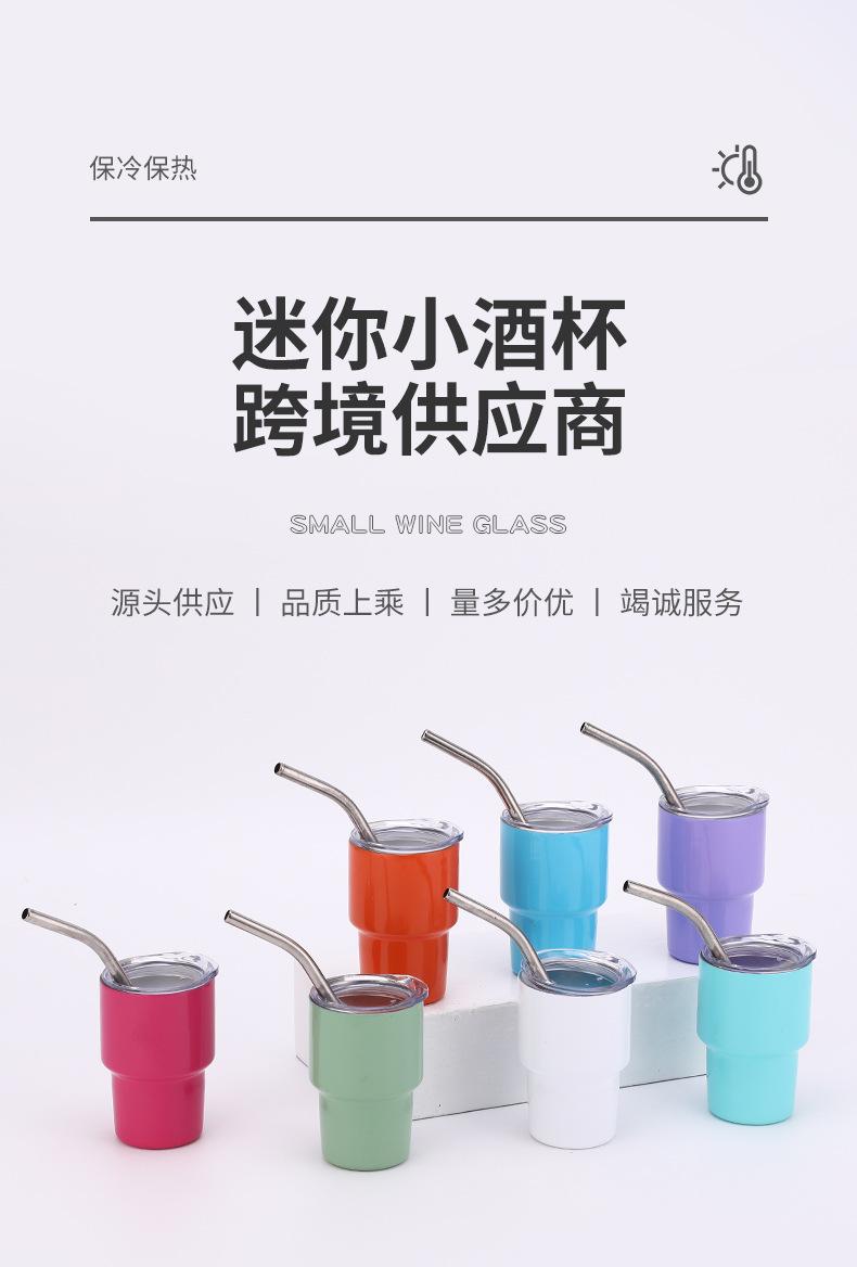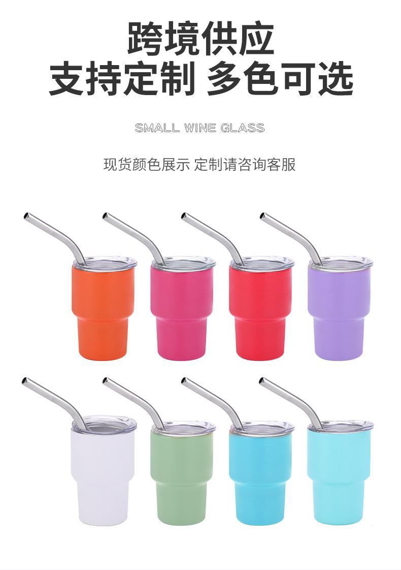 Copa de vino pequeña de 2-3 oz transfronteriza de acero inoxidable 304, taza de coche, taza de acero inoxidable doble, mini taza con pajita, venta al por mayor