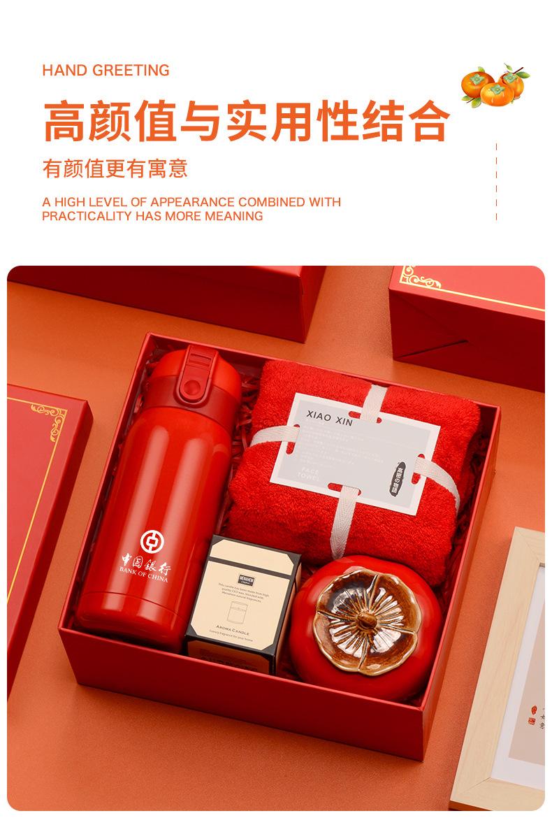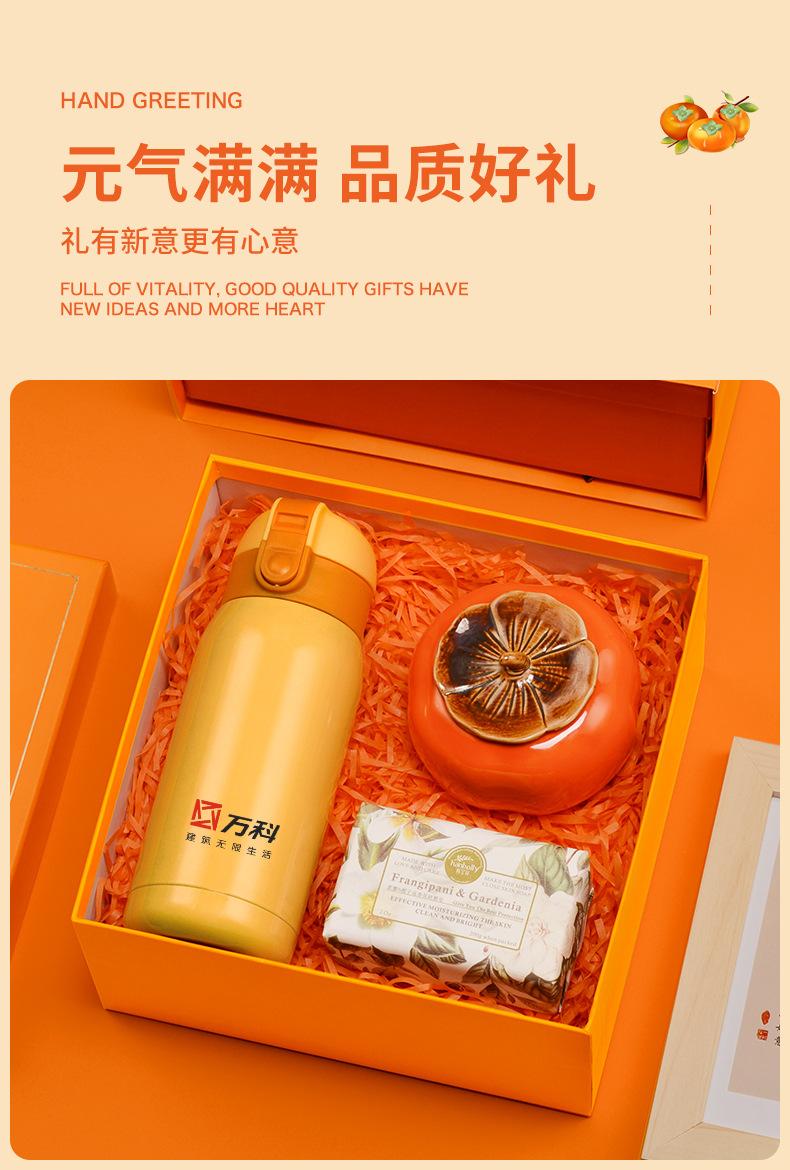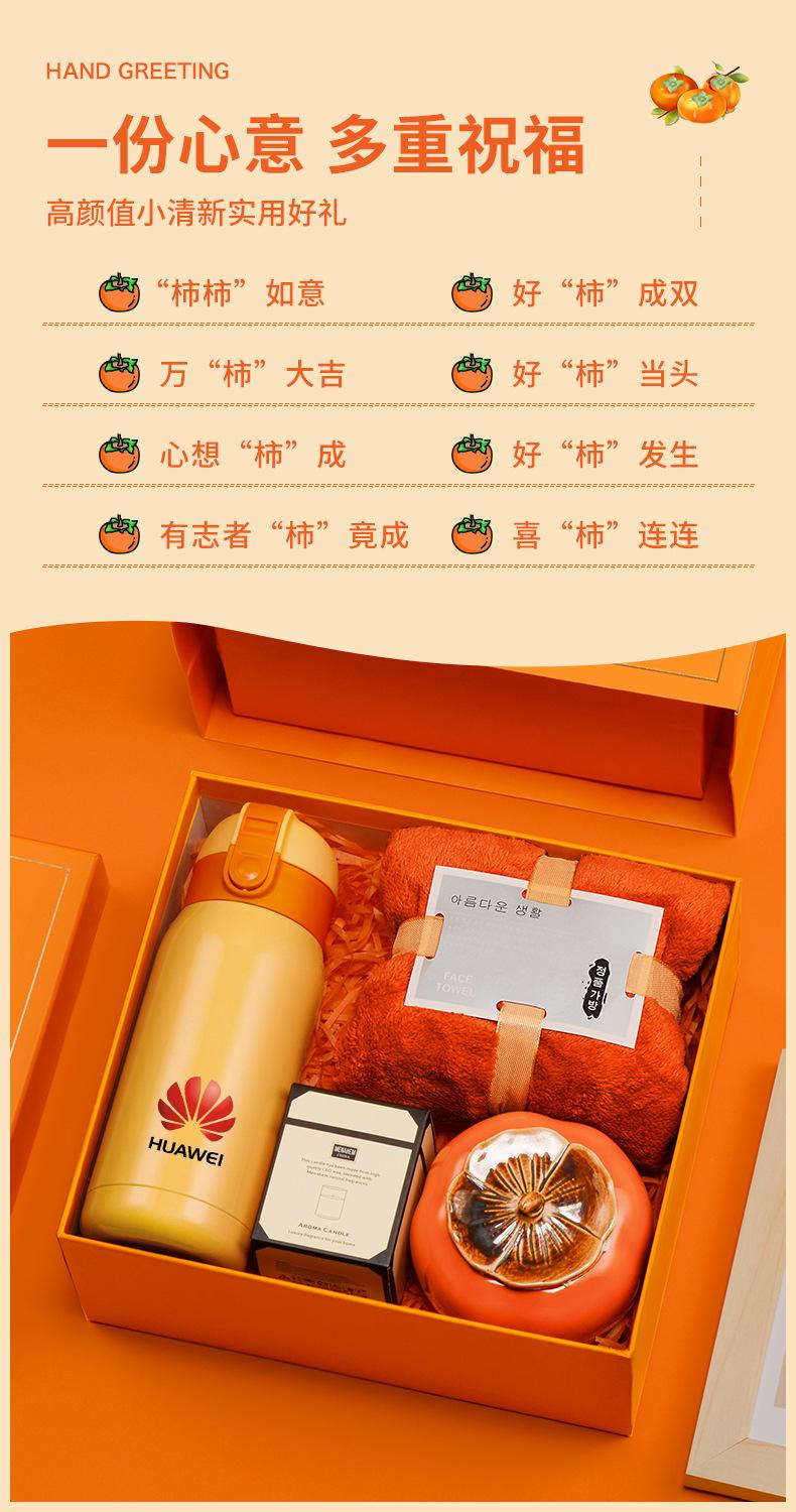 Orange bouncing thermos cup + persimmon jar + towel + gift box