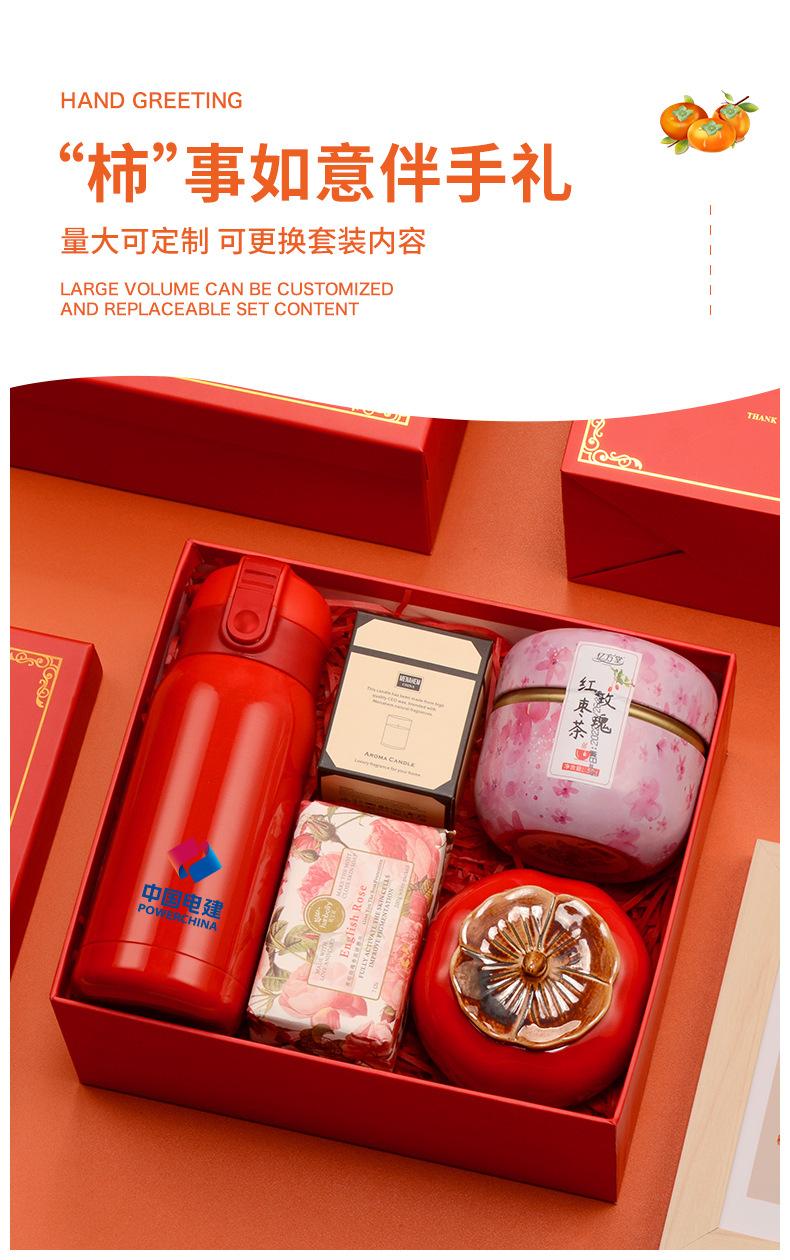Orange glass straw cup + persimmon jar + towel + gift box, Red glass straw cup + persimmon jar + towel + soap ...