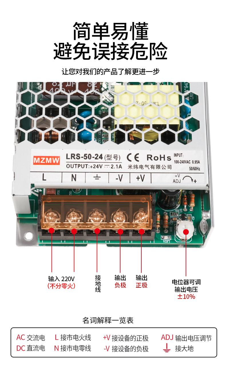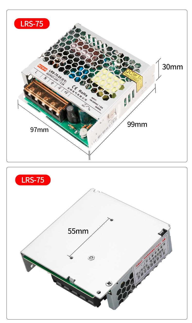 220 a 24V12 Voltios Lrs-50-12/Lrs-75-24 Cc 3A Transformador Fuente de Alimentación Conmutada Cc 50W75W