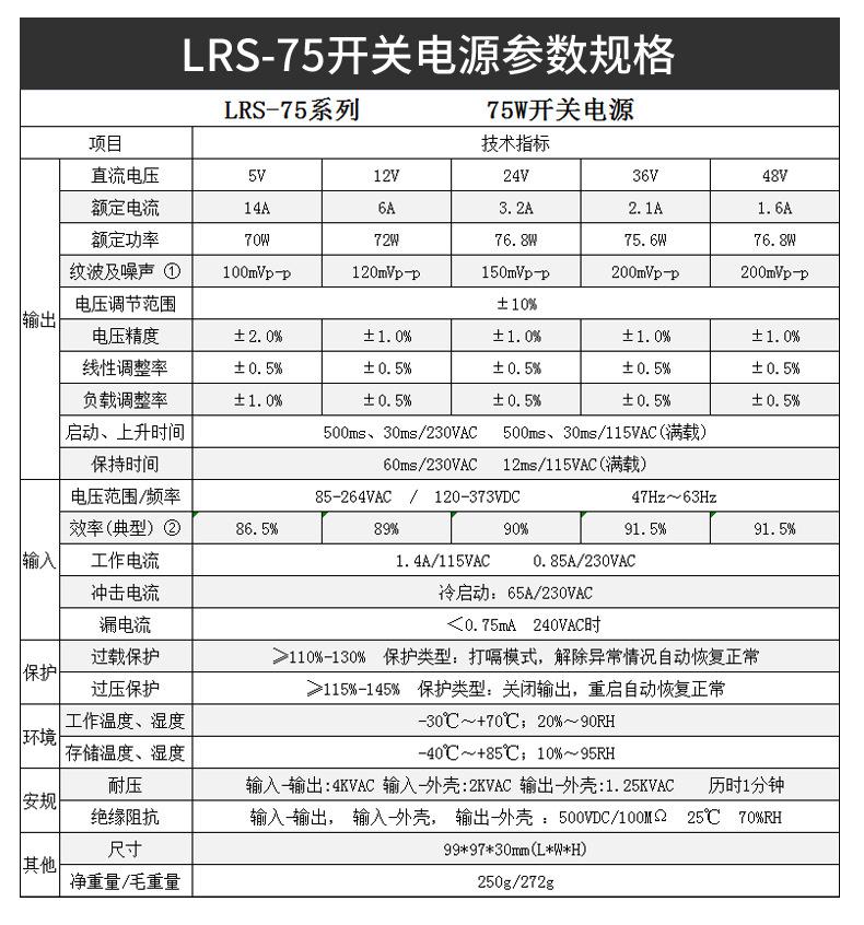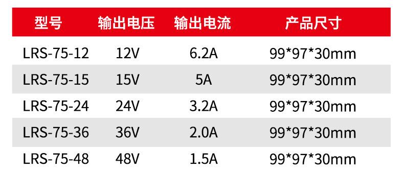LRS-50-12, LRS-50-24, LRS-50-36, LRS-50-48, LRS-75-12, LRS-75-24, LRS-75-36, LRS-75-48