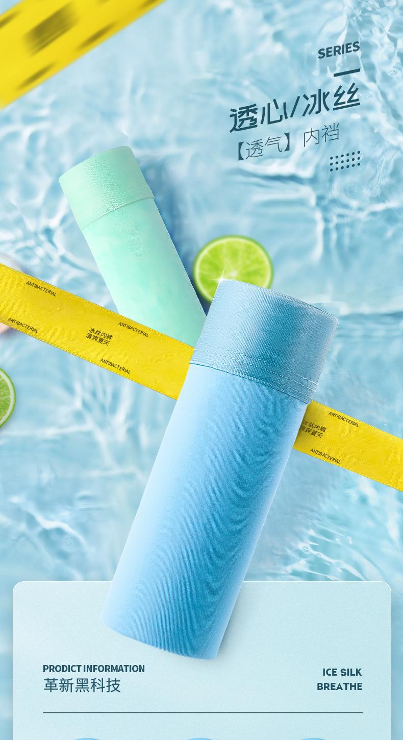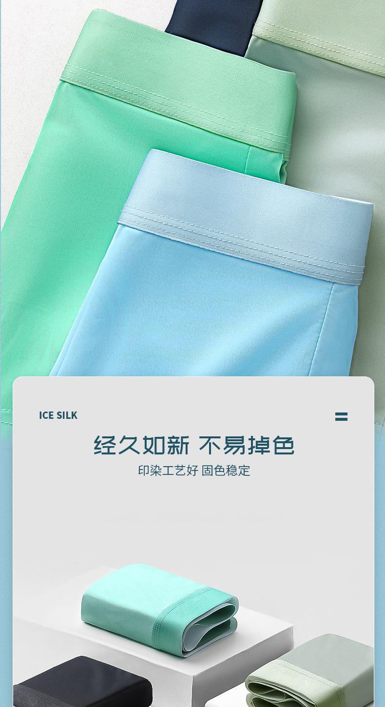 Procesamiento de ropa interior masculina personalizada, calzoncillos tipo bóxer para hombre, calzoncillos tipo bóxer de cintura media transpirables ultrafinos de seda de hielo para jóvenes.