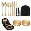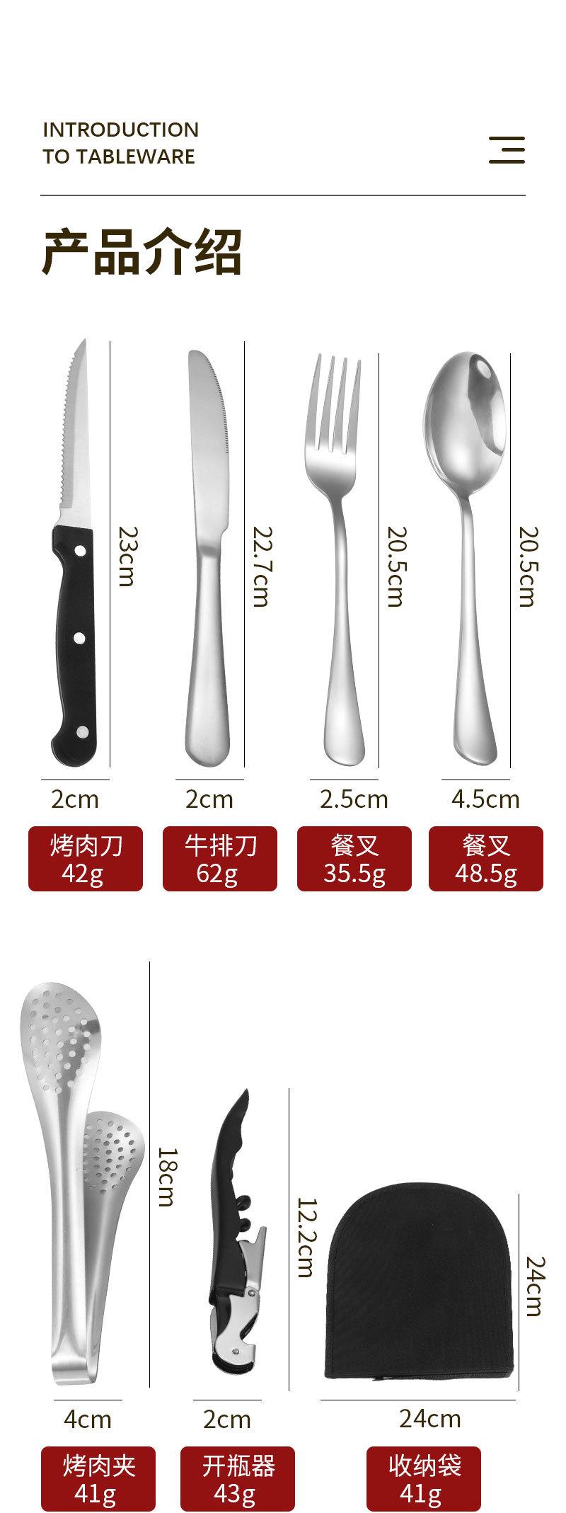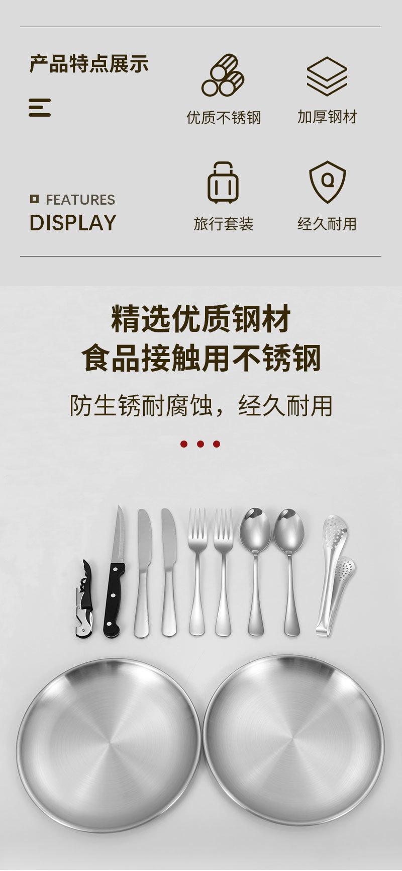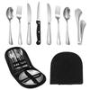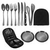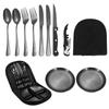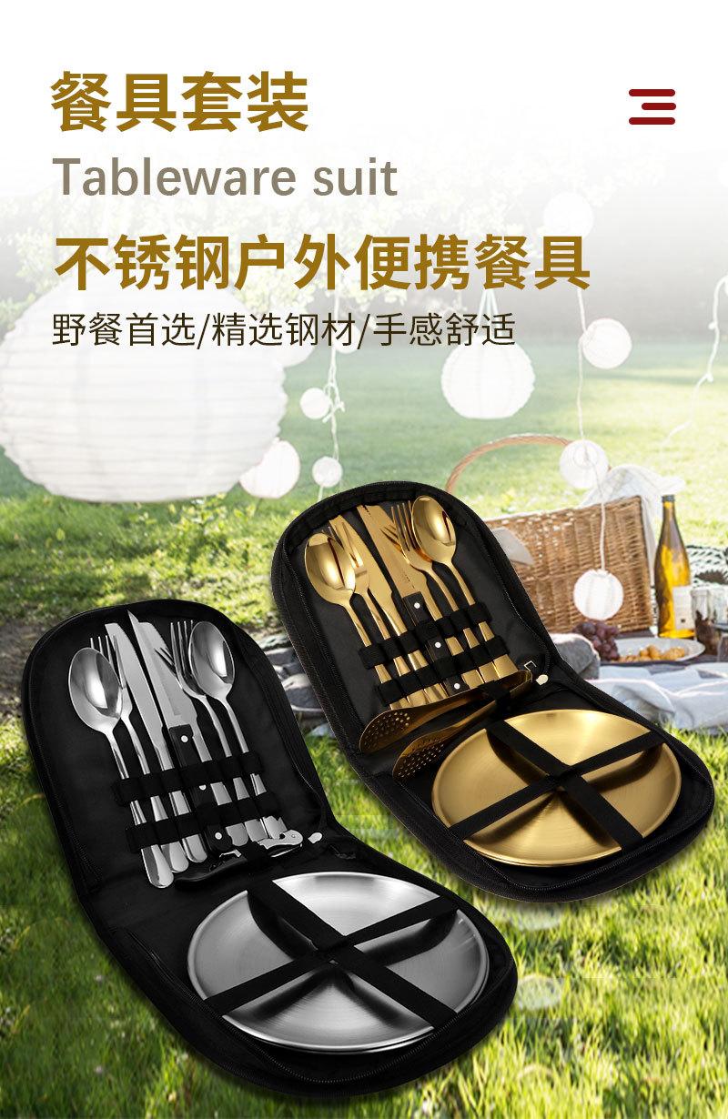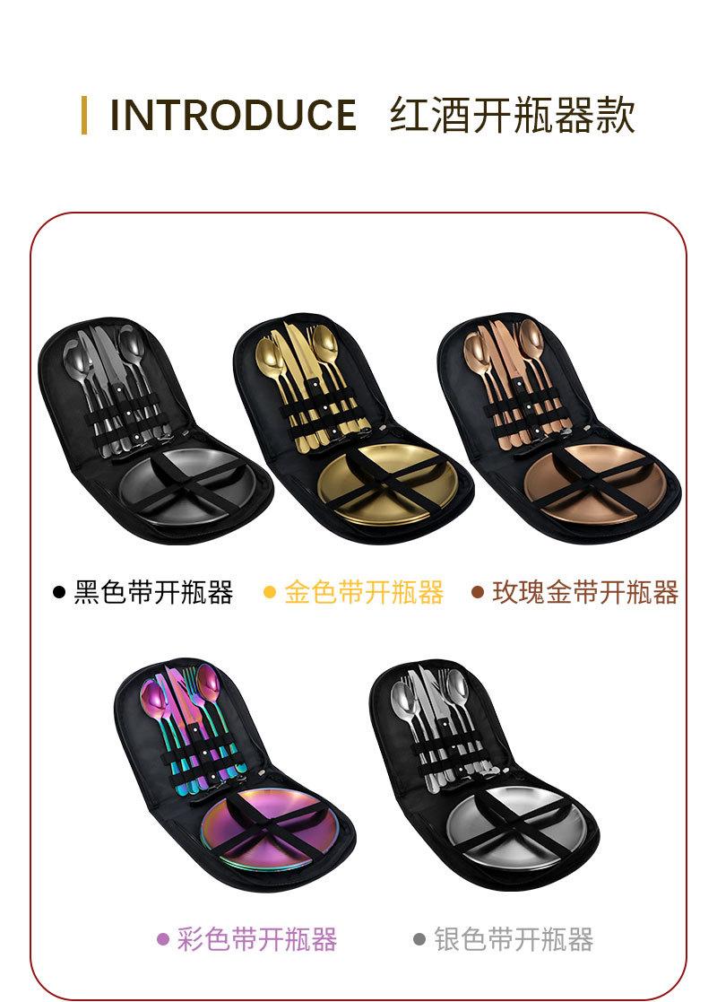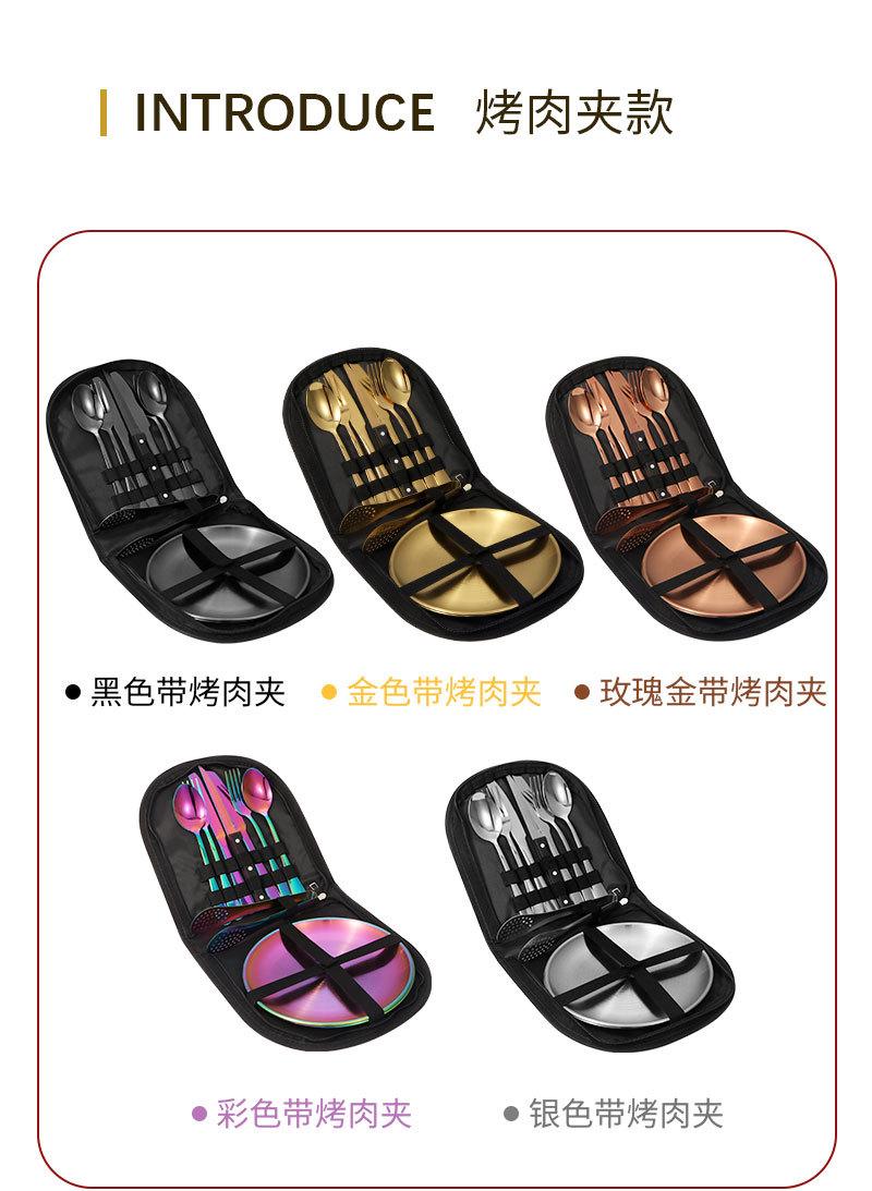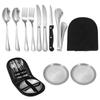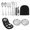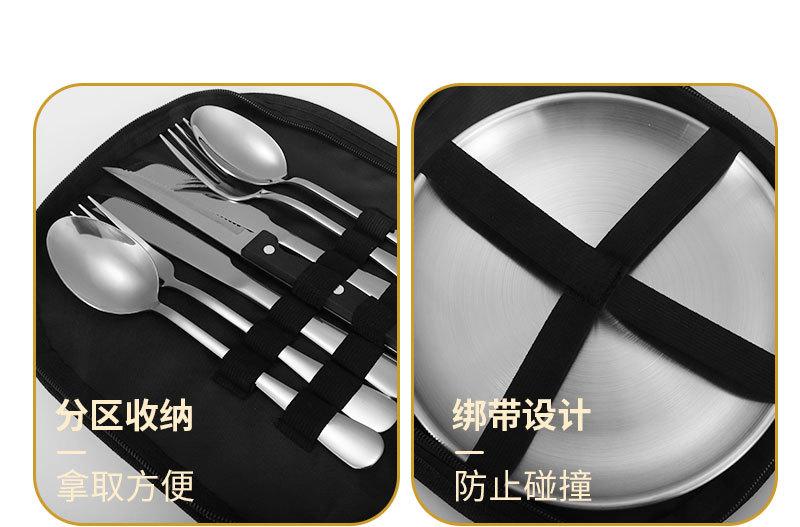 Vajilla de acero inoxidable con cuchillo, tenedor y cuchara de Amazon transfronterizos, apta para picnic al aire libre, barbacoa, plato con clip, bolsa de almacenamiento portátil para vajilla