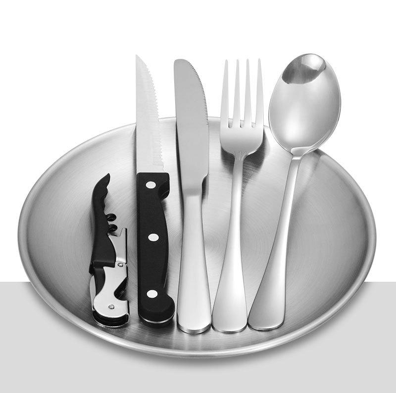 Compra Vajilla de acero inoxidable con cuchillo, tenedor y cuchara de Amazon transfronterizos, apta para picnic al aire libre, barbacoa, plato con clip, bolsa de almacenamiento portátil para vajilla al por mayor en Joom.pro