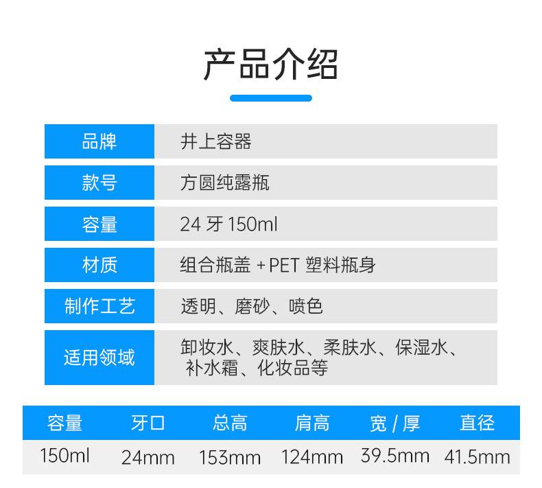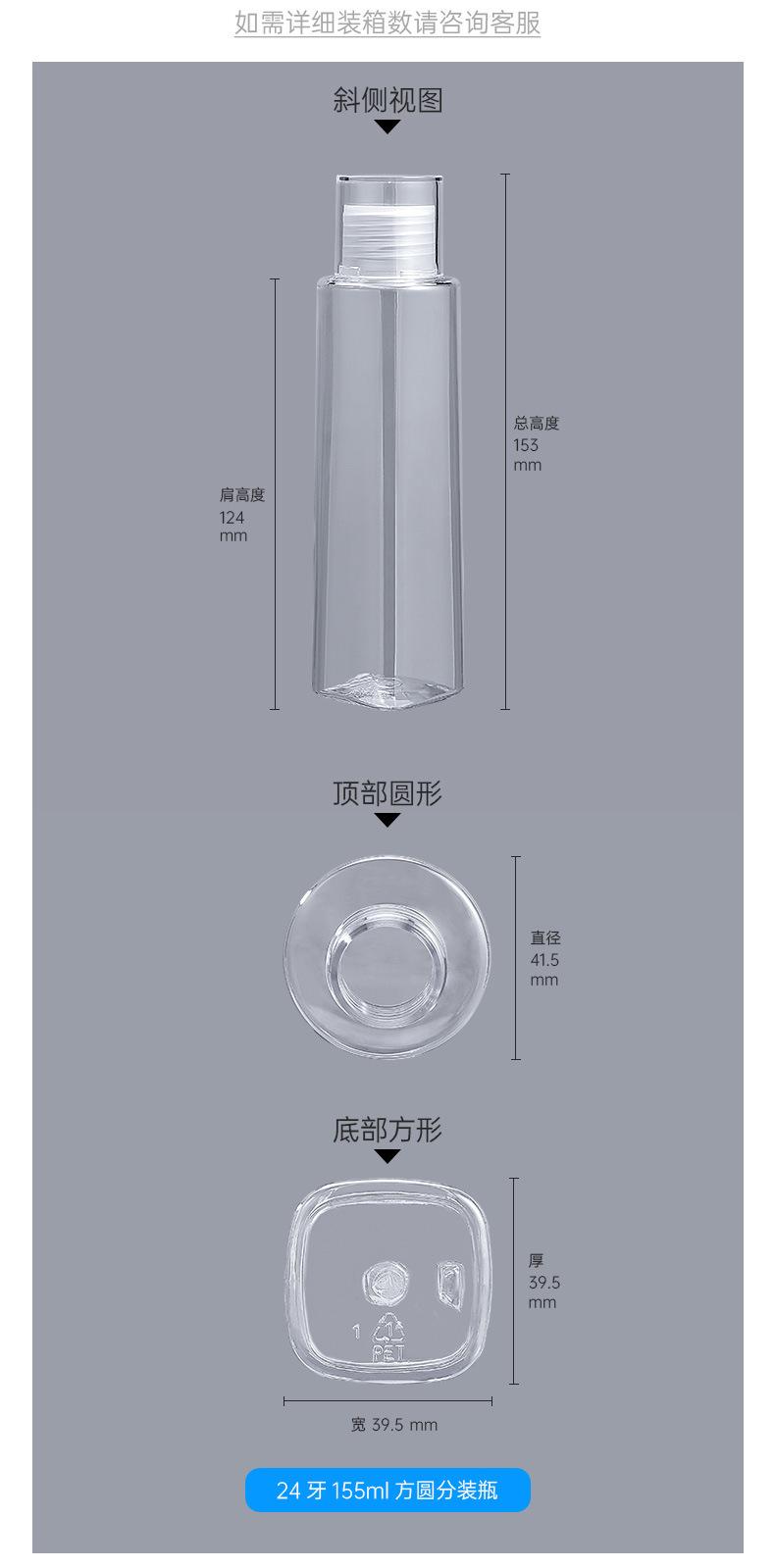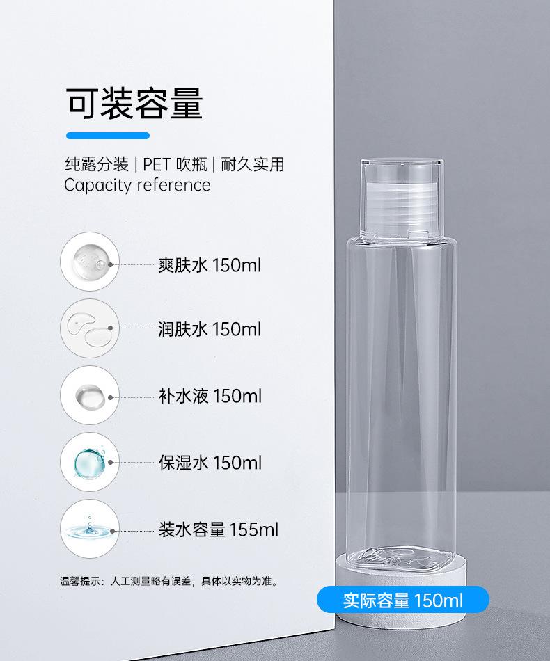 Botella cuadrada redonda de 150 ml con rocío puro para mascotas, loción, crema hidratante, tónico, subbotella, productos cosméticos para el cuidado de la piel.