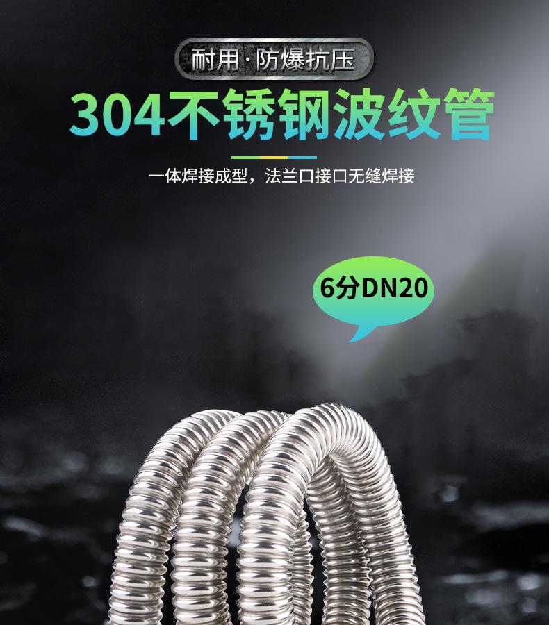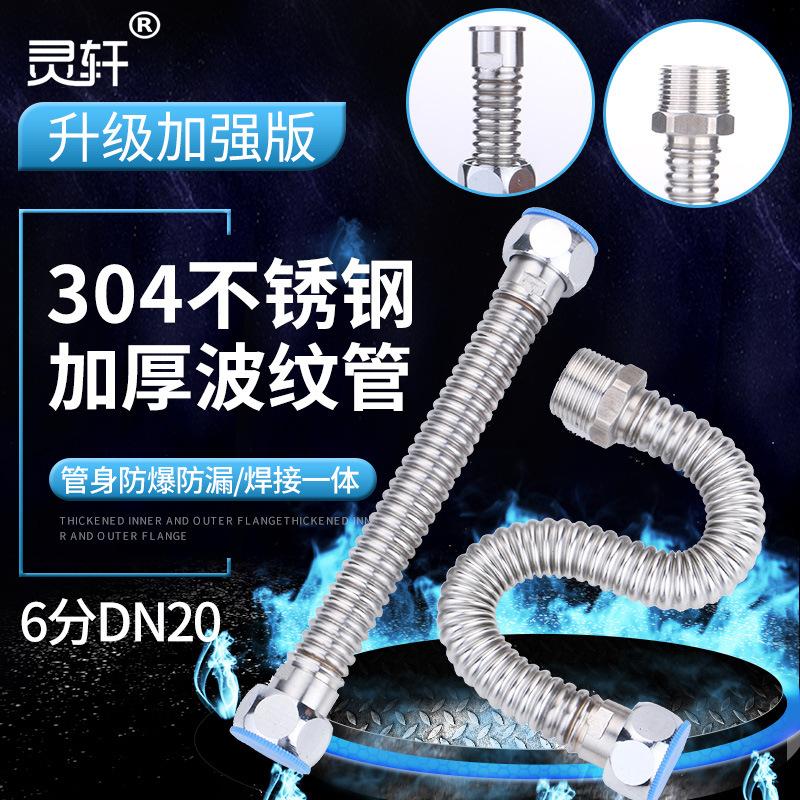 Tubo Corrugado de Acero Inoxidable 304 de 6 Puntos a Prueba de Explosiones Calentador de Agua Calefacción por Suelo Caldera de Pared Radiador Tubería de Entrada de Agua Fría y Caliente Dn20