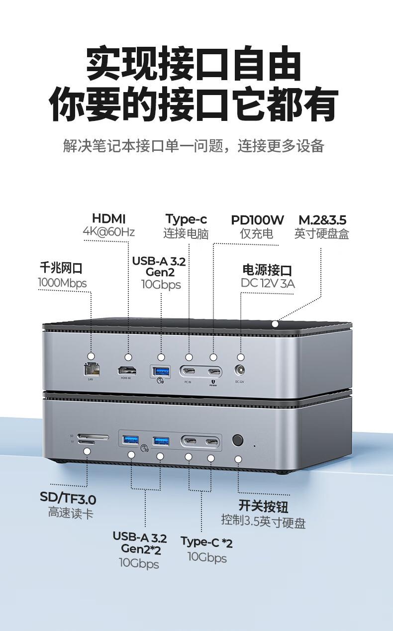 [10-in-1] M.2/3.5-inch hard disk box docking station