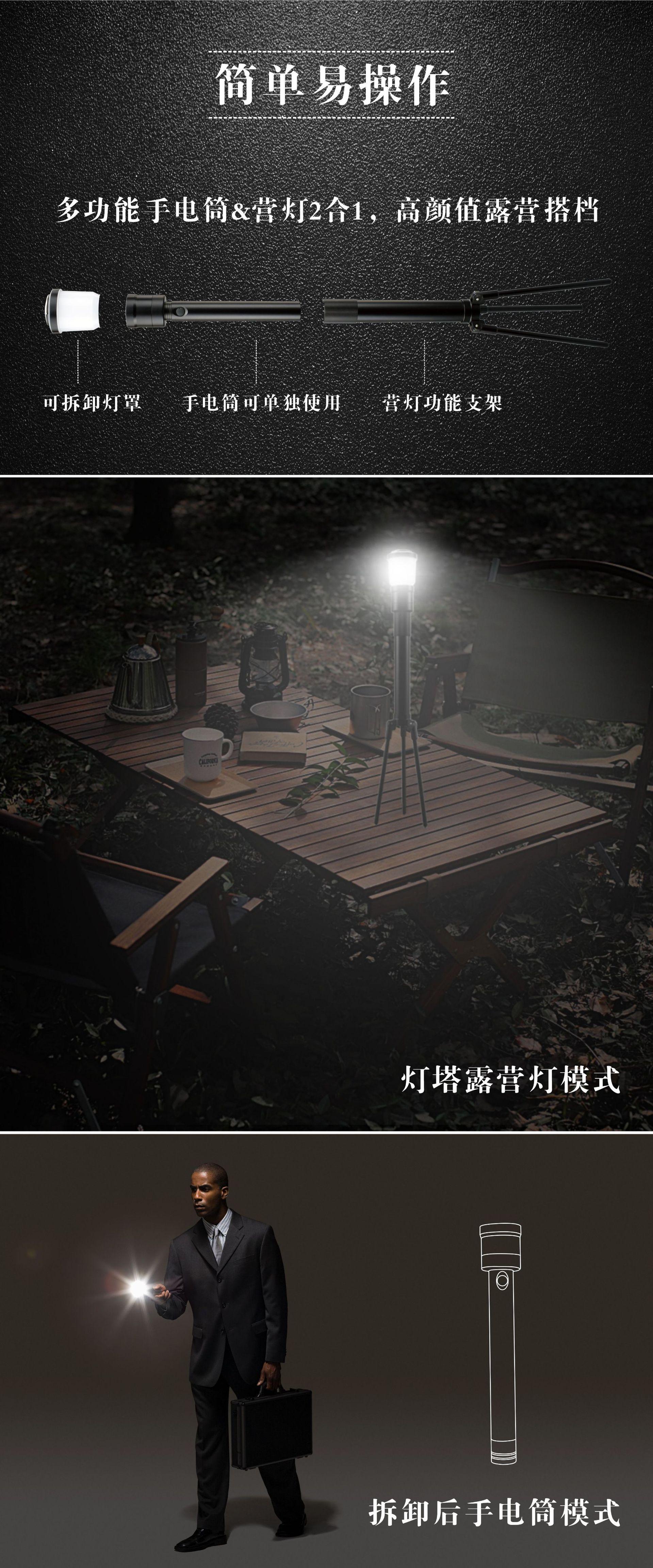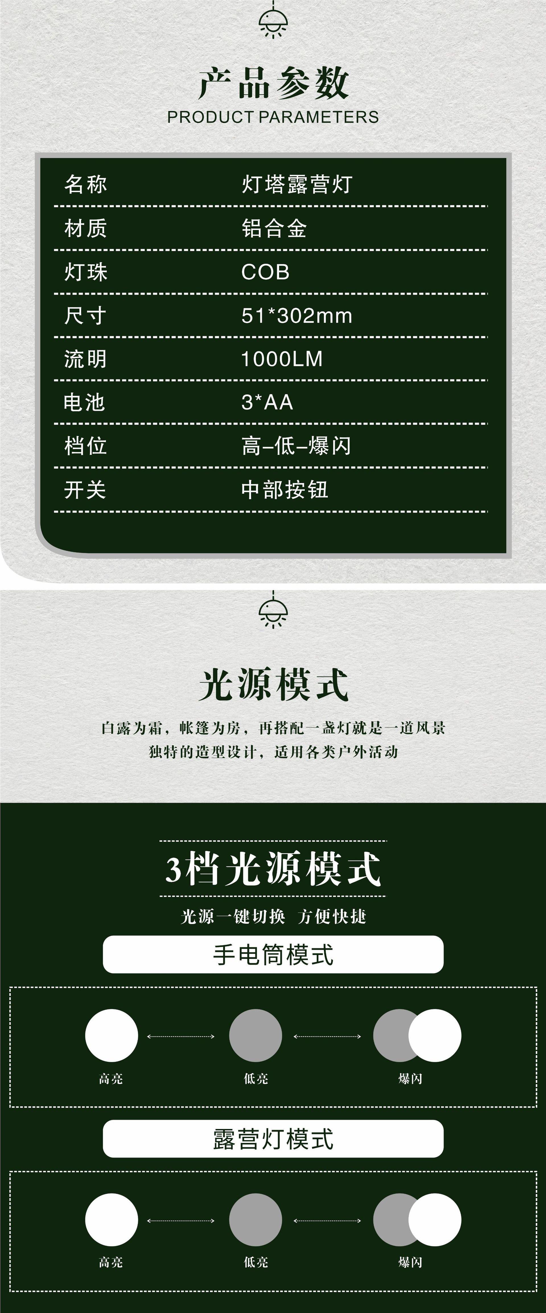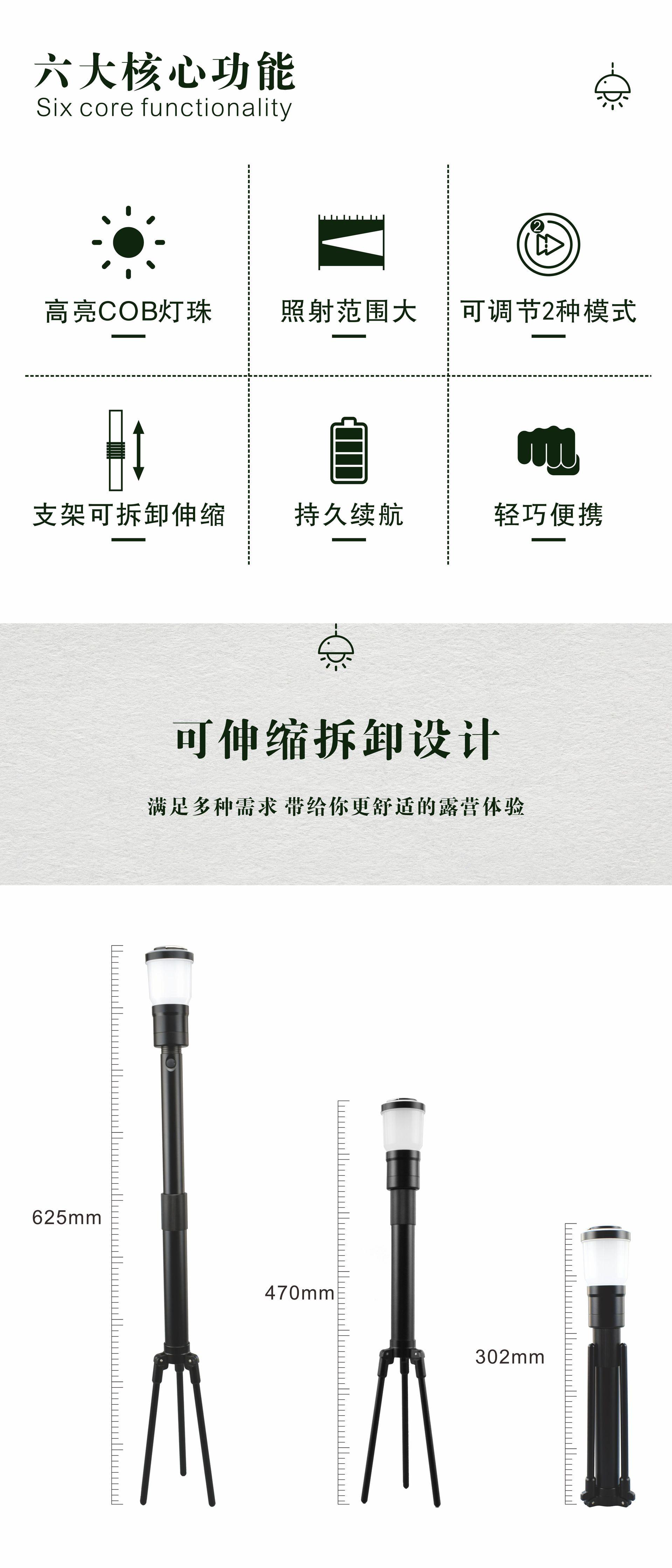Luz de Estilo Faro para Camping al Aire Libre Luz Retráctil de Estilo Camping 2 en 1 Linterna Portátil Retráctil Iluminación para Tienda de Campaña