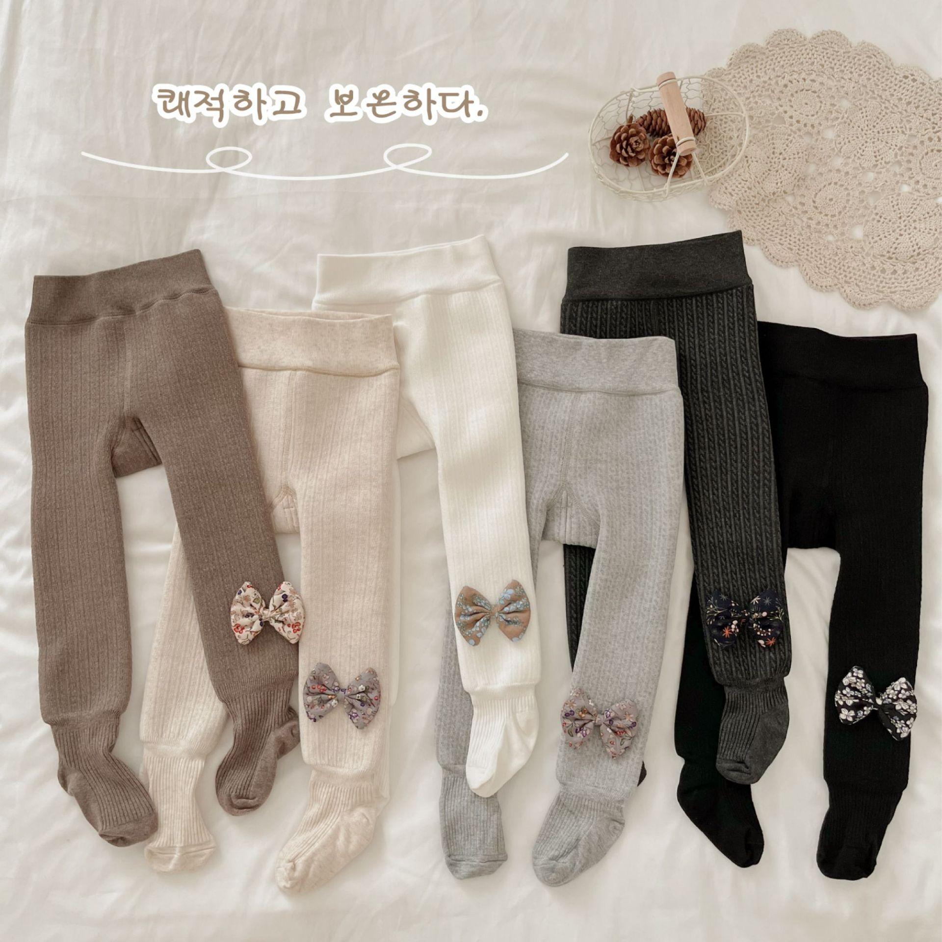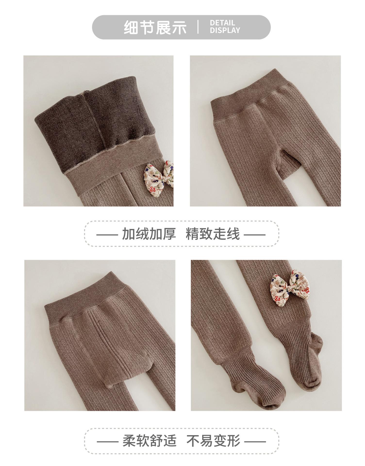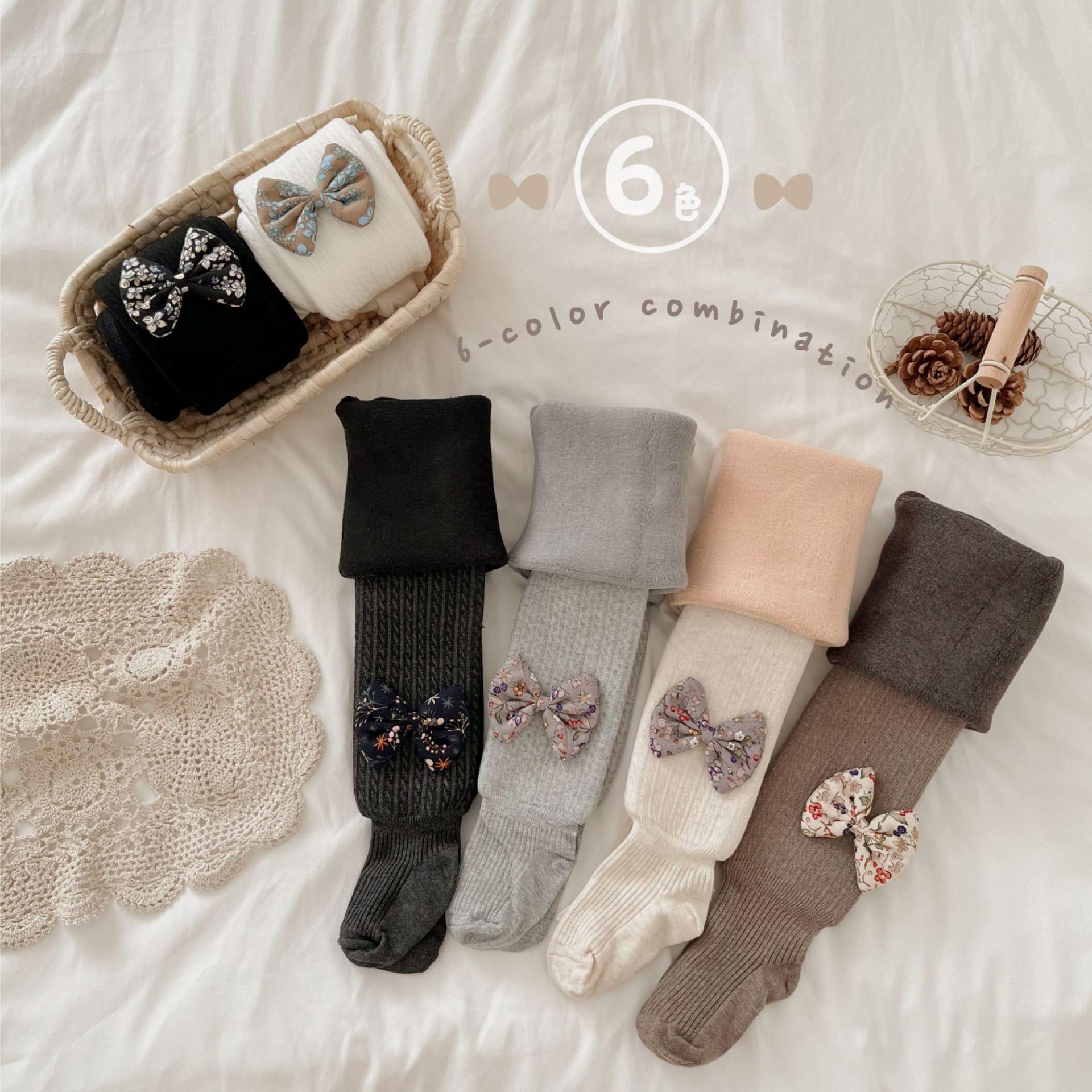 Leggings para niñas otoño e invierno con forro polar engrosado con lazo, pantimedias japonesas para niños, pantimedias cálidas para bebés