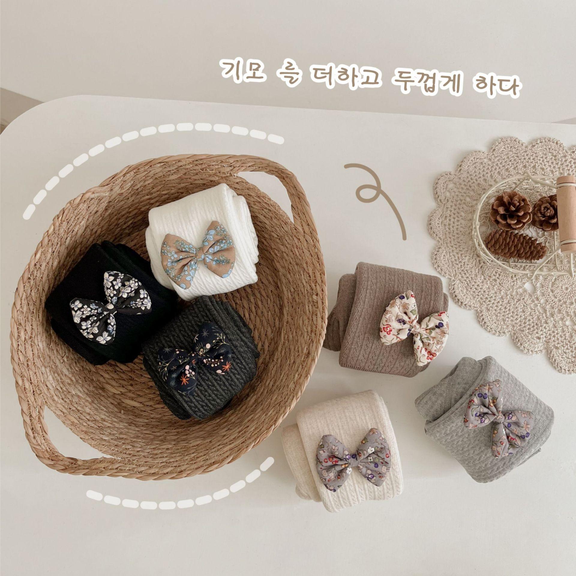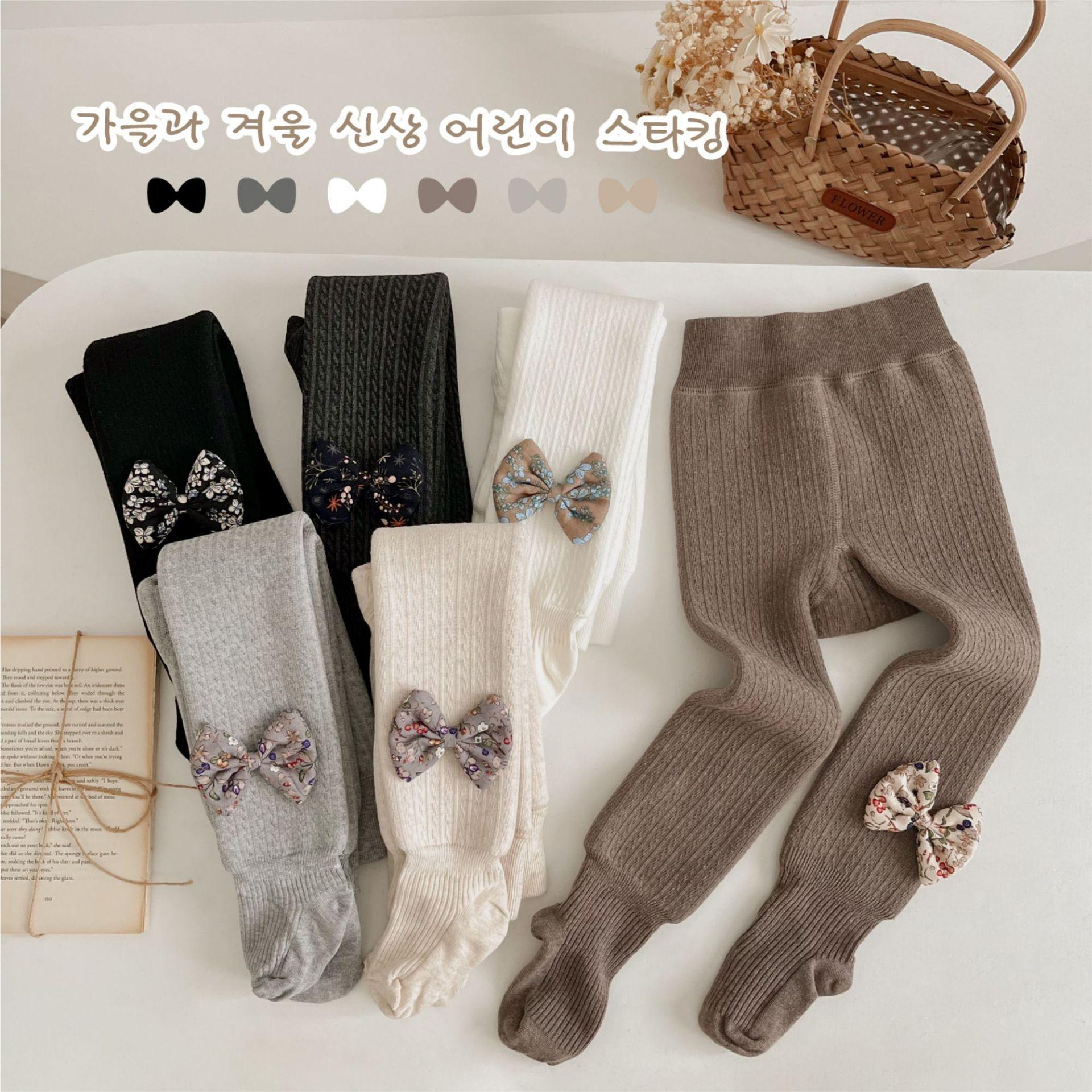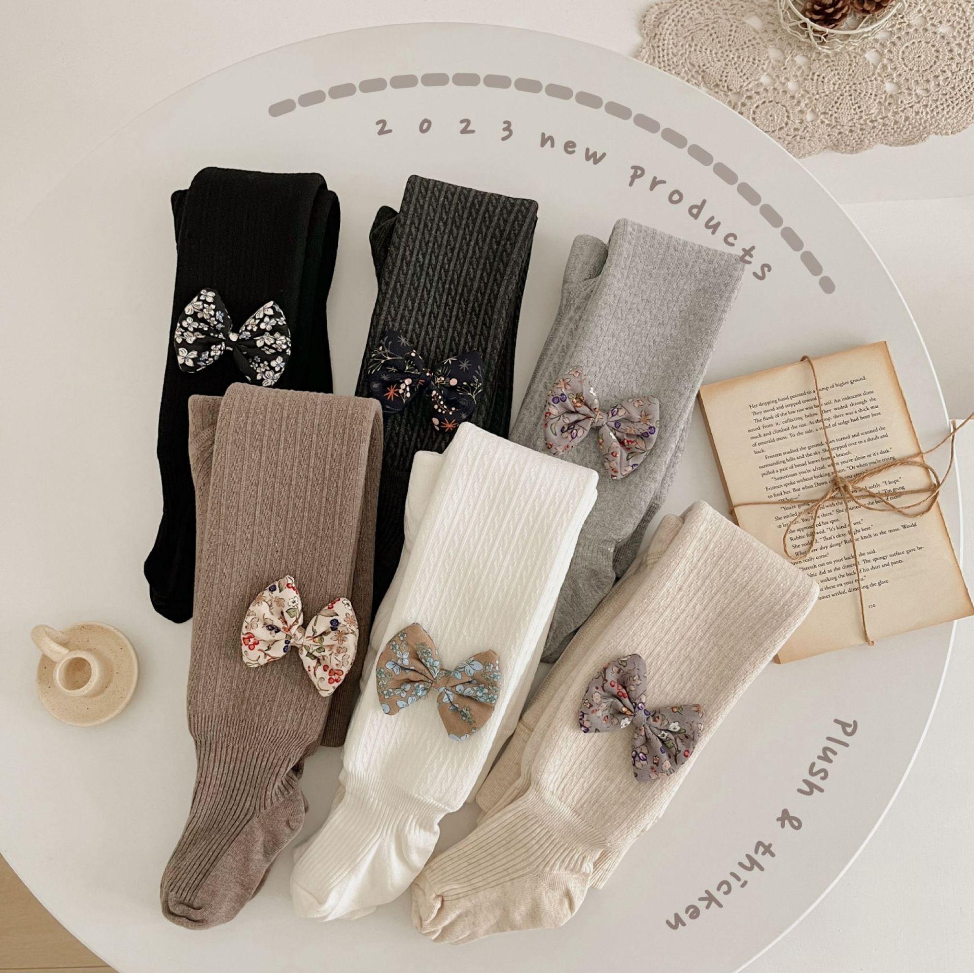 Leggings para niñas otoño e invierno con forro polar engrosado con lazo, pantimedias japonesas para niños, pantimedias cálidas para bebés