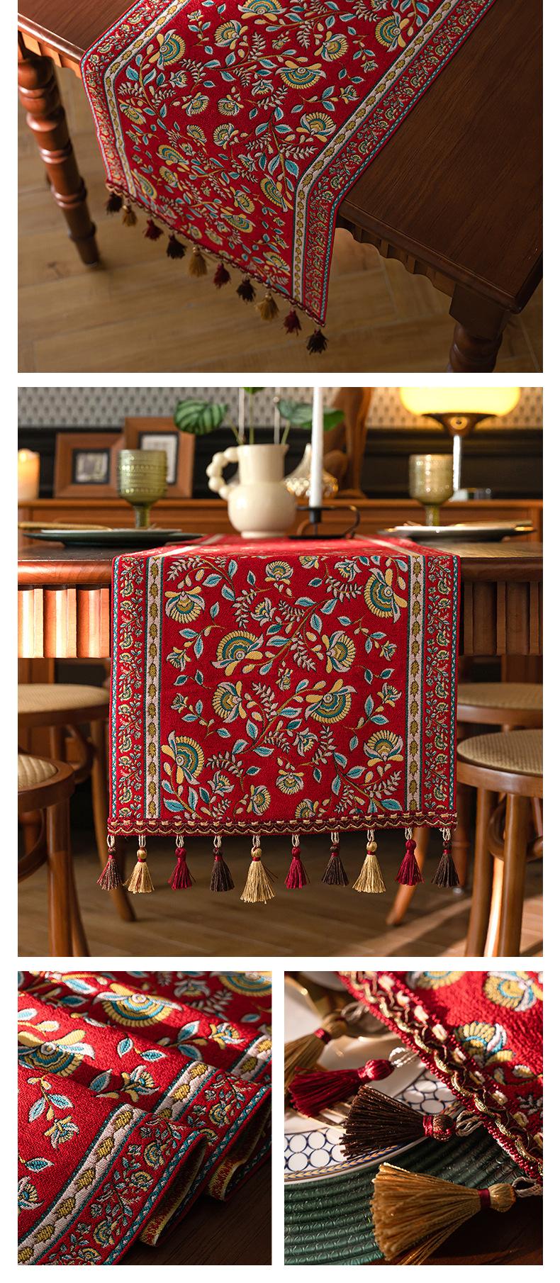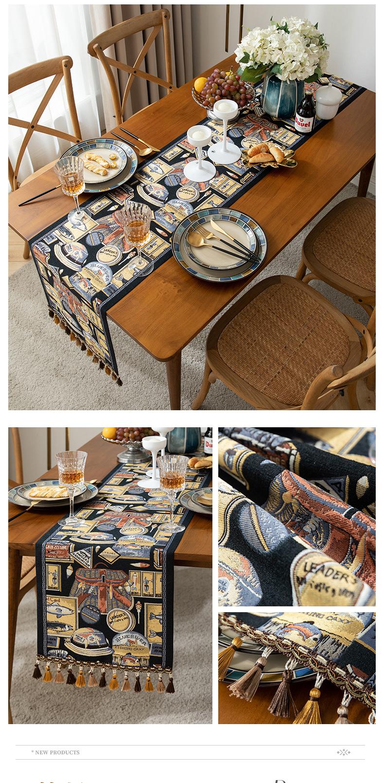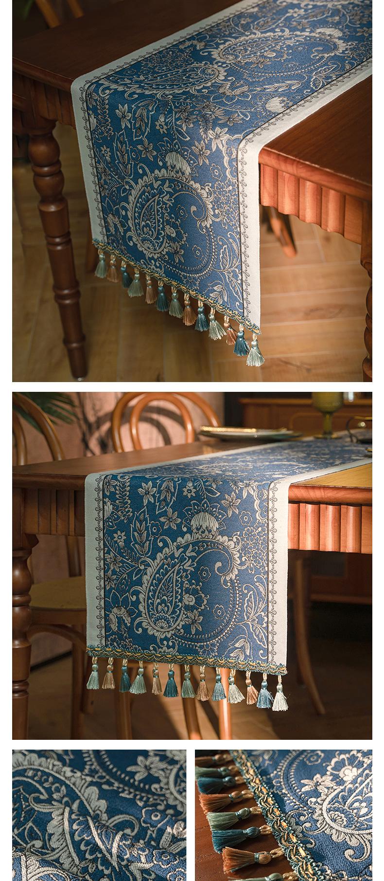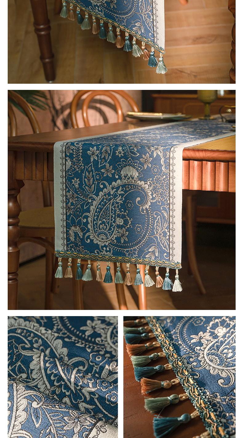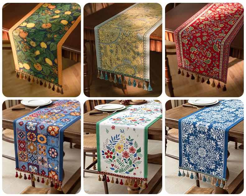 Camino de Mesa Retro Estilo Americano con Borlas, Jacquard, Sensación de Alta Gama, Mantel Largo de Tela para Mesa de Té para Uso Doméstico, Tela Gruesa para Mesa de Té de Aparador