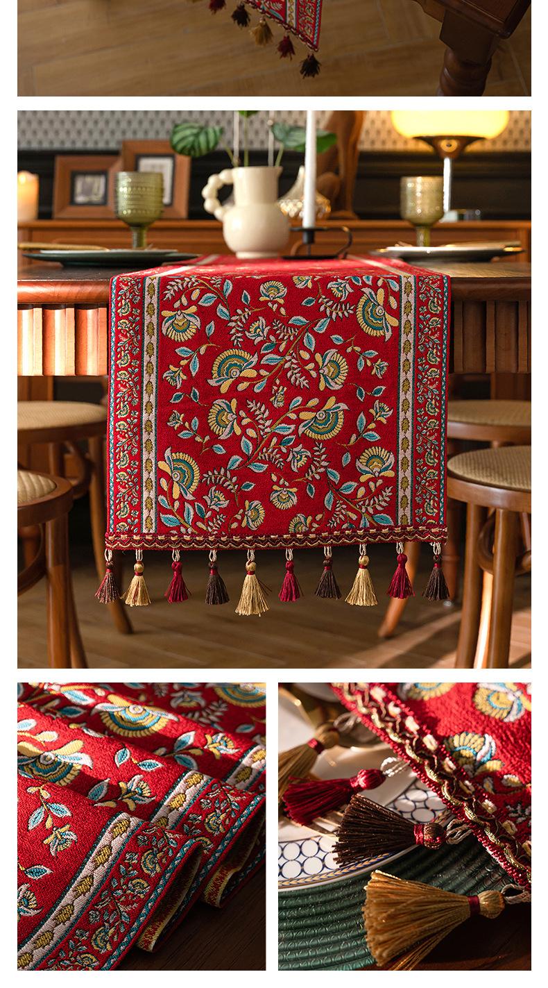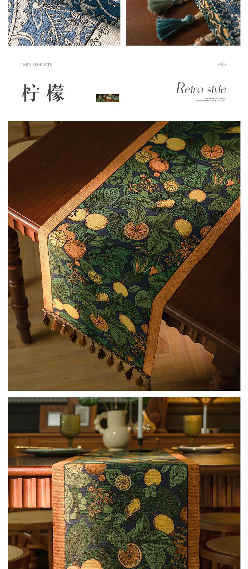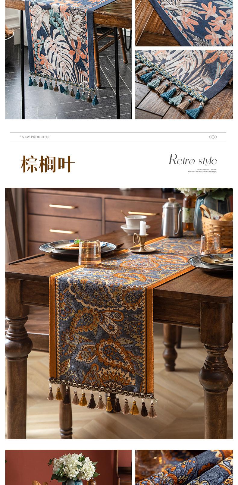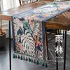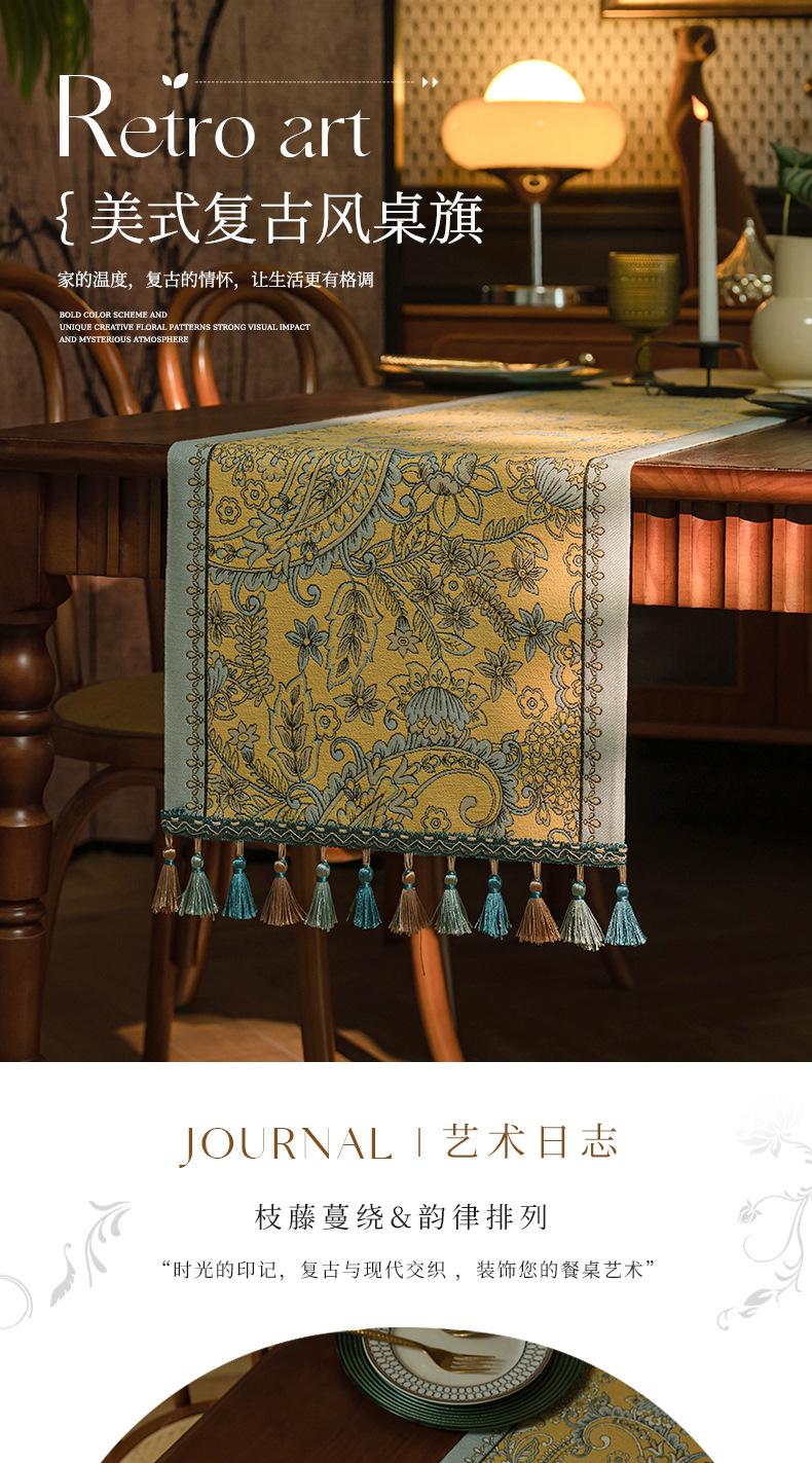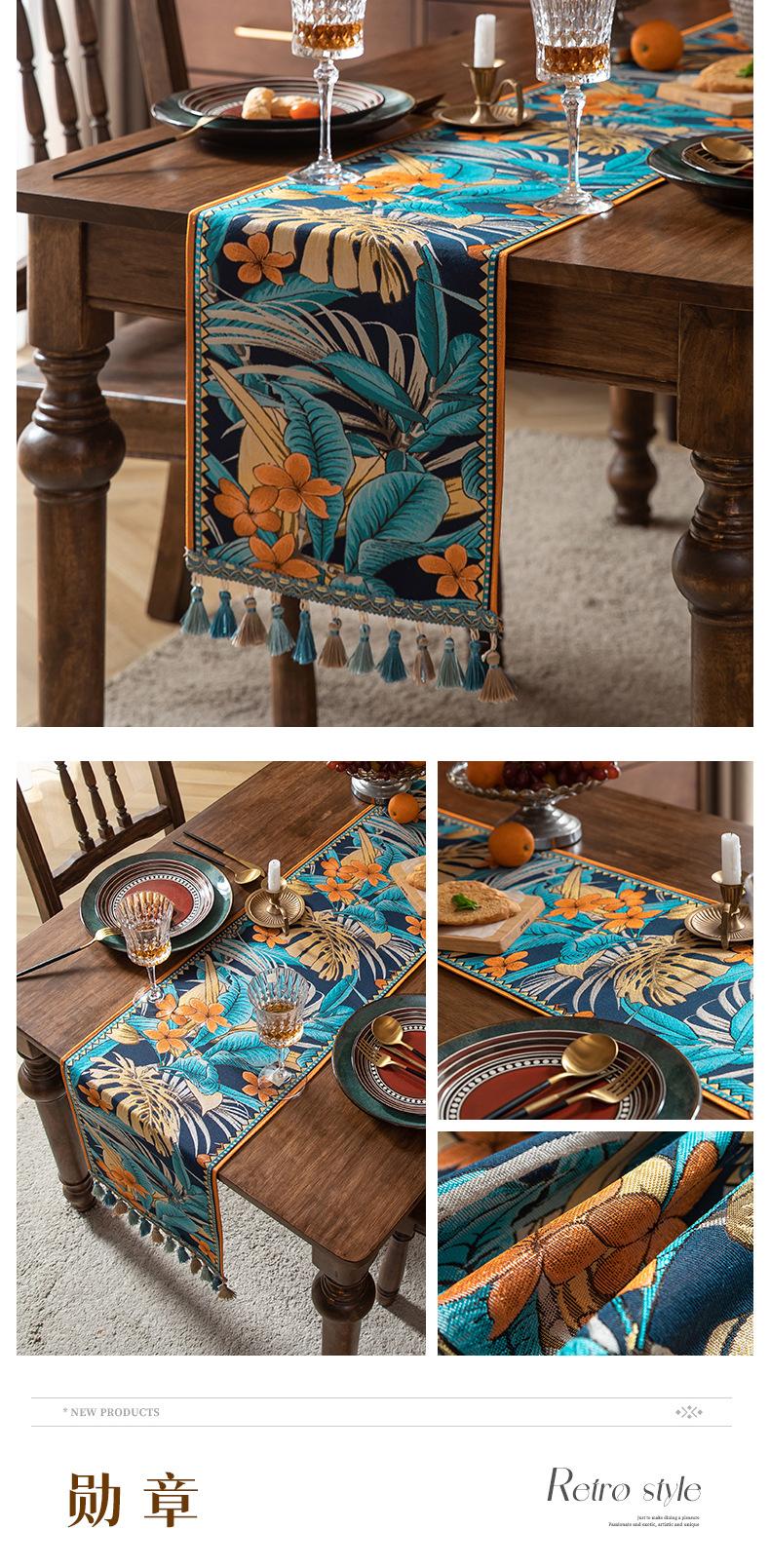 Camino de Mesa Retro Estilo Americano con Borlas, Jacquard, Sensación de Alta Gama, Mantel Largo de Tela para Mesa de Té para Uso Doméstico, Tela Gruesa para Mesa de Té de Aparador