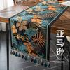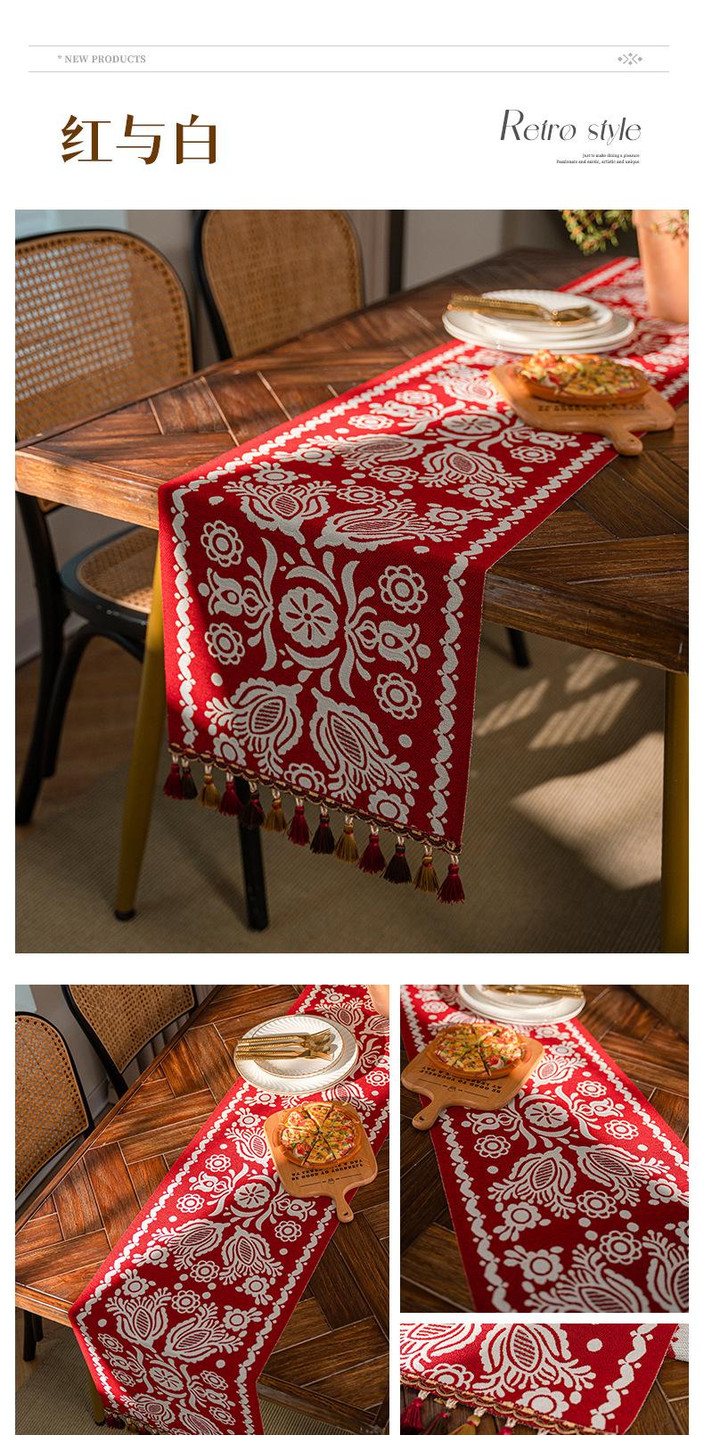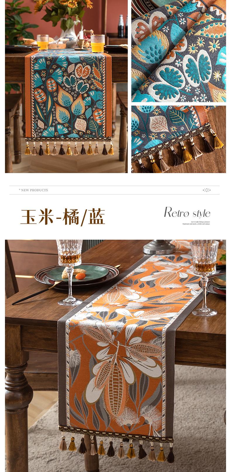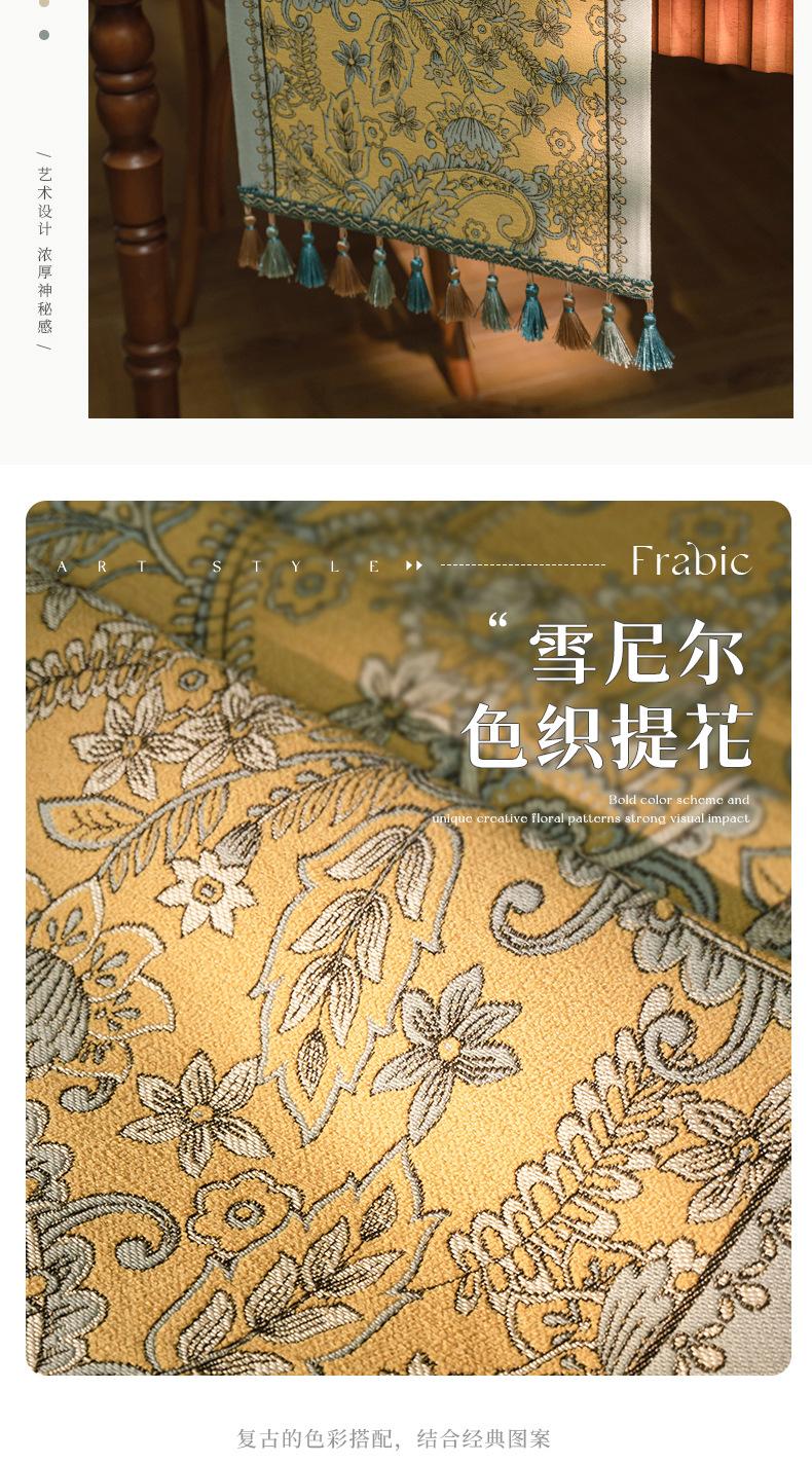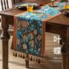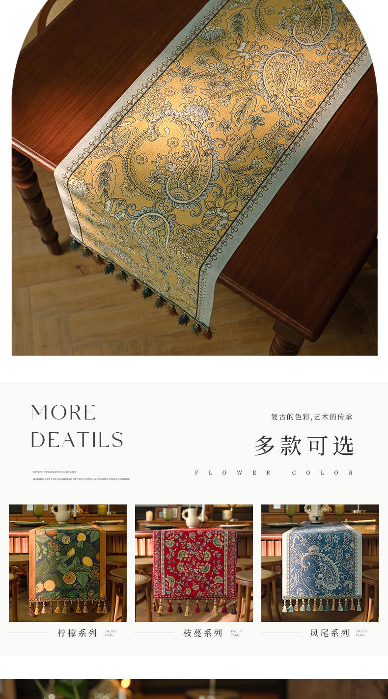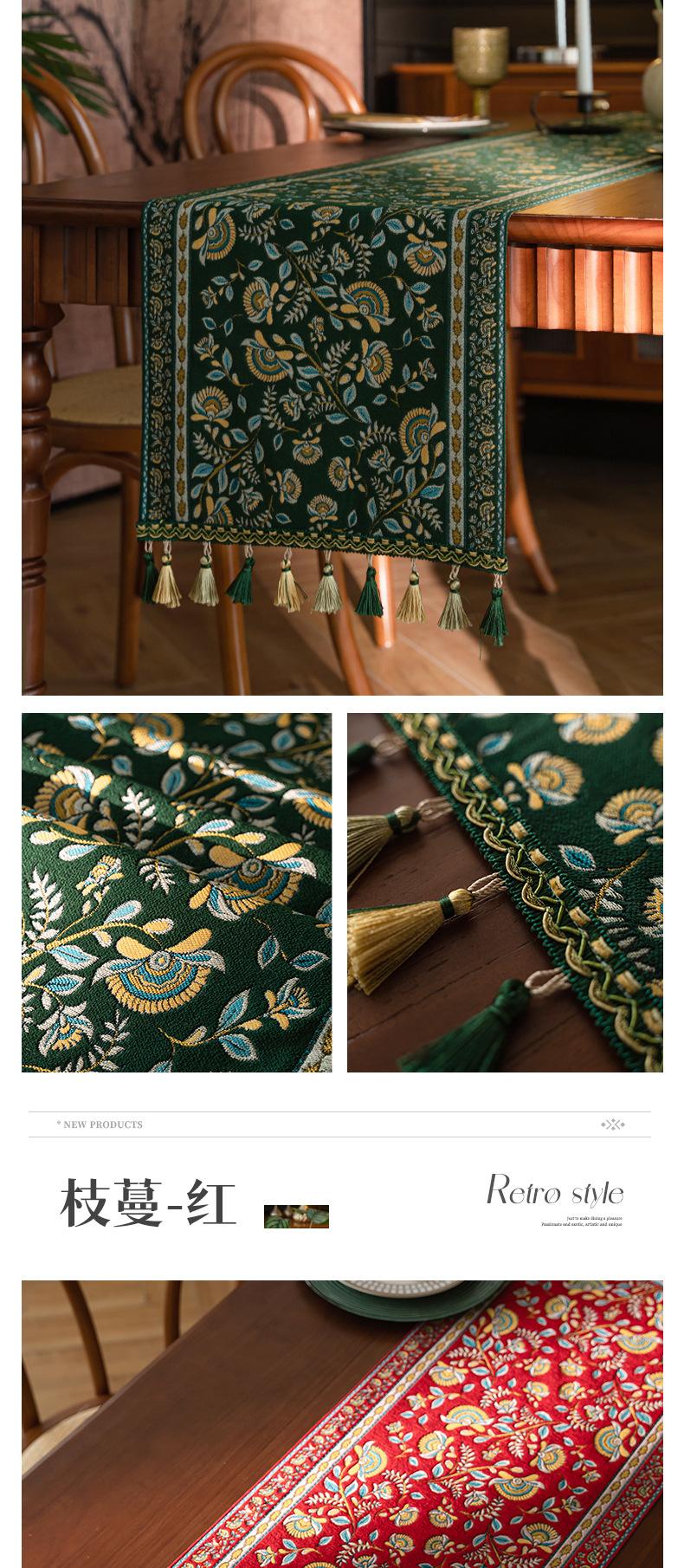 Camino de Mesa Retro Estilo Americano con Borlas, Jacquard, Sensación de Alta Gama, Mantel Largo de Tela para Mesa de Té para Uso Doméstico, Tela Gruesa para Mesa de Té de Aparador