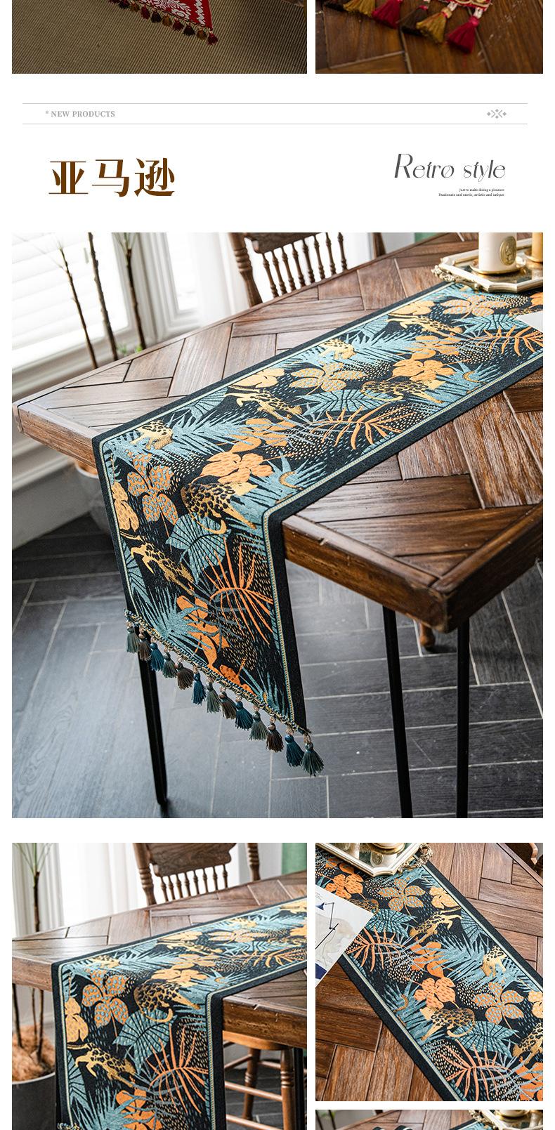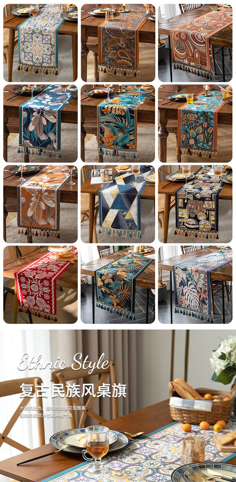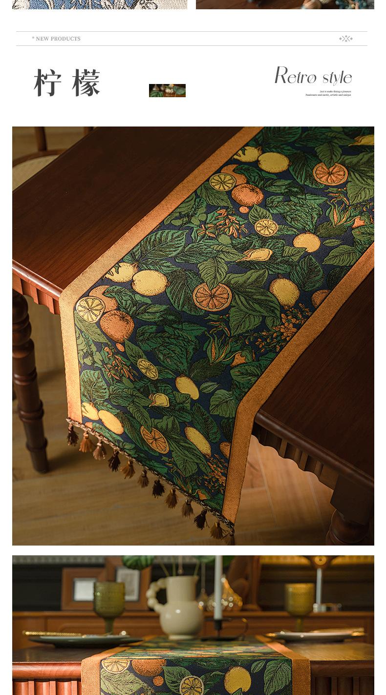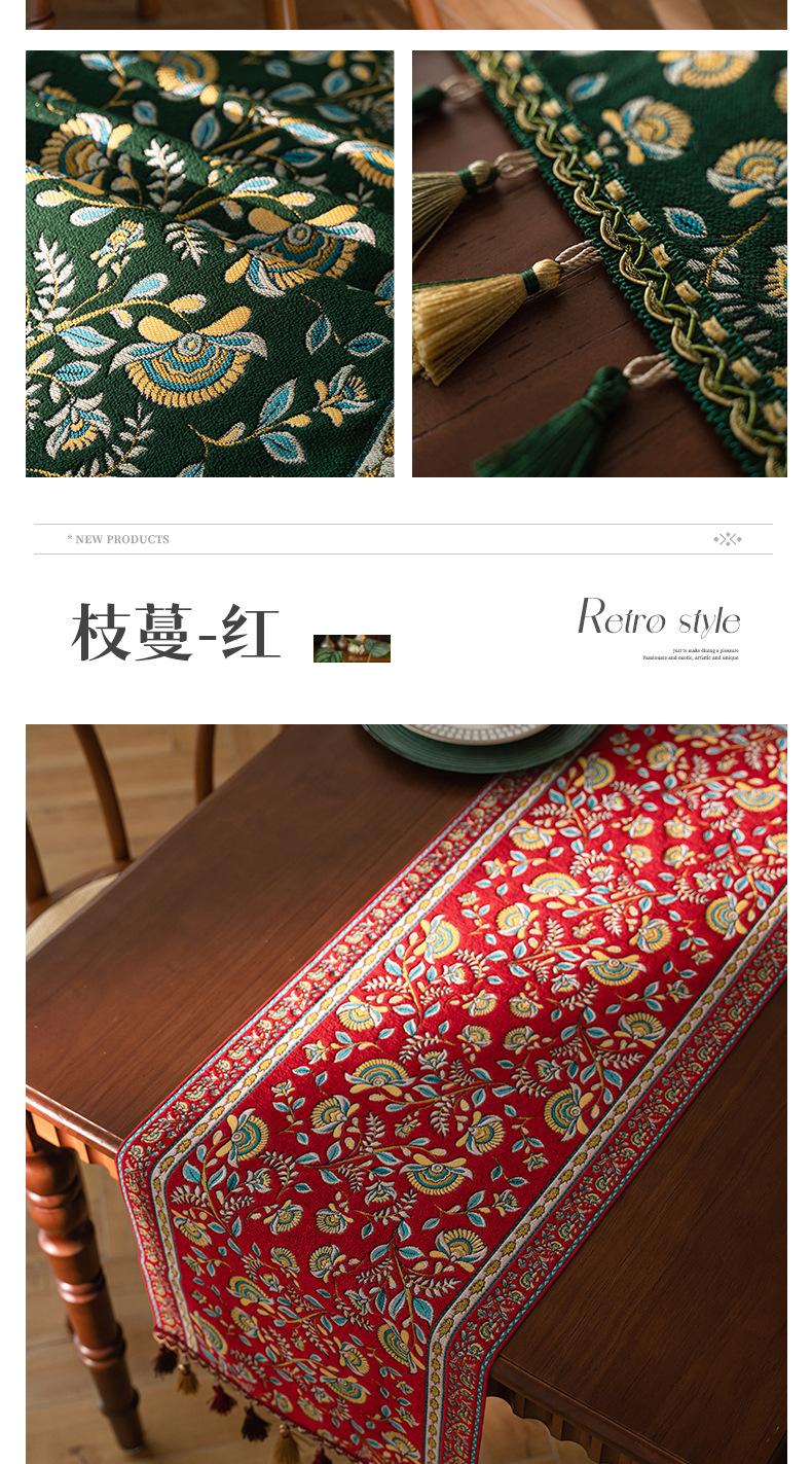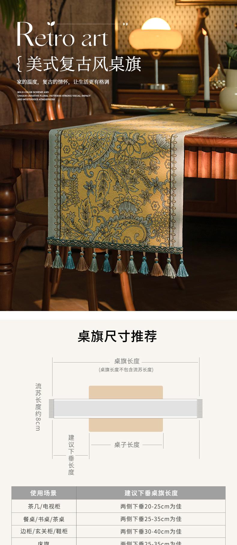 Camino de Mesa Retro Estilo Americano con Borlas, Jacquard, Sensación de Alta Gama, Mantel Largo de Tela para Mesa de Té para Uso Doméstico, Tela Gruesa para Mesa de Té de Aparador