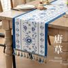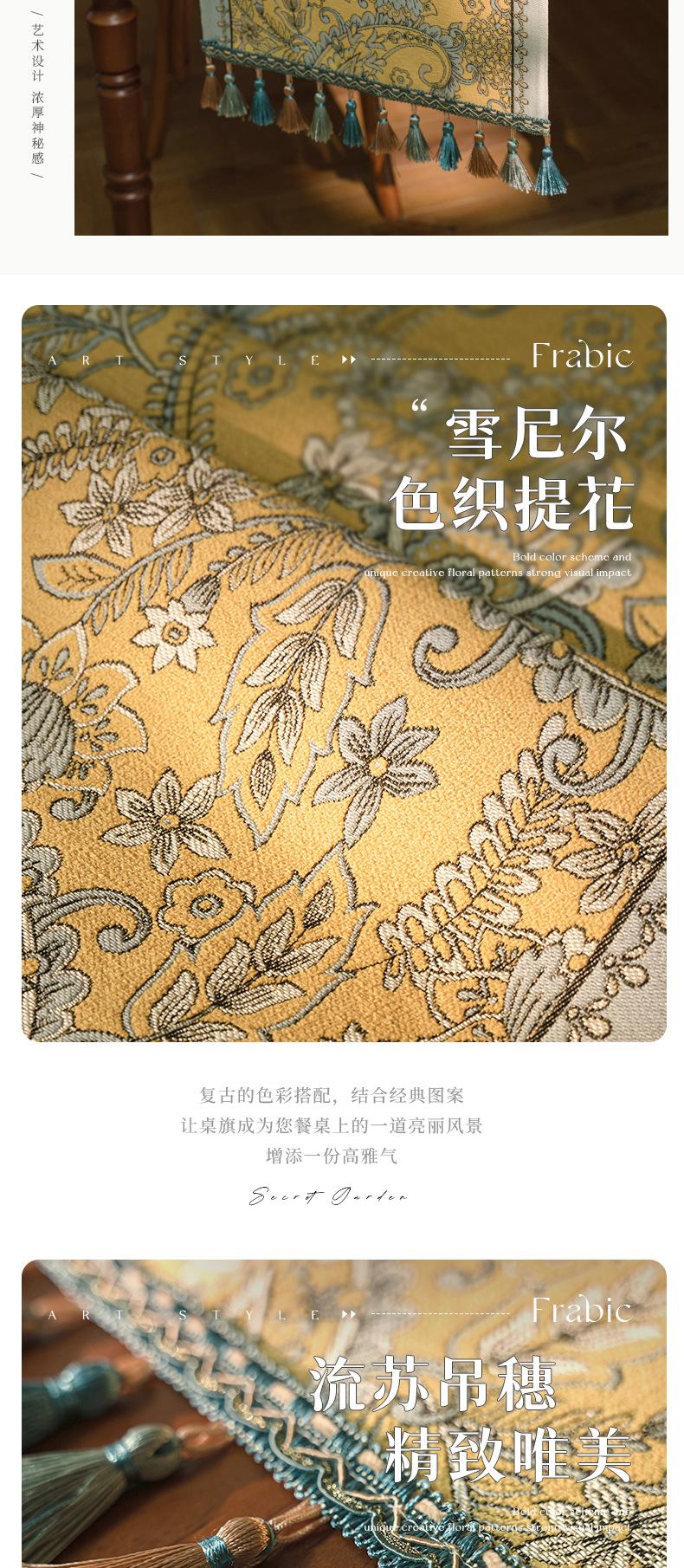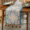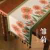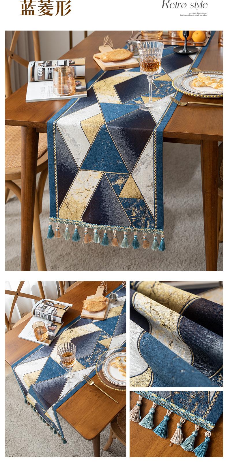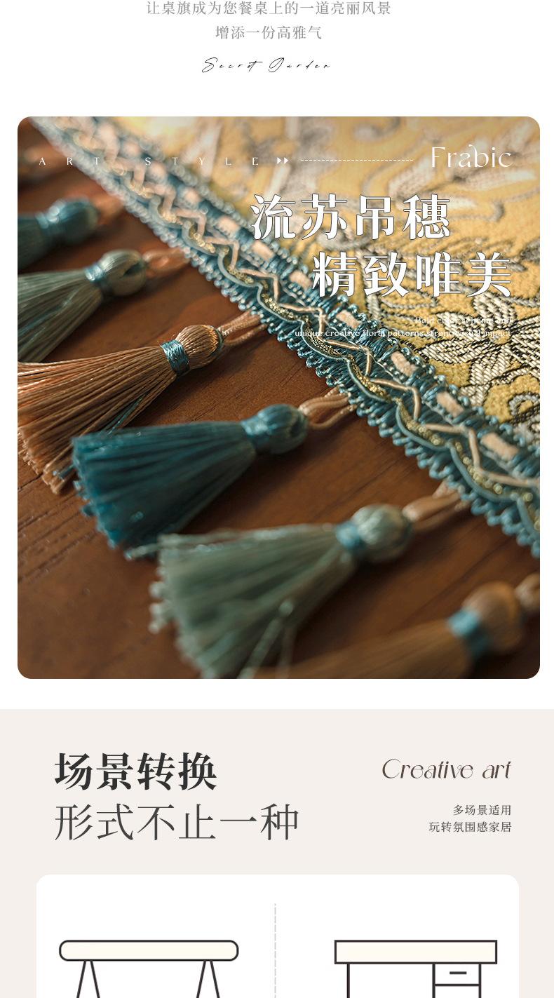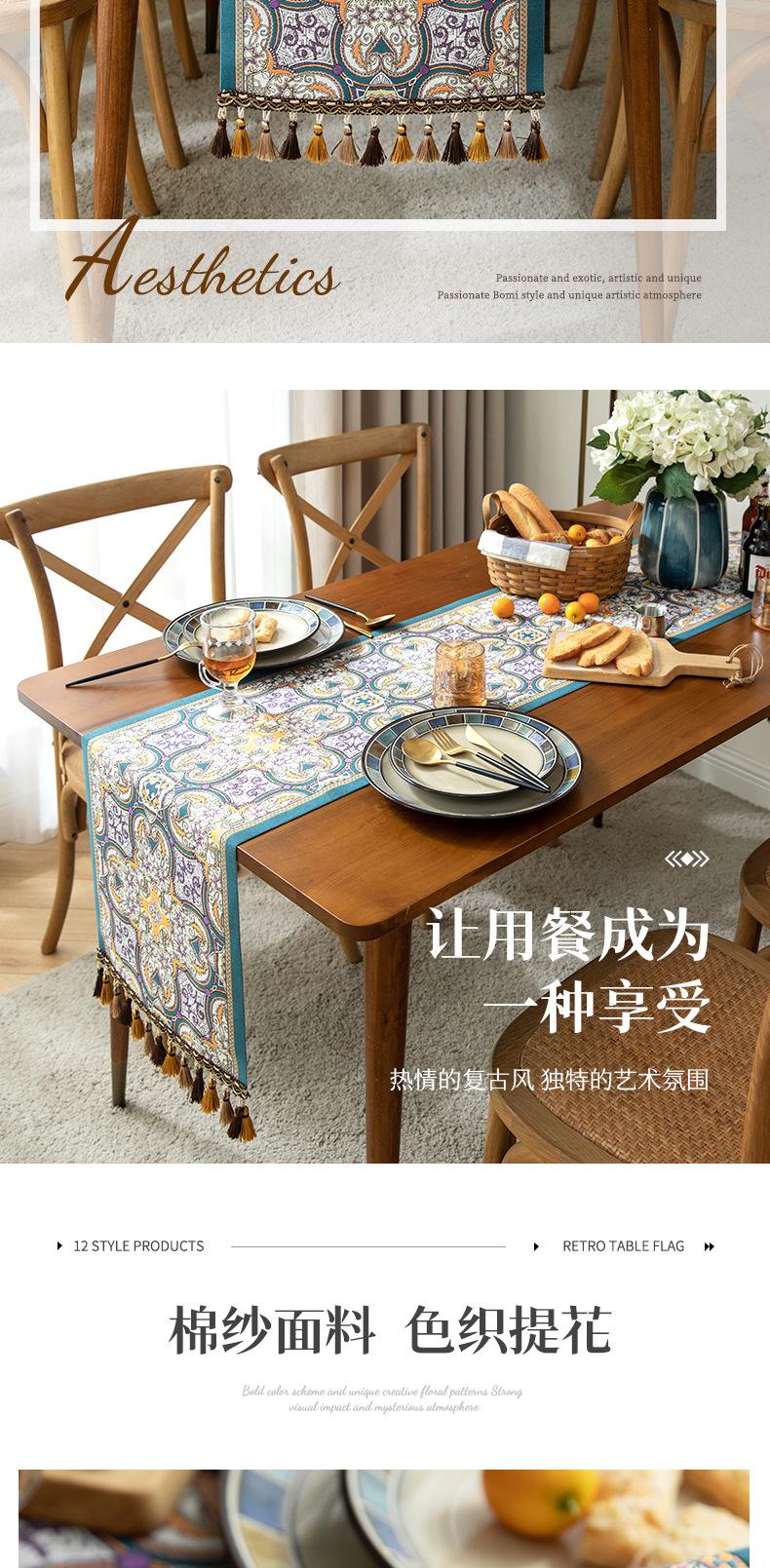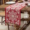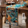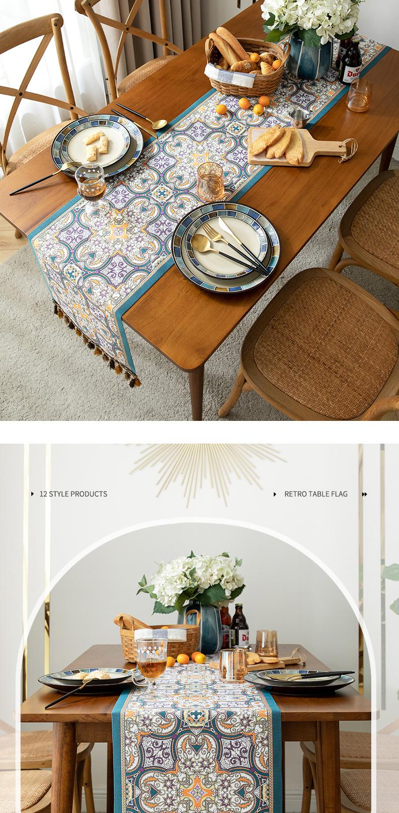 Camino de Mesa Retro Estilo Americano con Borlas, Jacquard, Sensación de Alta Gama, Mantel Largo de Tela para Mesa de Té para Uso Doméstico, Tela Gruesa para Mesa de Té de Aparador