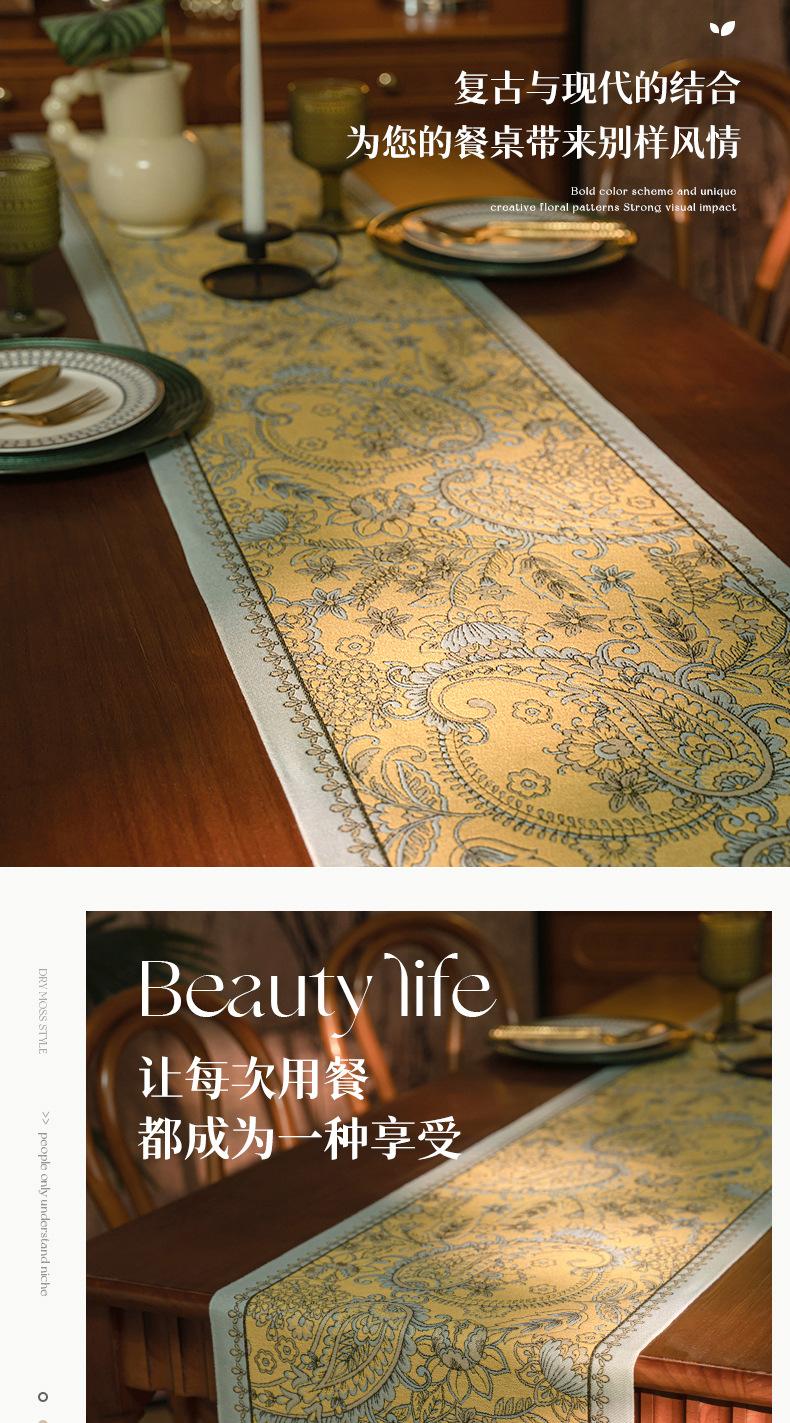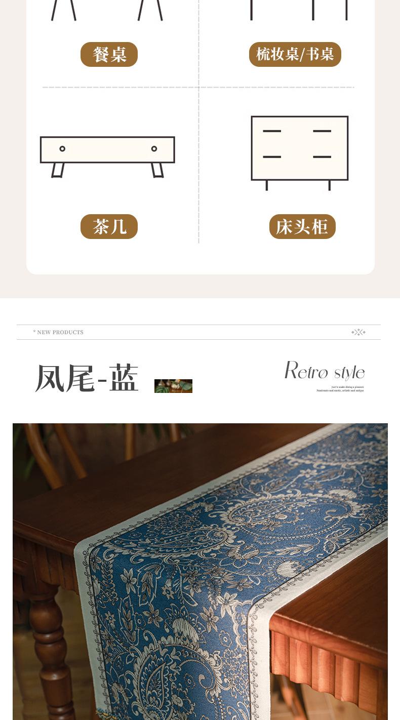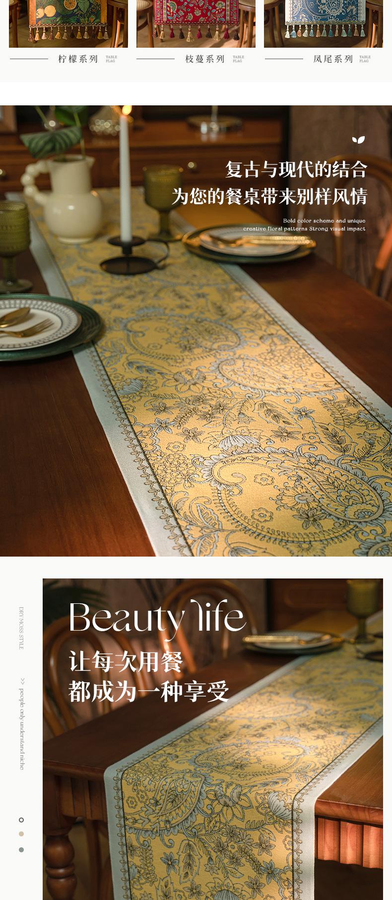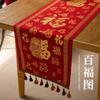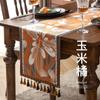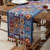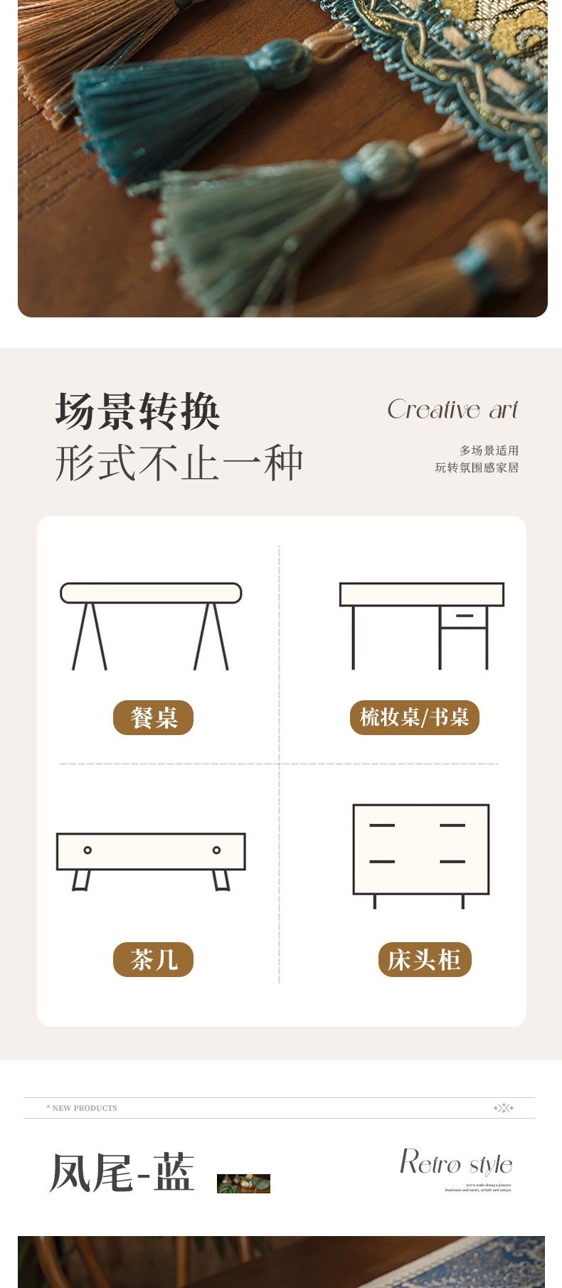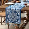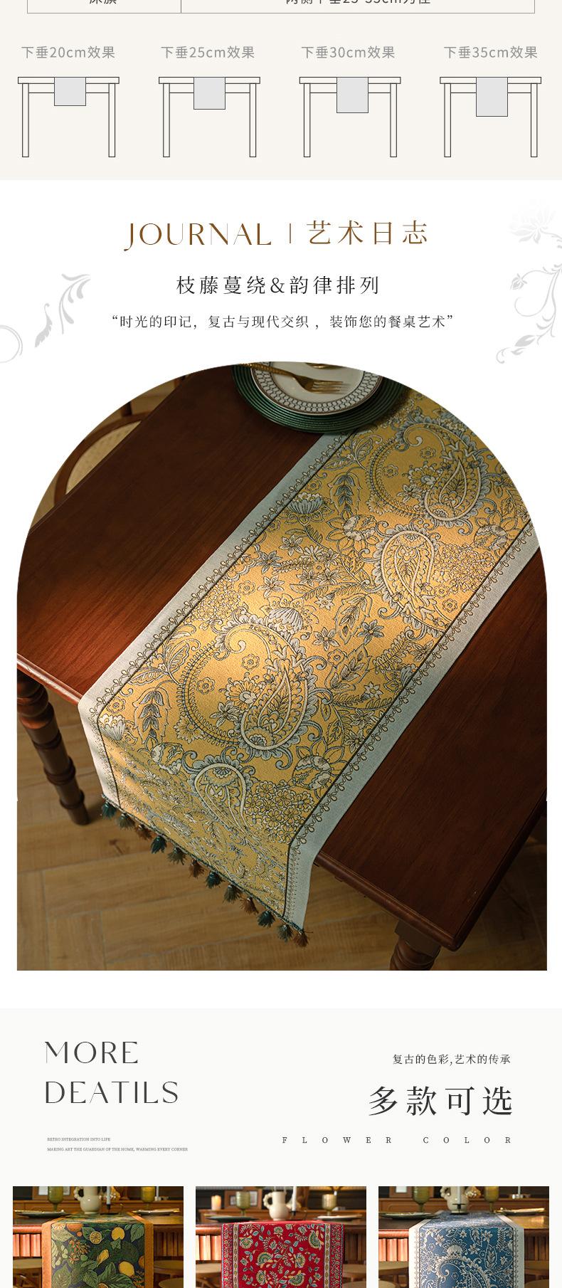 Camino de Mesa Retro Estilo Americano con Borlas, Jacquard, Sensación de Alta Gama, Mantel Largo de Tela para Mesa de Té para Uso Doméstico, Tela Gruesa para Mesa de Té de Aparador