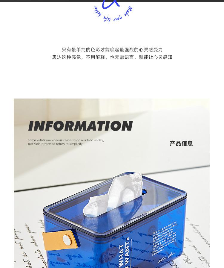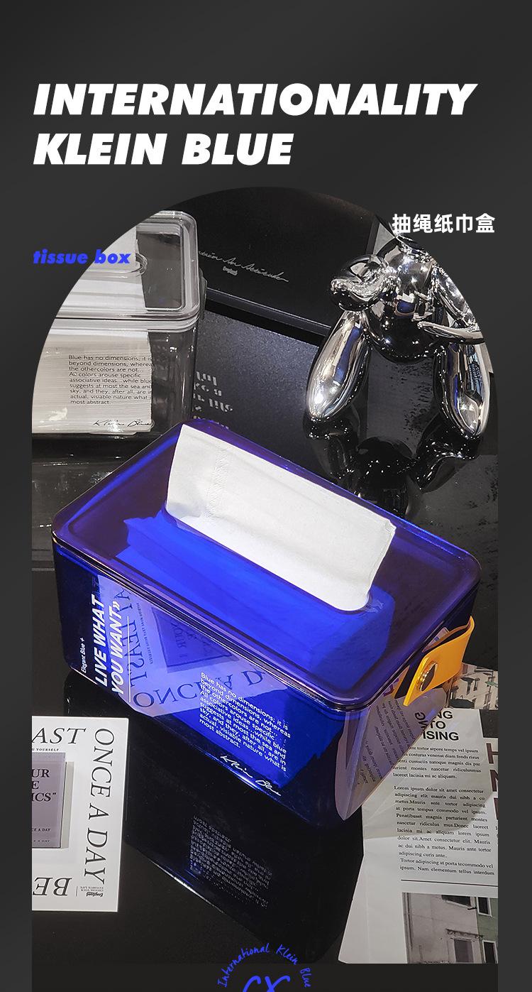 Nueva caja de pañuelos portátil azul Klein creativa de lujo ligero de alta gama sala de estar mesa de comedor almacenamiento para el hogar caja de pañuelos