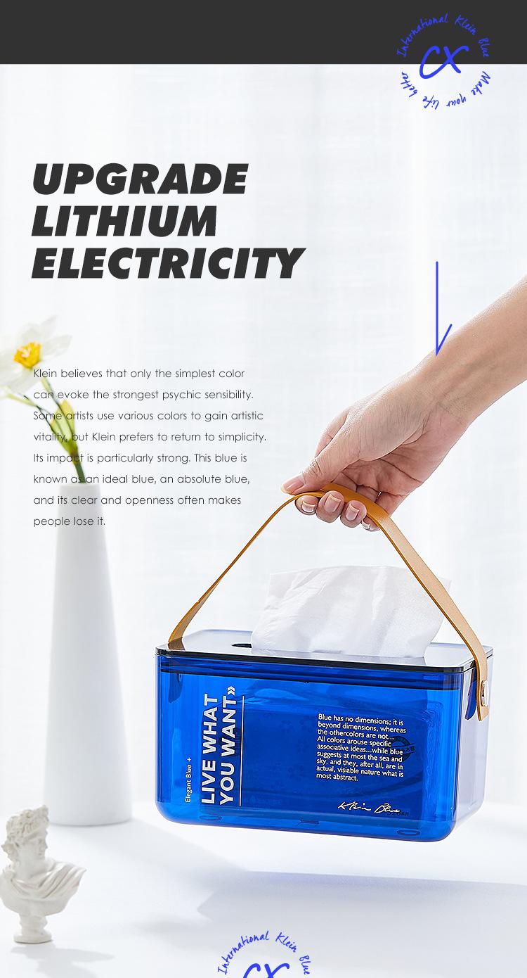 Nueva Caja de Pañuelos Portátil Azul Klein Creativa de Lujo Ligero de Alta Gama para Sala de Estar, Mesa de Comedor, Almacenamiento para el Hogar